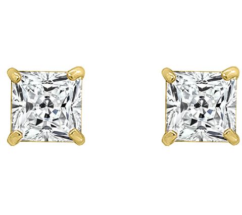 Diamonique 1.00 cttw Princess-Cut Stud Earrings, 14K Gold