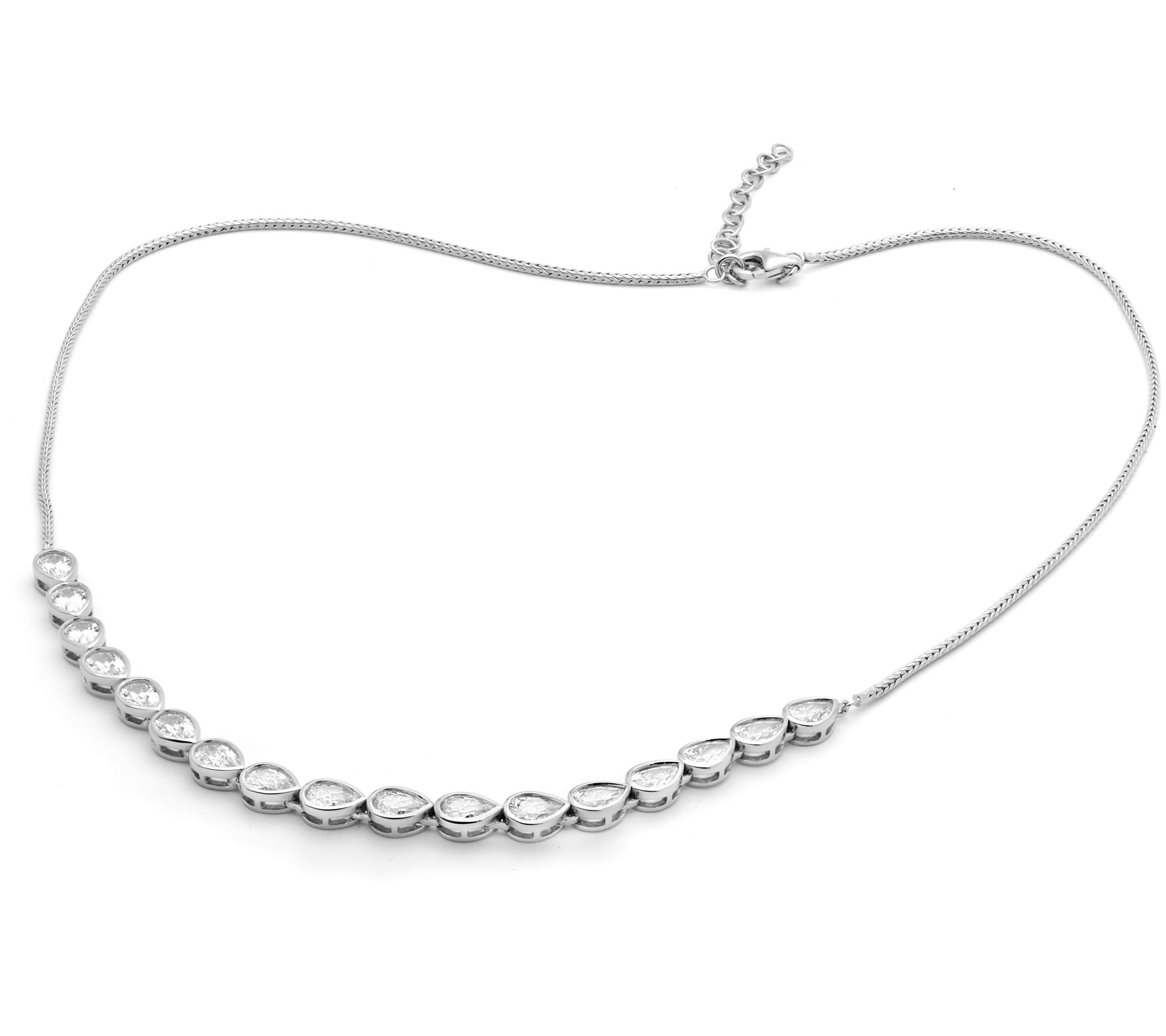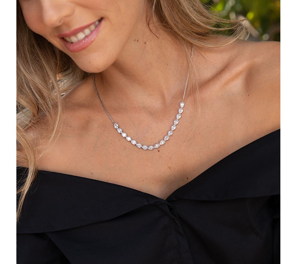 • Necklace with a line of pear-cut, bezel-set Diamonique simulated diamonds at front; polished finish