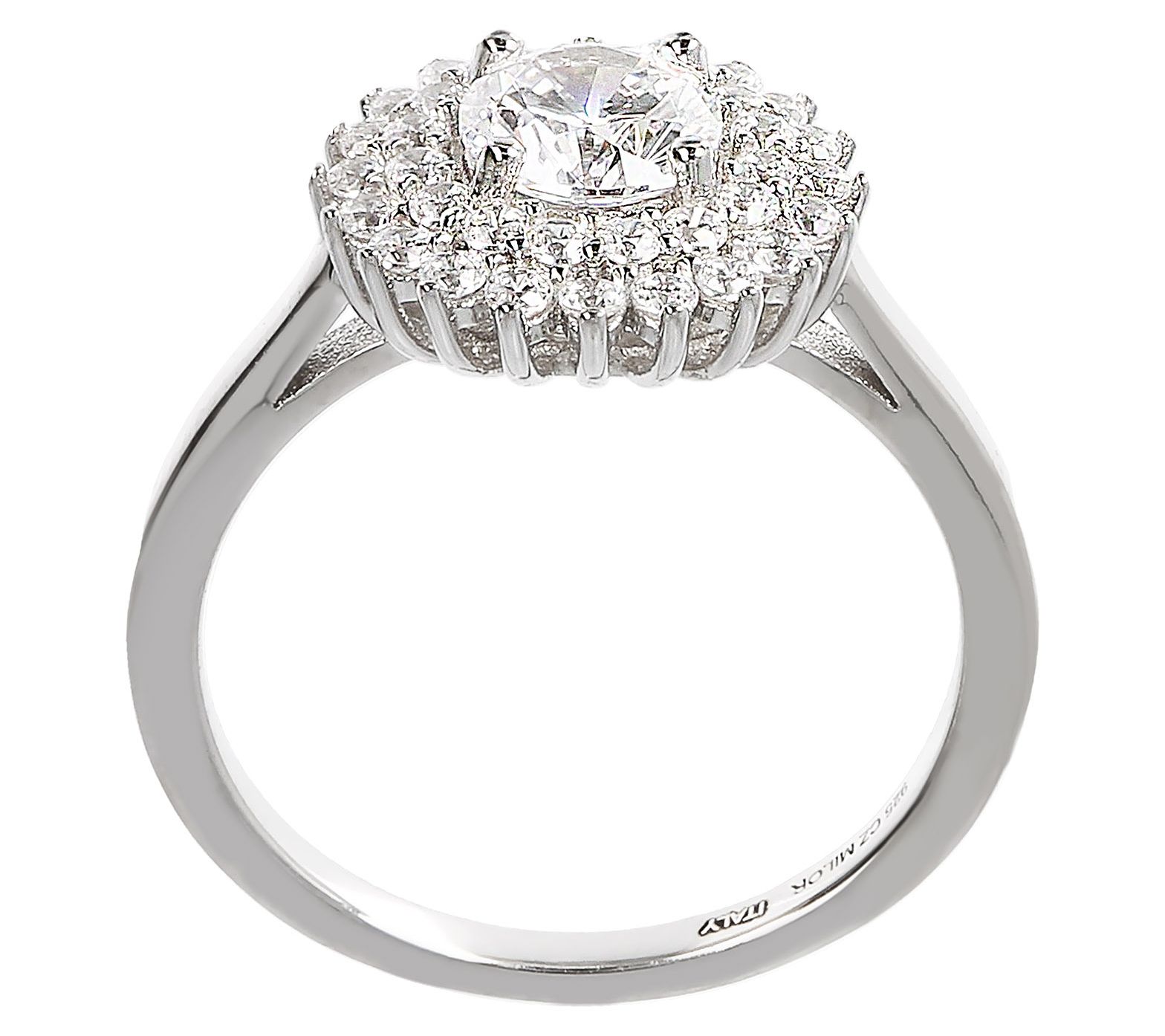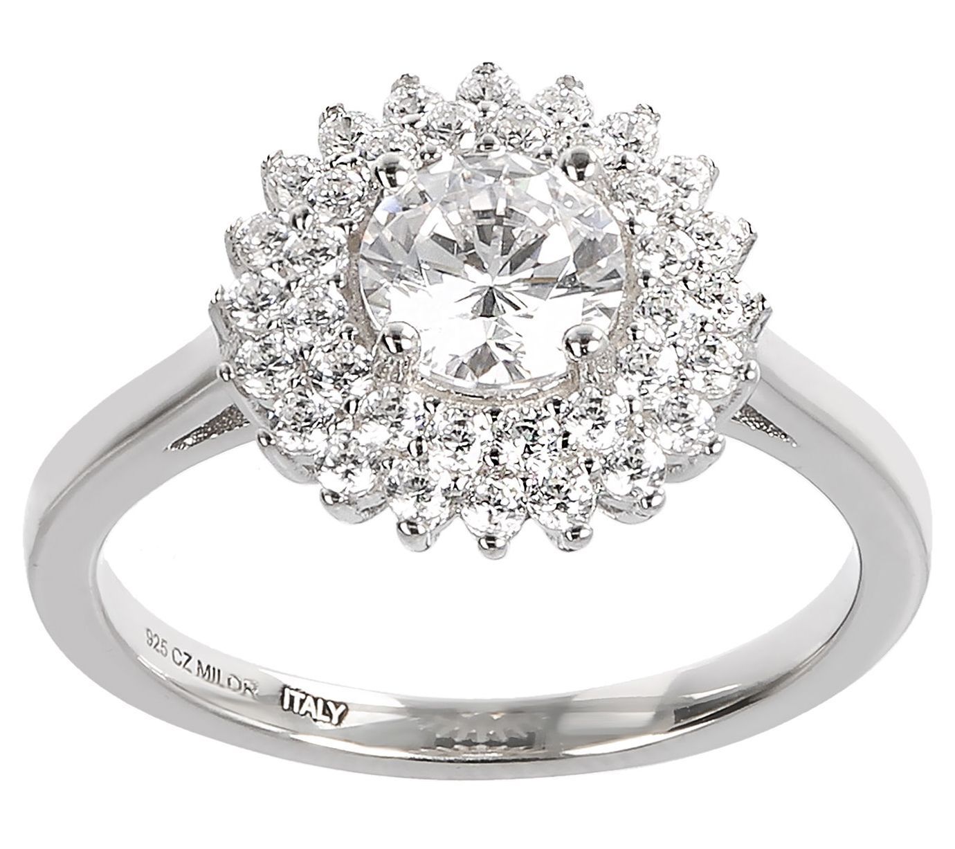 • Round, prong-set Diamonique simulated diamond surrounded by a double halo of round, prong-set Diamonique simulated diamonds