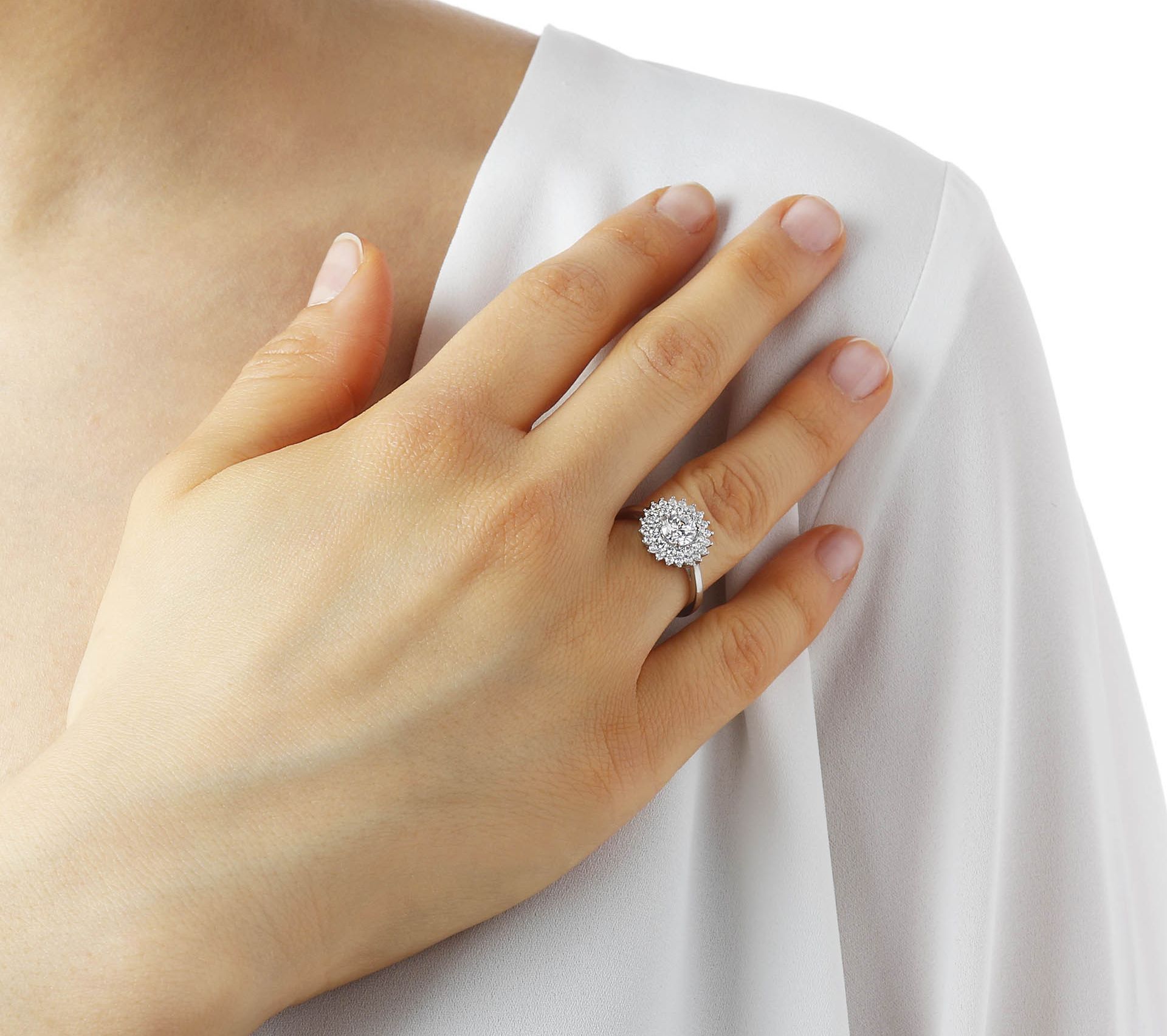 Twinkle, twinkle. Accessorize like the star you are in this bright-bursting double-halo ring.
