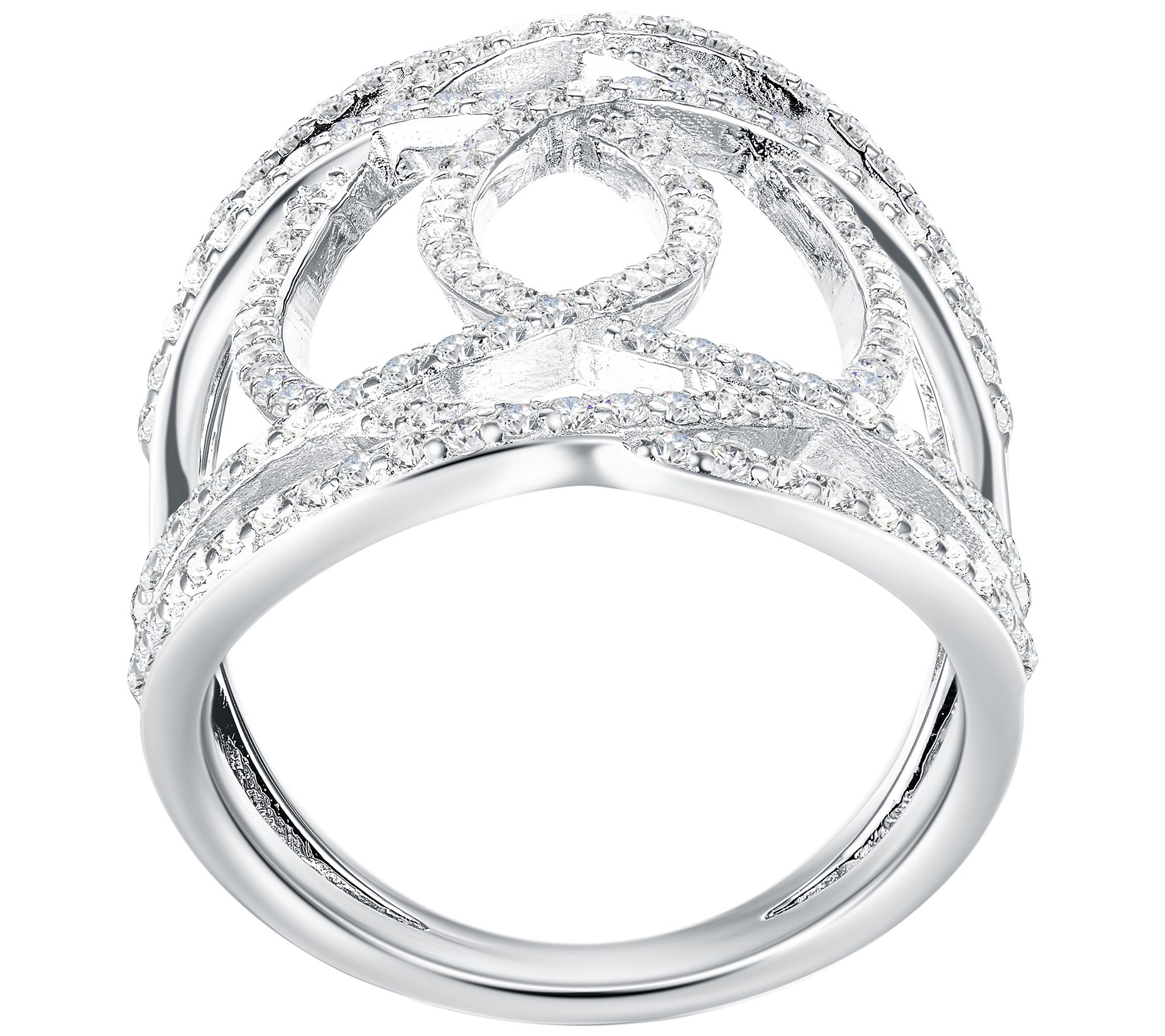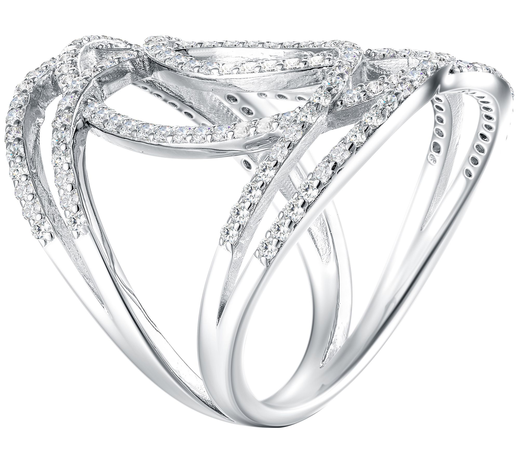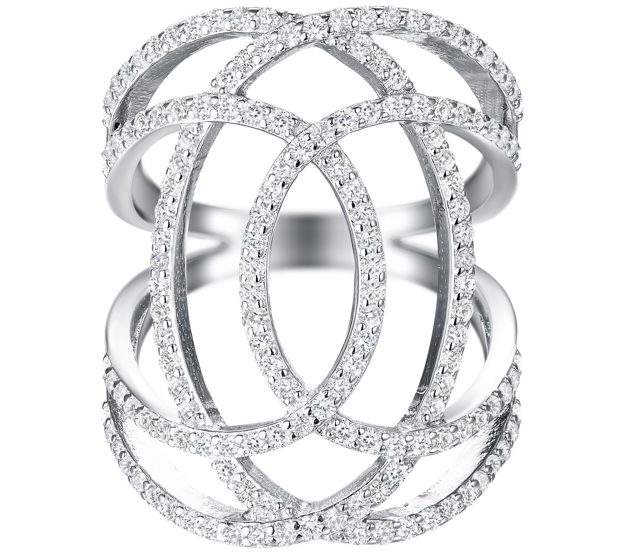 • Bypass openwork design; pave-set, round Diamonique simulated diamonds