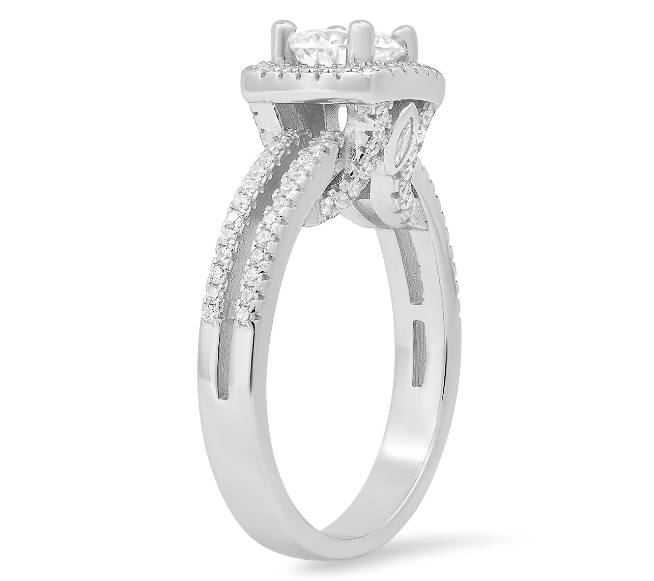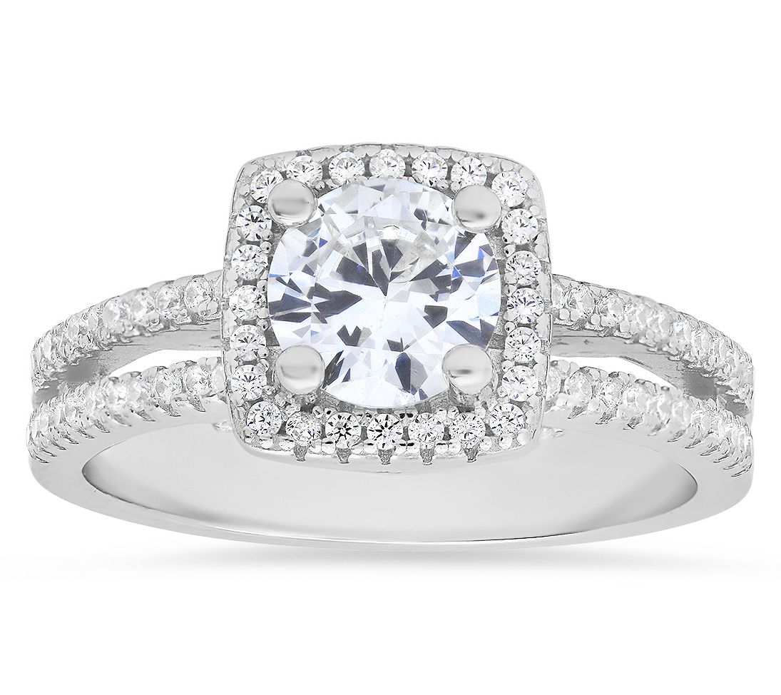 Looking to add a touch of elegance to your everyday look? This sterling silver ring, adorned with a cubic zirconia Diamonique simulated diamond, is just the piece for that. The celestial halo of smaller stones amplifies its dazzle, making it an exquisite choice for engagements, an anniversary gift, or turning heads at any event.