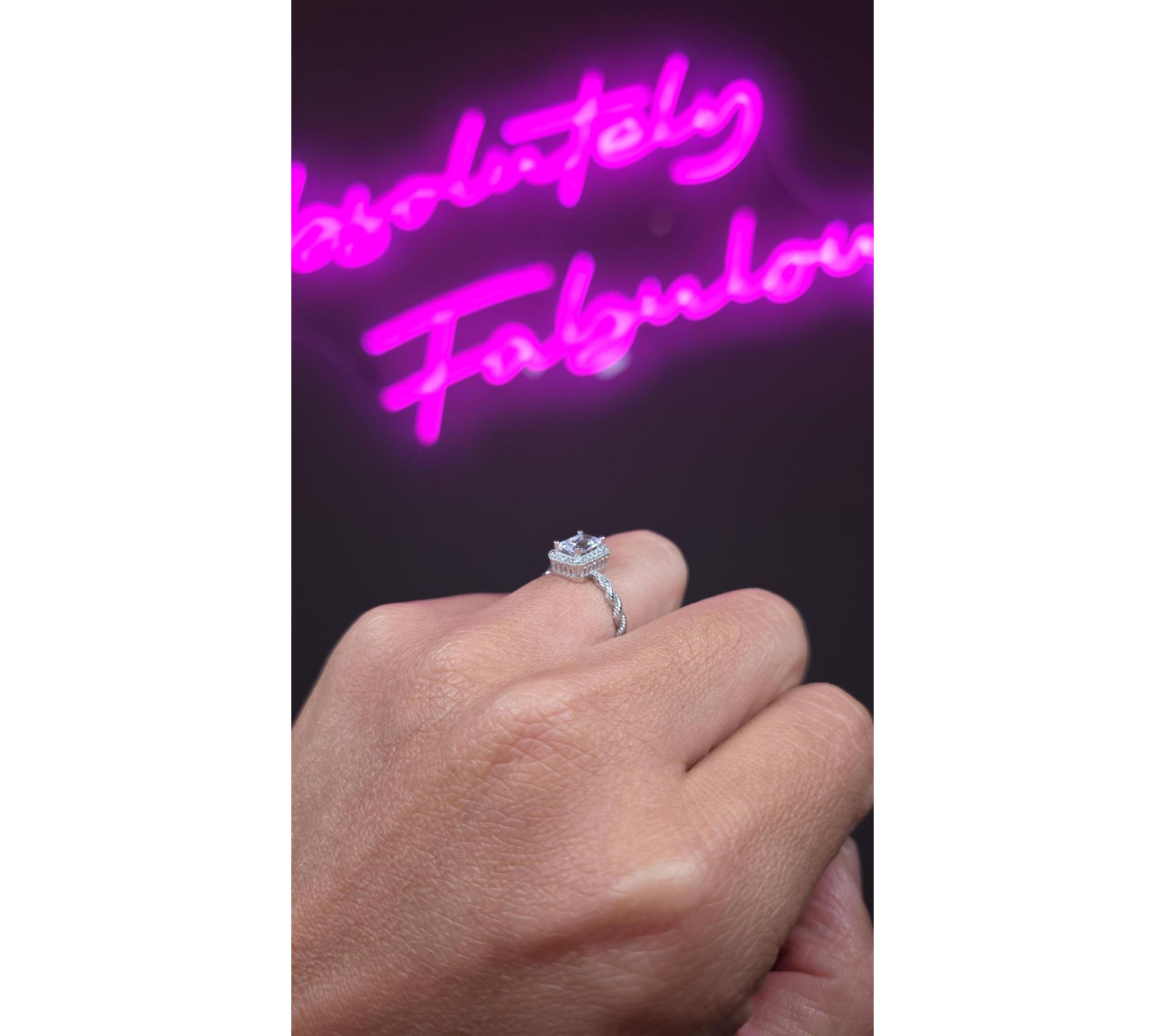 Whether you're celebrating a special occasion or elevating your everyday look, this solitaire ring shines with every gesture. The emerald-cut centerpiece set on a twisted band creates a stunning play of light as round cubic zirconia Diamonique simulated diamonds complete the halo for extra sparkle.