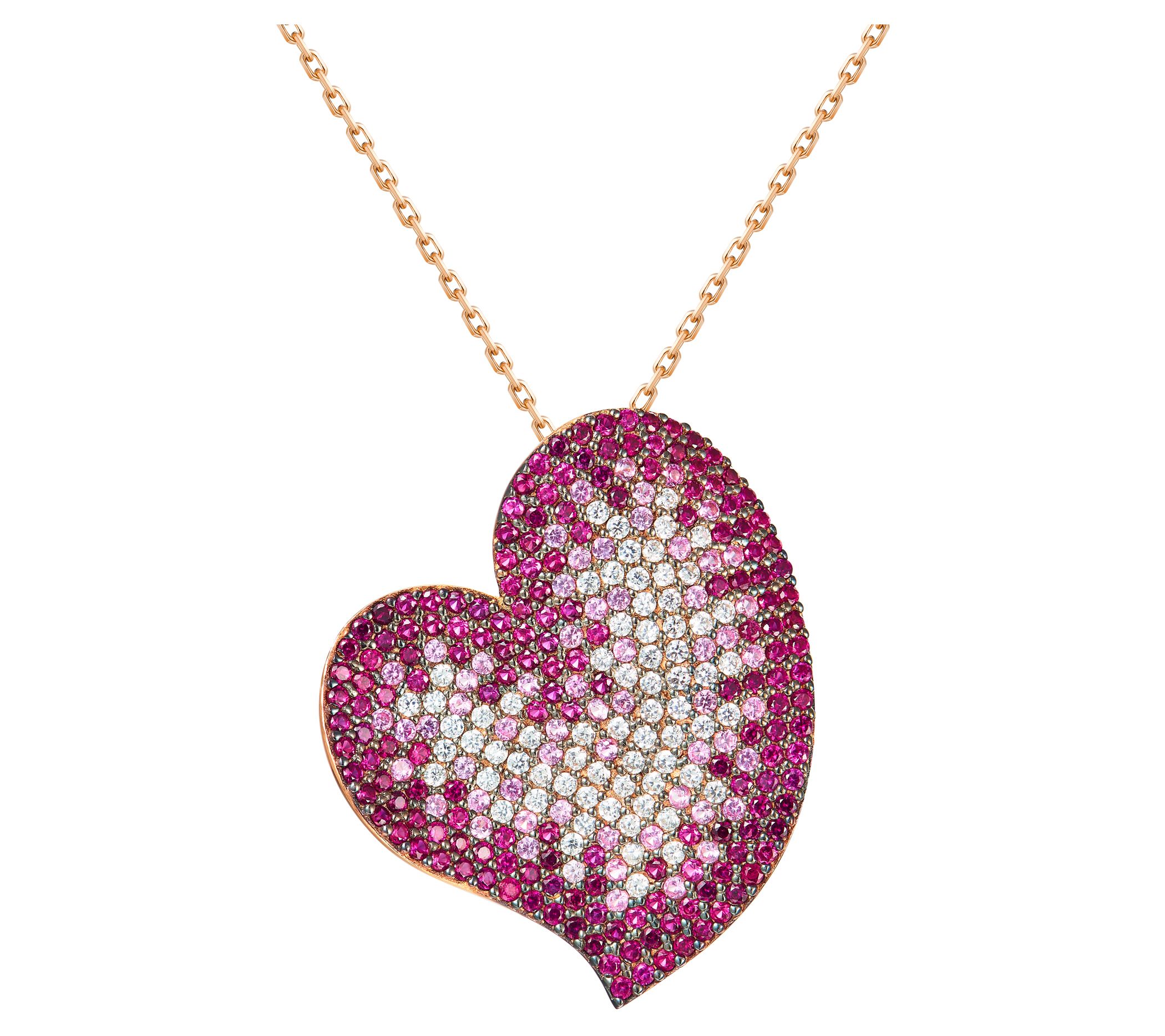 • Heart pendant with round-cut, pave-set simulated diamonds