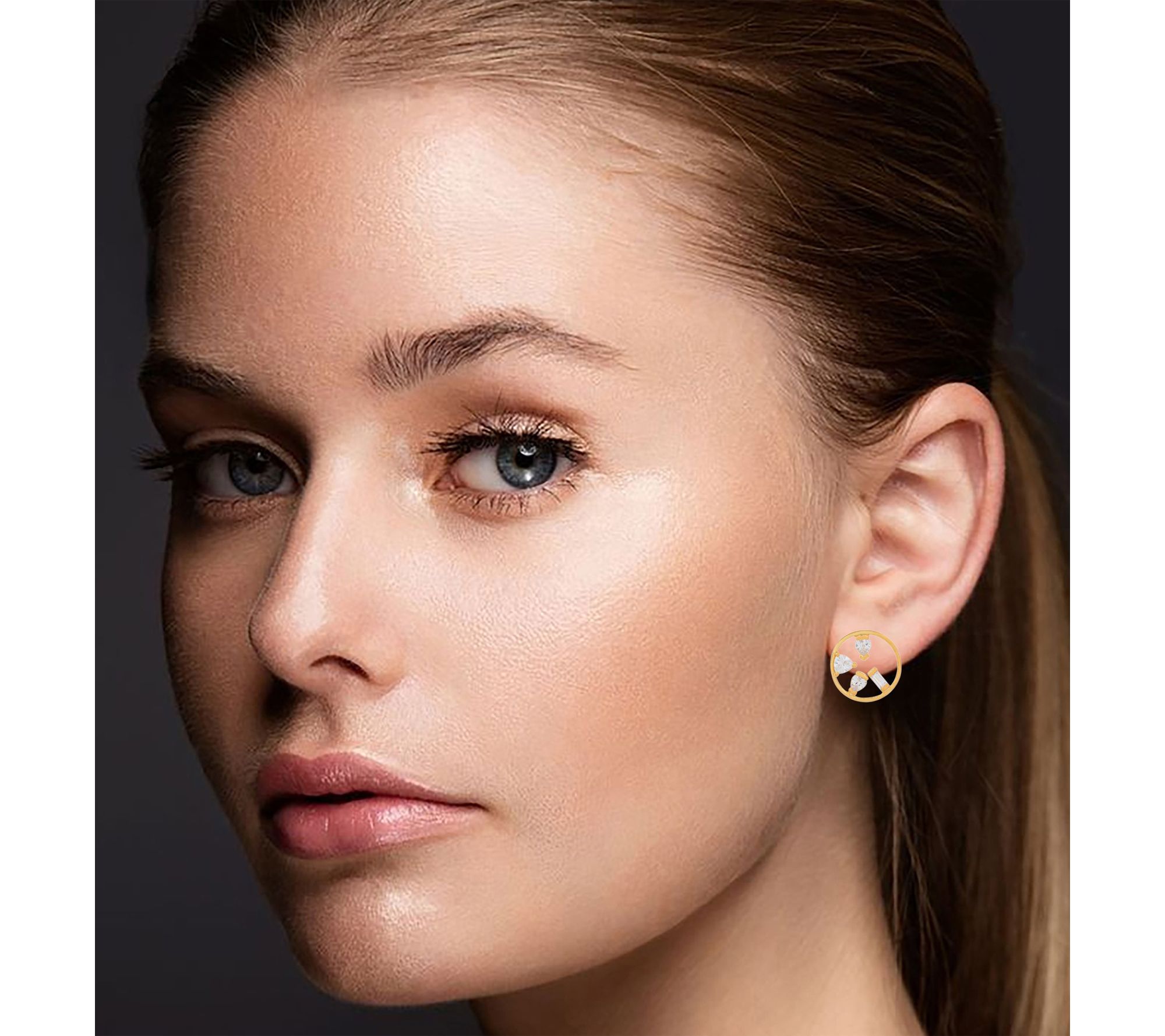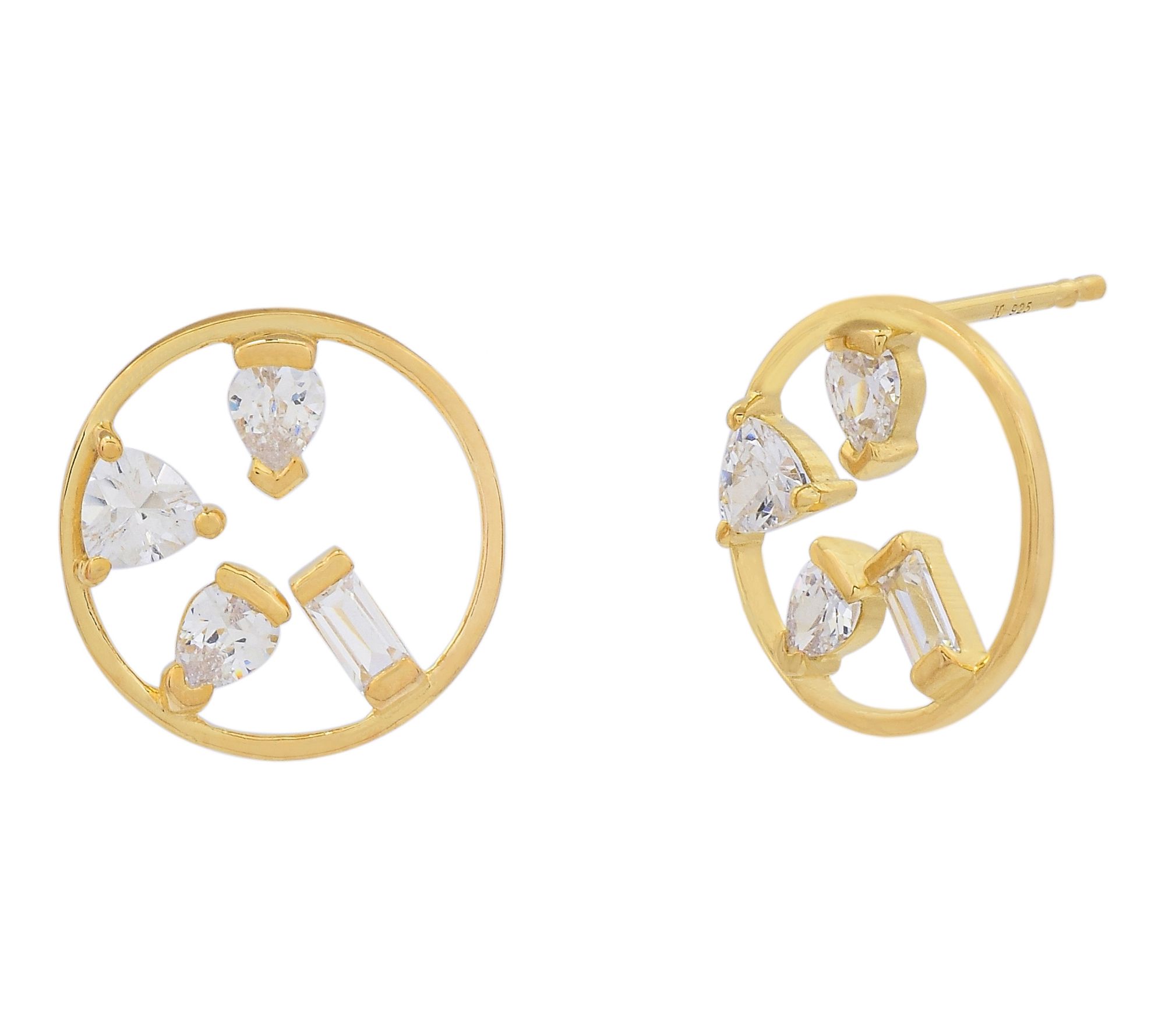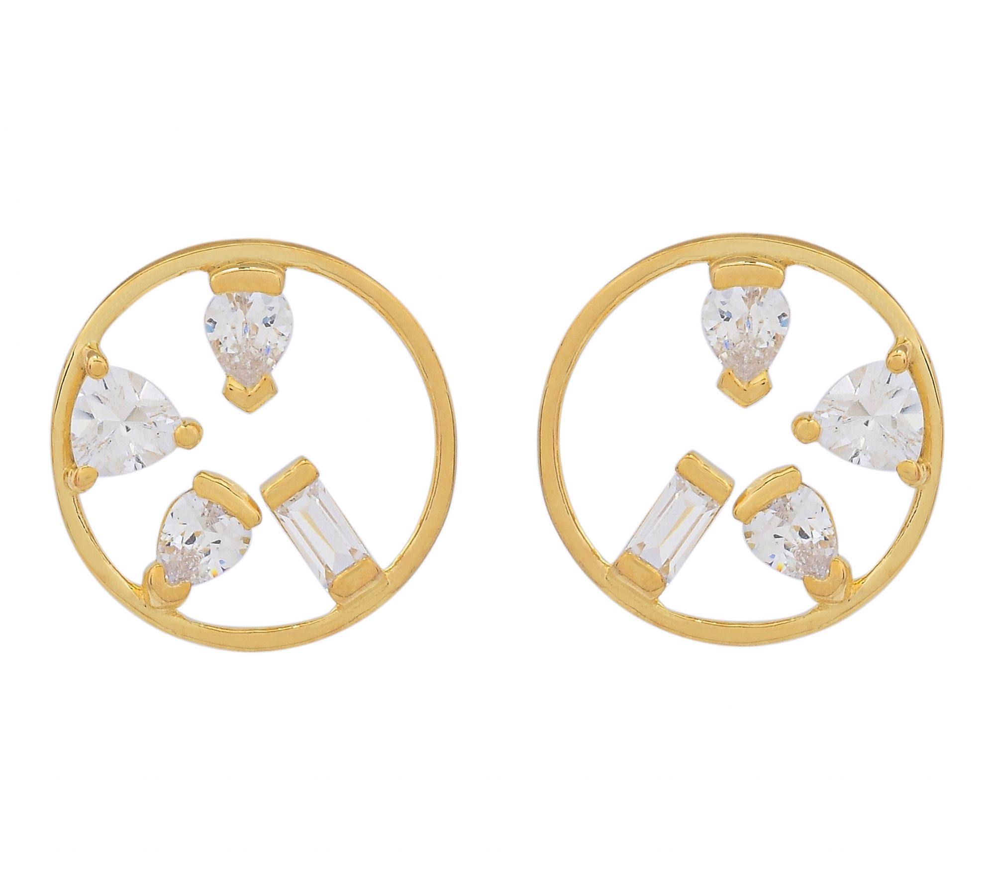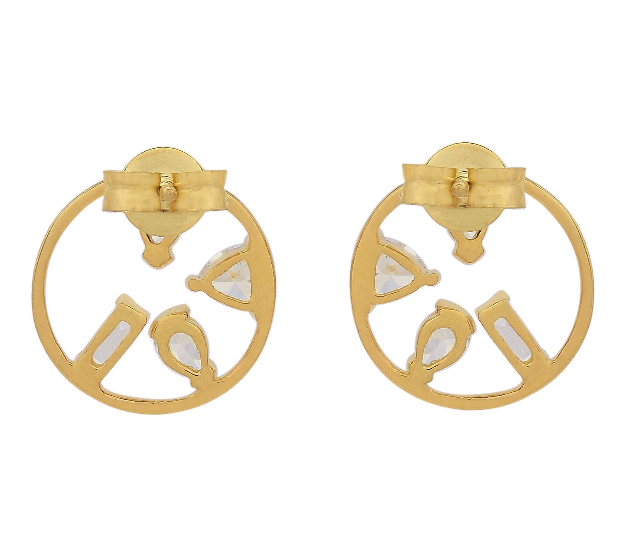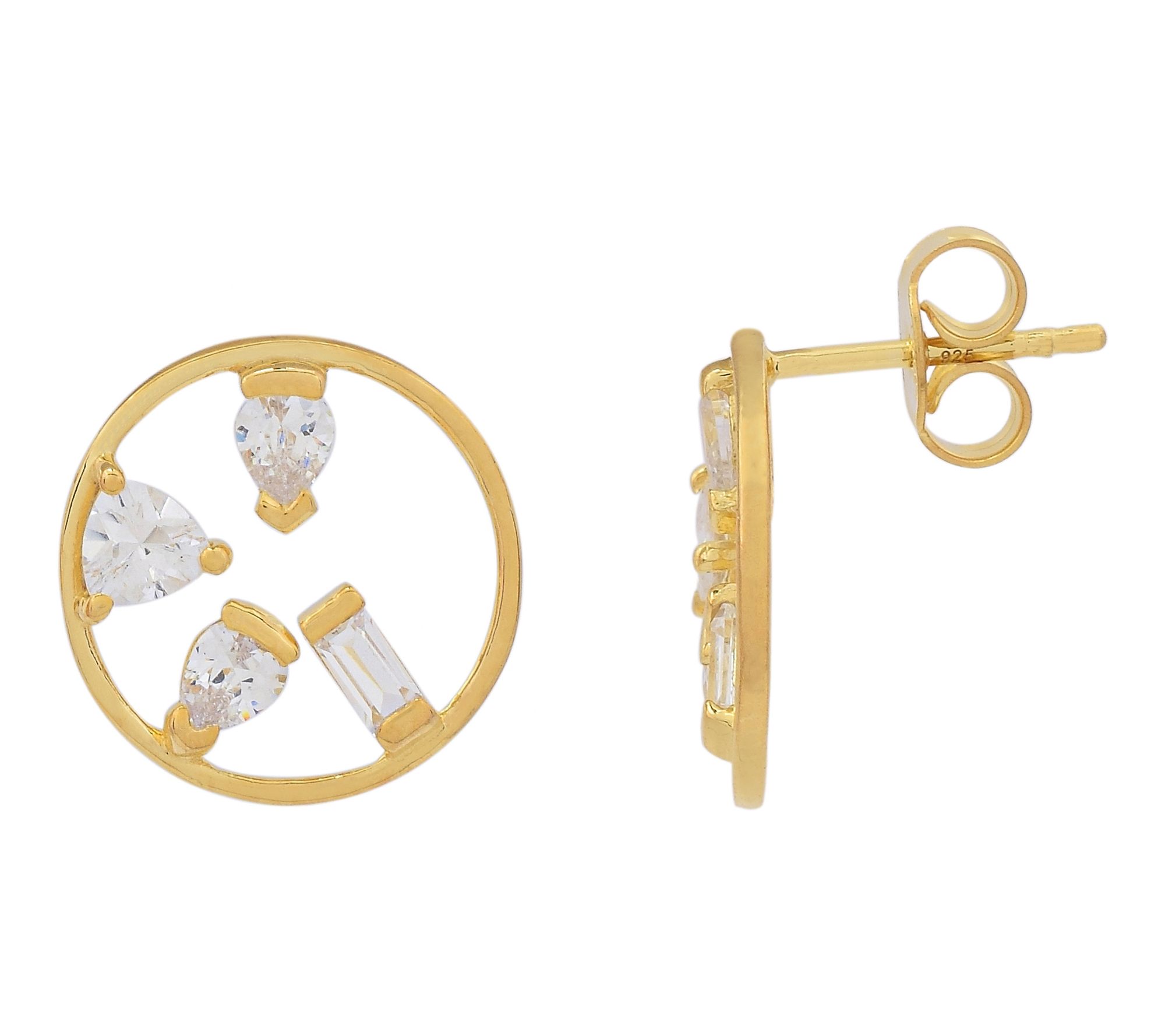 Catch the light from every angle with this stunning pair of stud earrings, showcasing multi-cut Diamonique simulated diamonds that sparkle in prong and half bezel settings. Their 14K yellow gold-plated sterling silver design brings standout shine to everyday looks or special evenings out -- just slip them on for instant radiance and confidence.