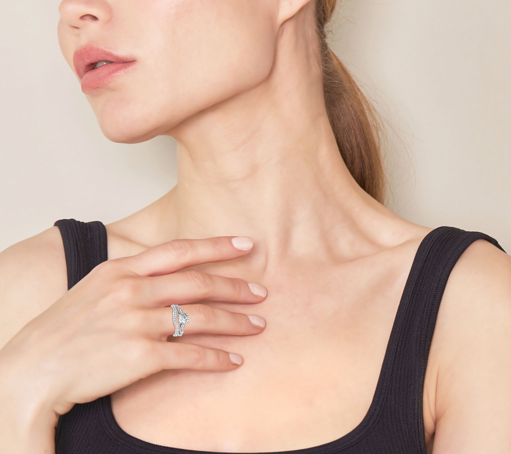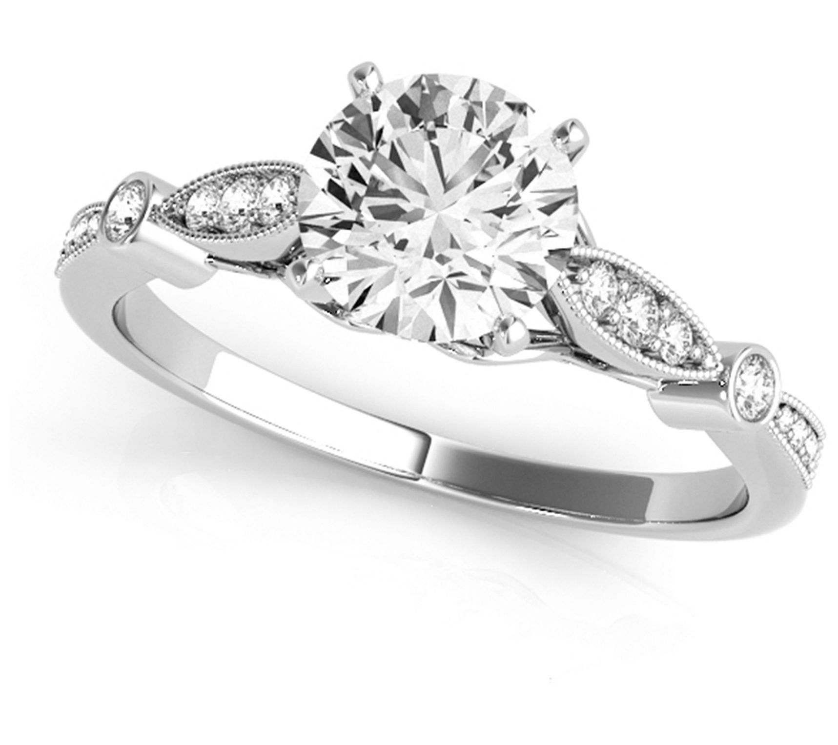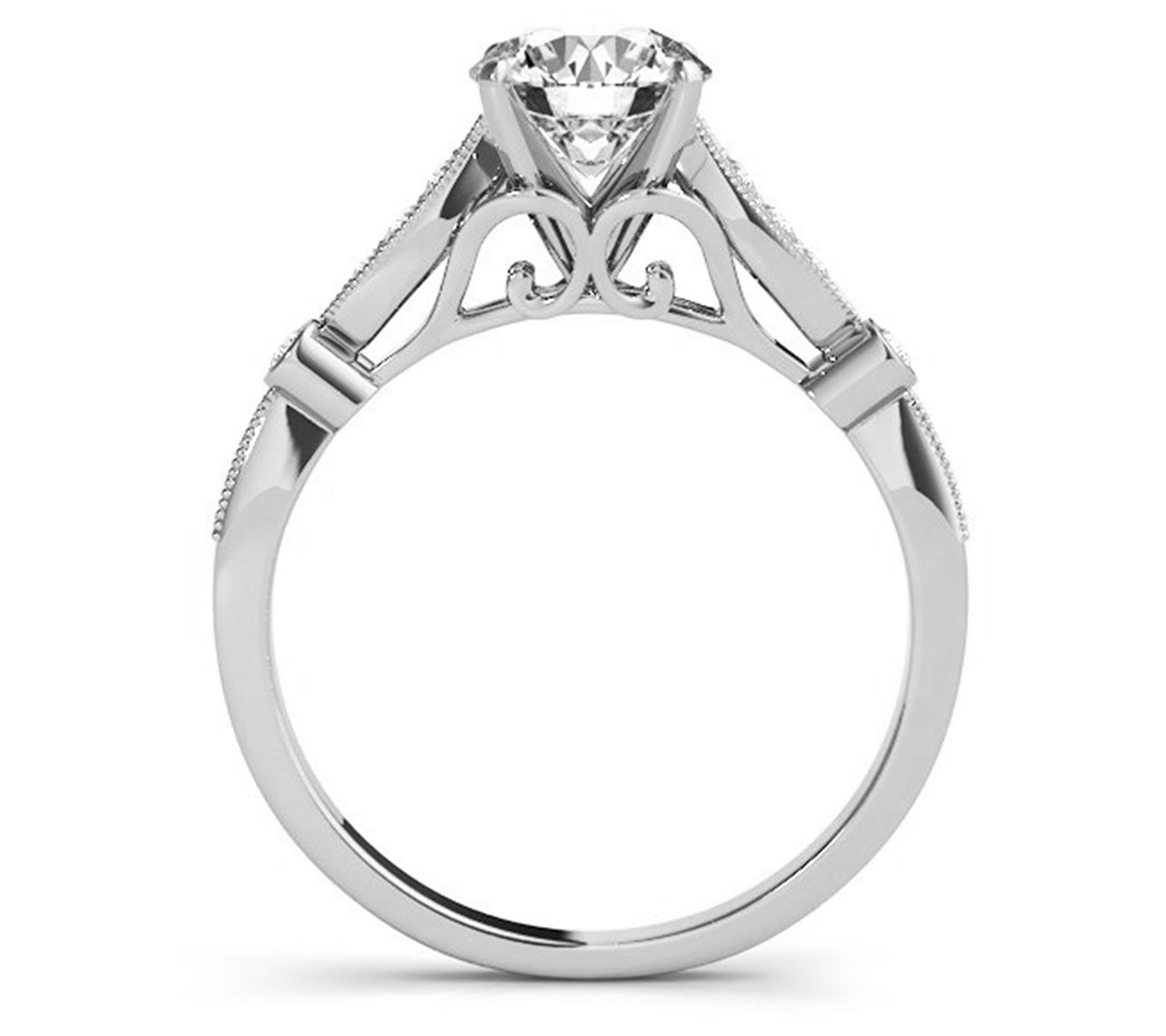 • Engagement ring: round-cut, prong-set Diamonique simulated diamond center; shoulder outlined with round-cut, prong-set Diamonique simulated diamonds