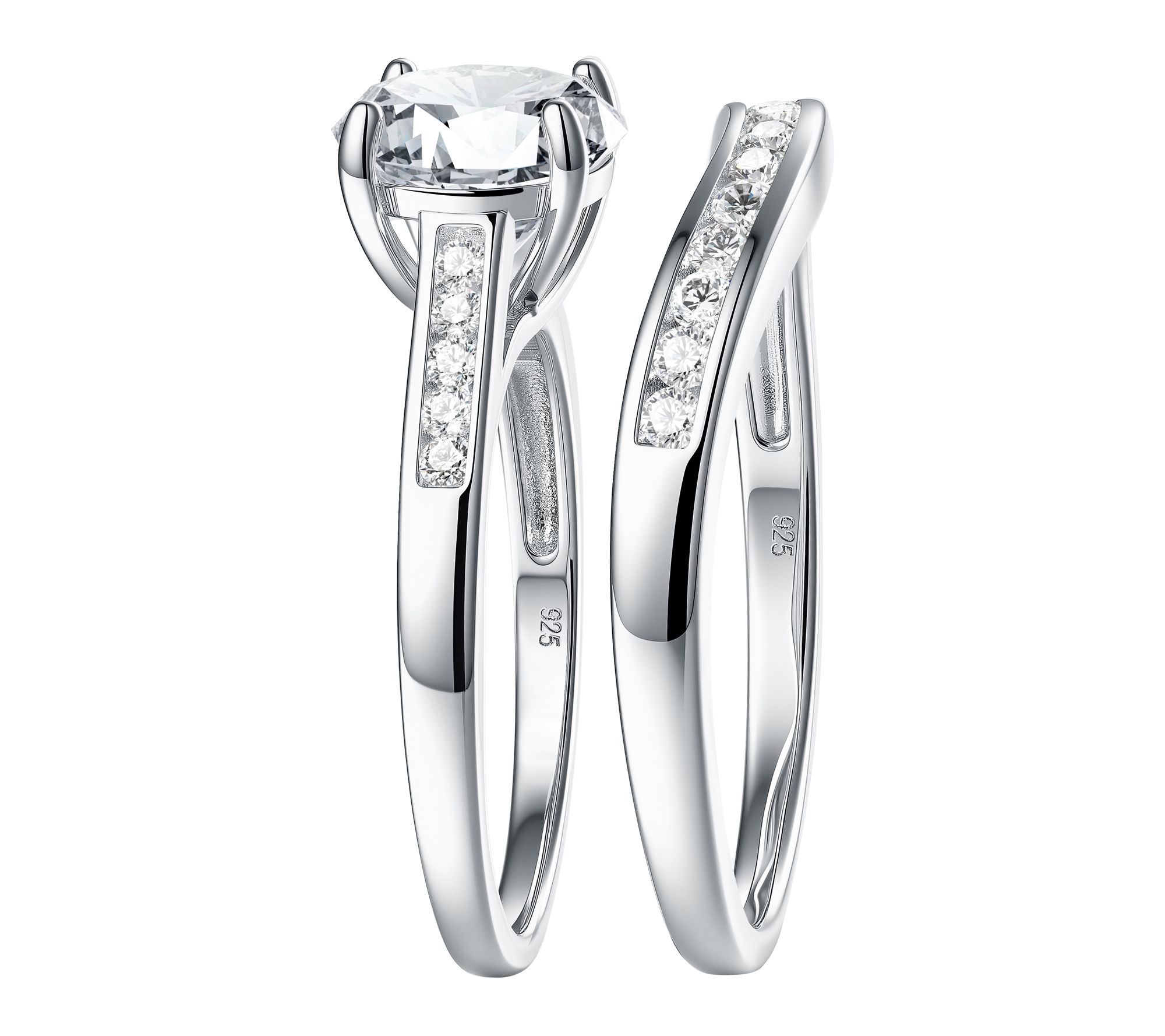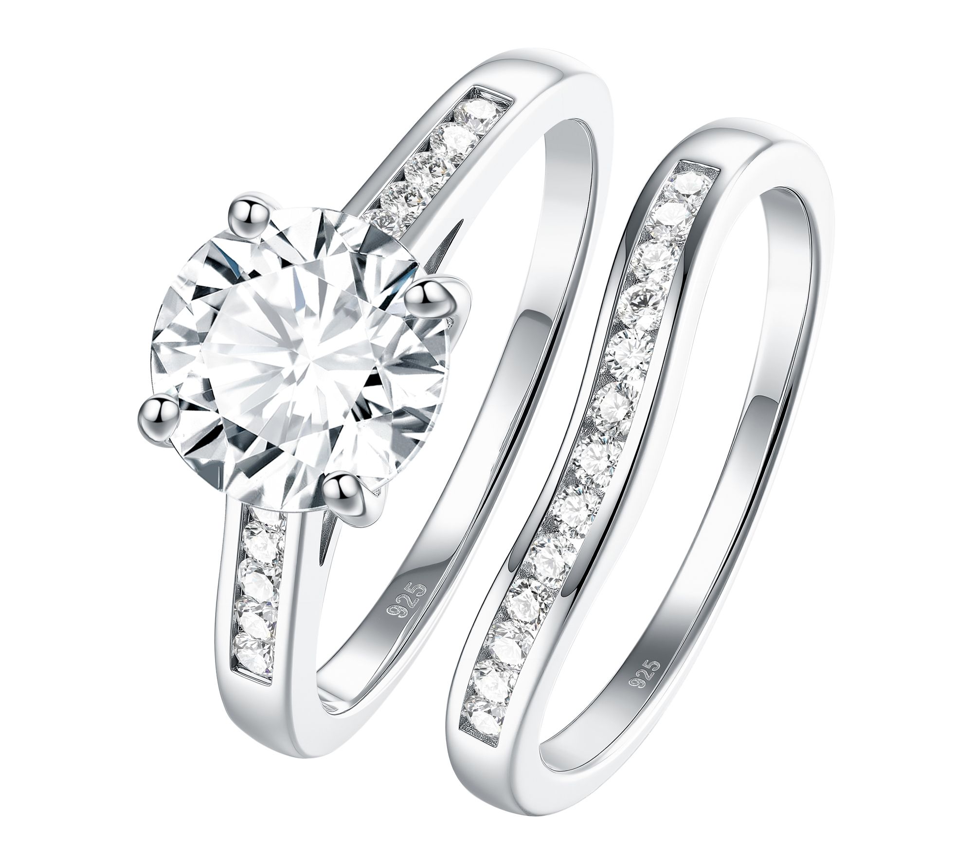 Diamonique 2.55 cttw Solitaire & Band Ring Set,Sterling
