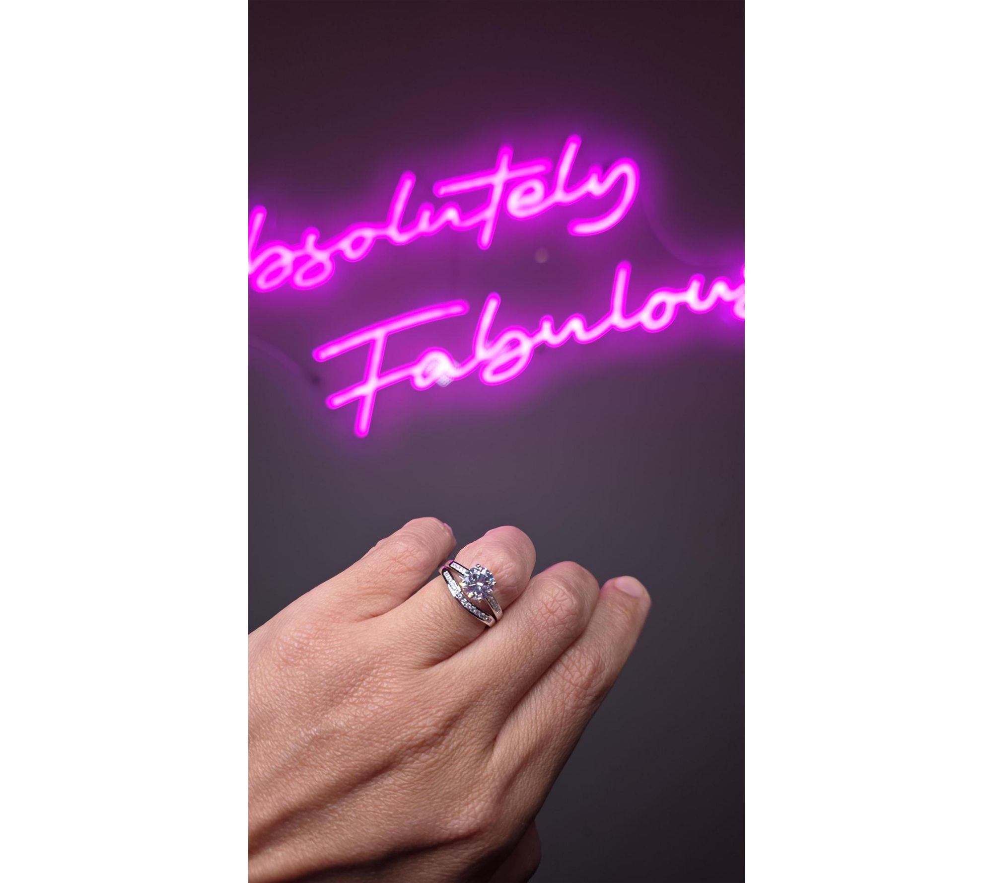 • Includes solitaire ring and stacking band ring