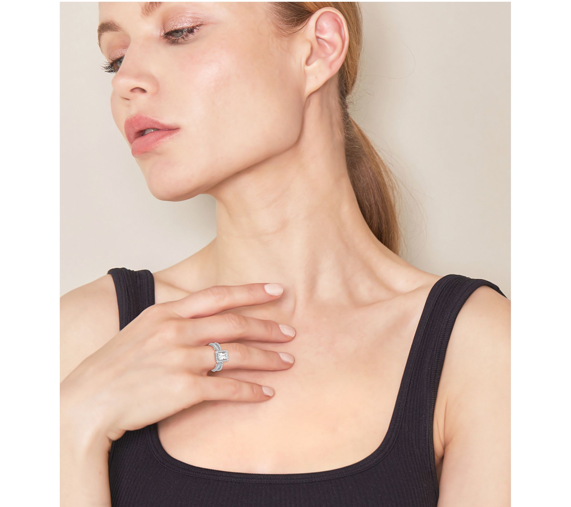 Endow your finger with the timeless glamour of this breathtaking engagement ring that captures attention with an extravagant arrangement of Diamonique simulated diamonds.