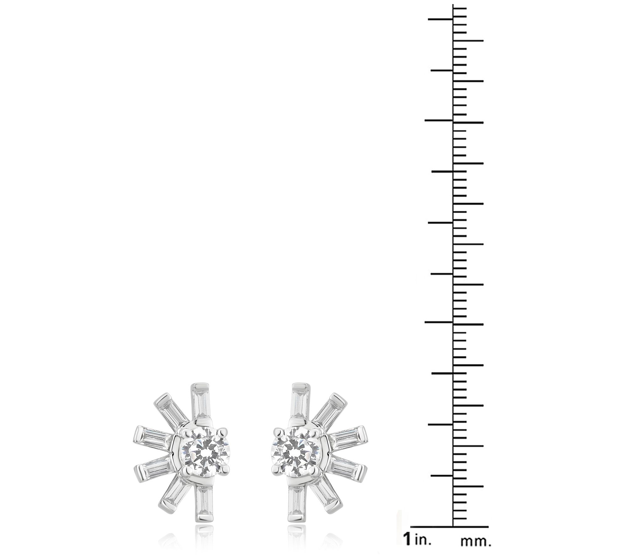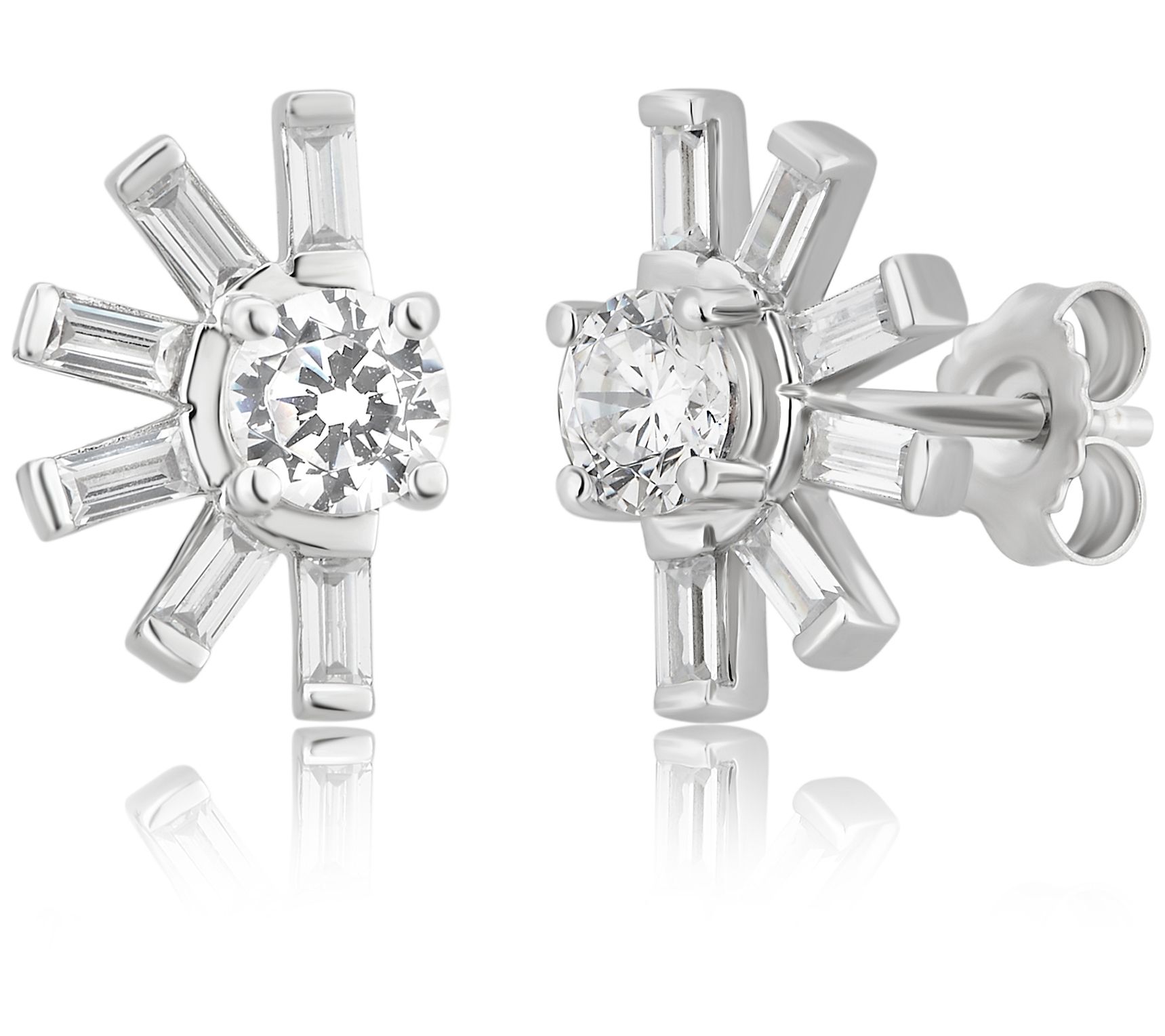 - Fan studs with baguette and round Diamonique simulated diamonds in open design