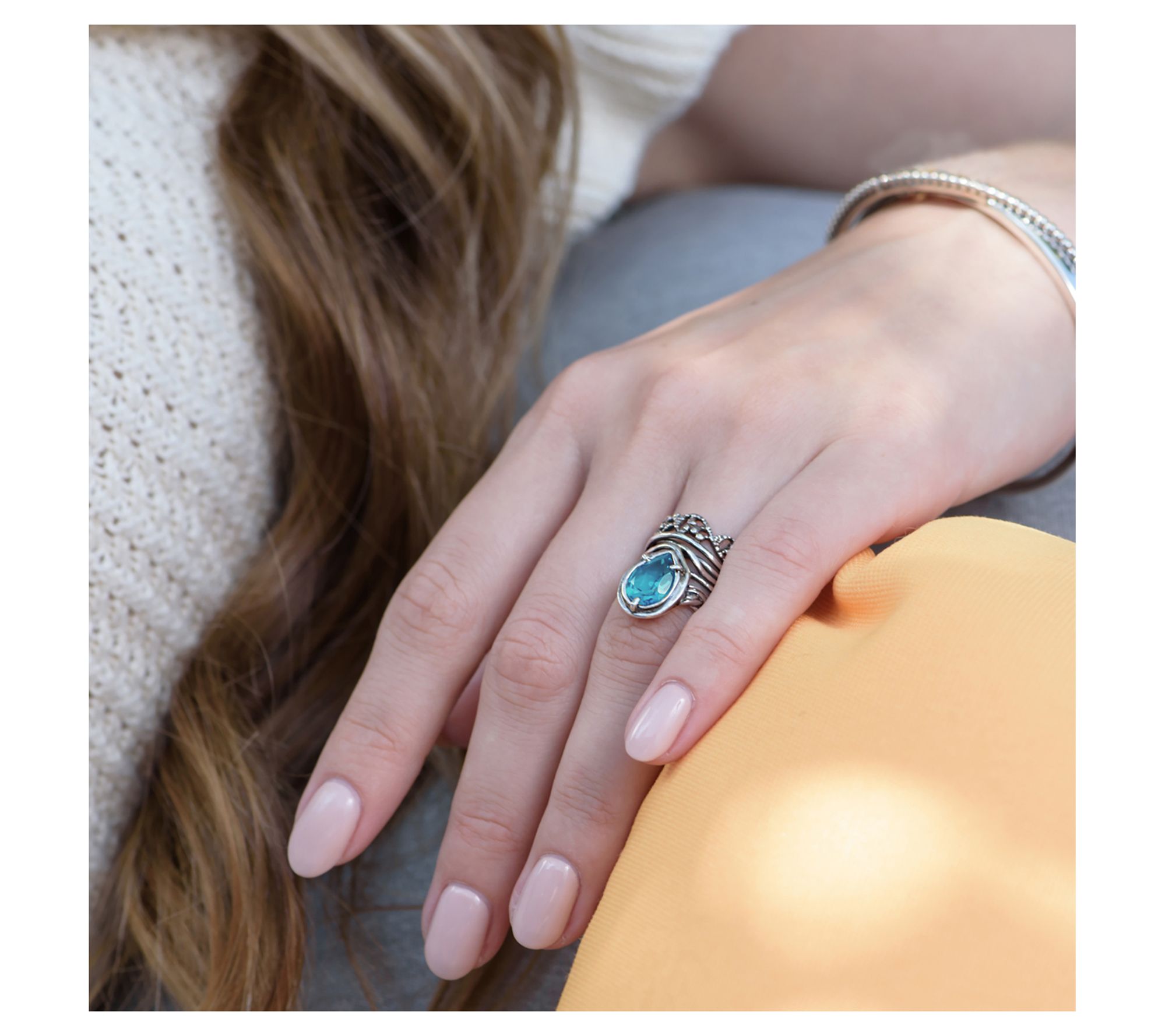 Imagine slipping on a radiant lace of colors that's as captivating as it is timeless. The teardrop-cut gemstone in this exquisite ring adds a splash of color and elegance to any outfit. Whether you're dressing up for a romantic dinner or adding a bit of glam to your everyday attire, this piece ensures you stand out with its vibrant shimmer and classic design.