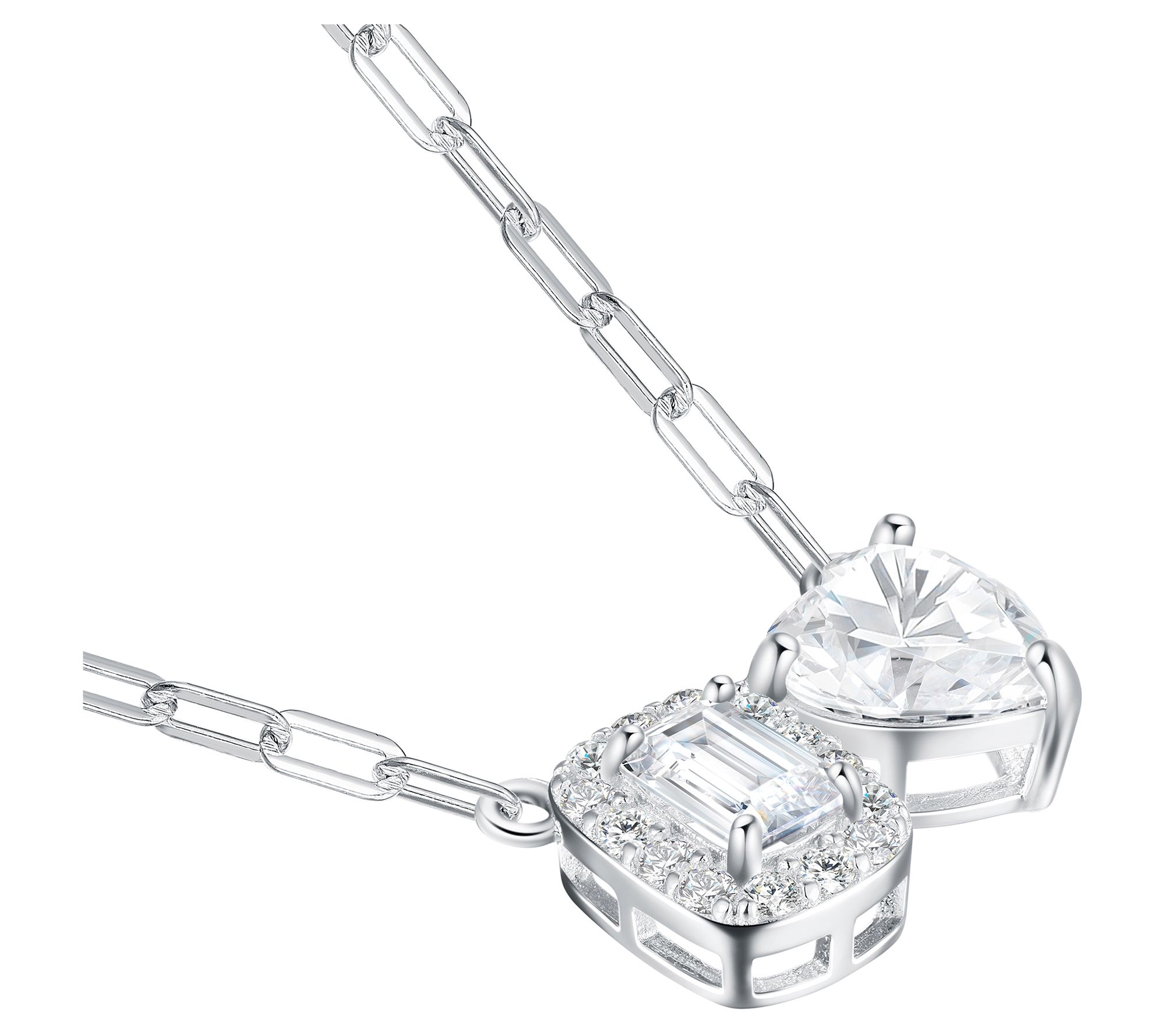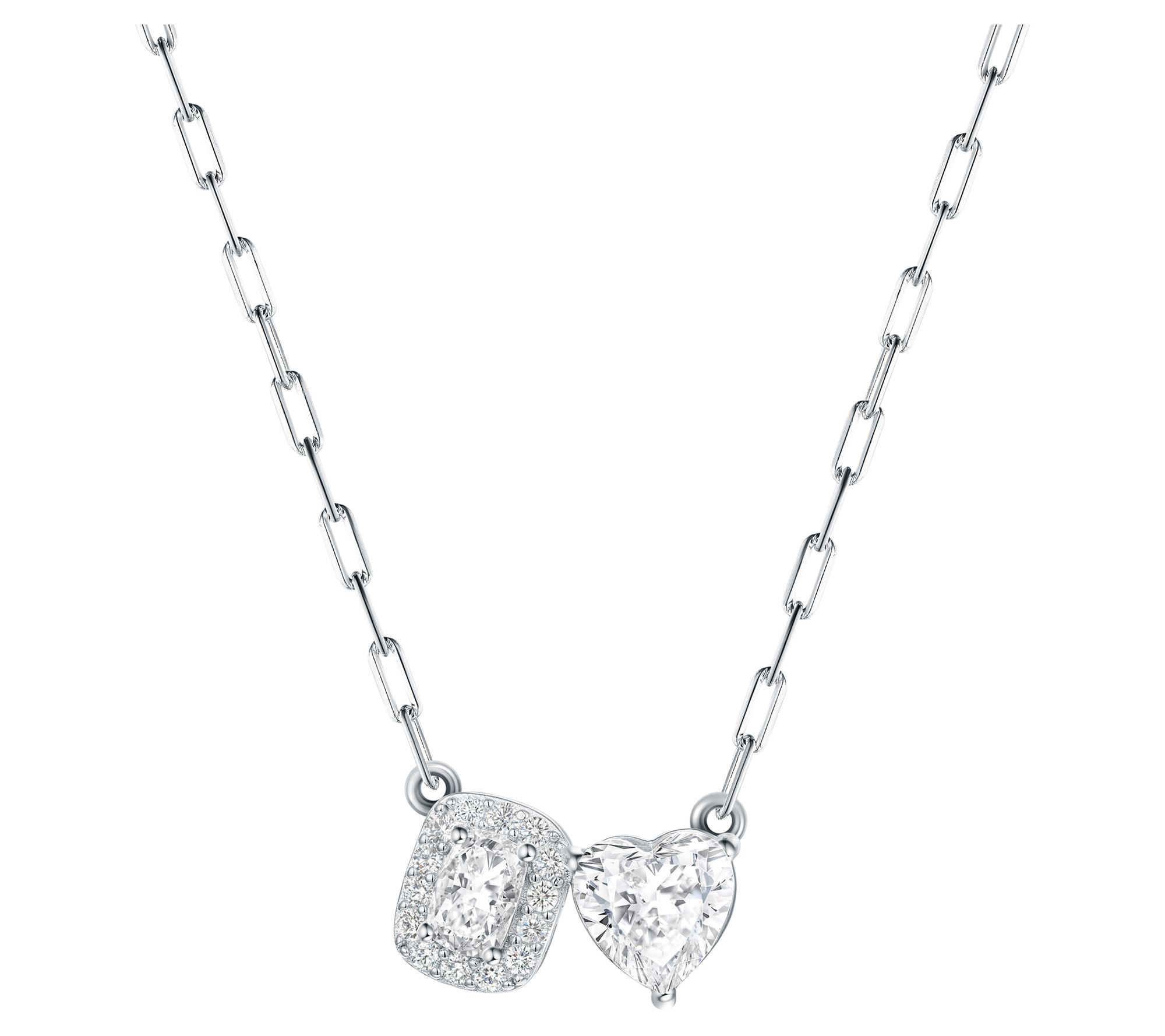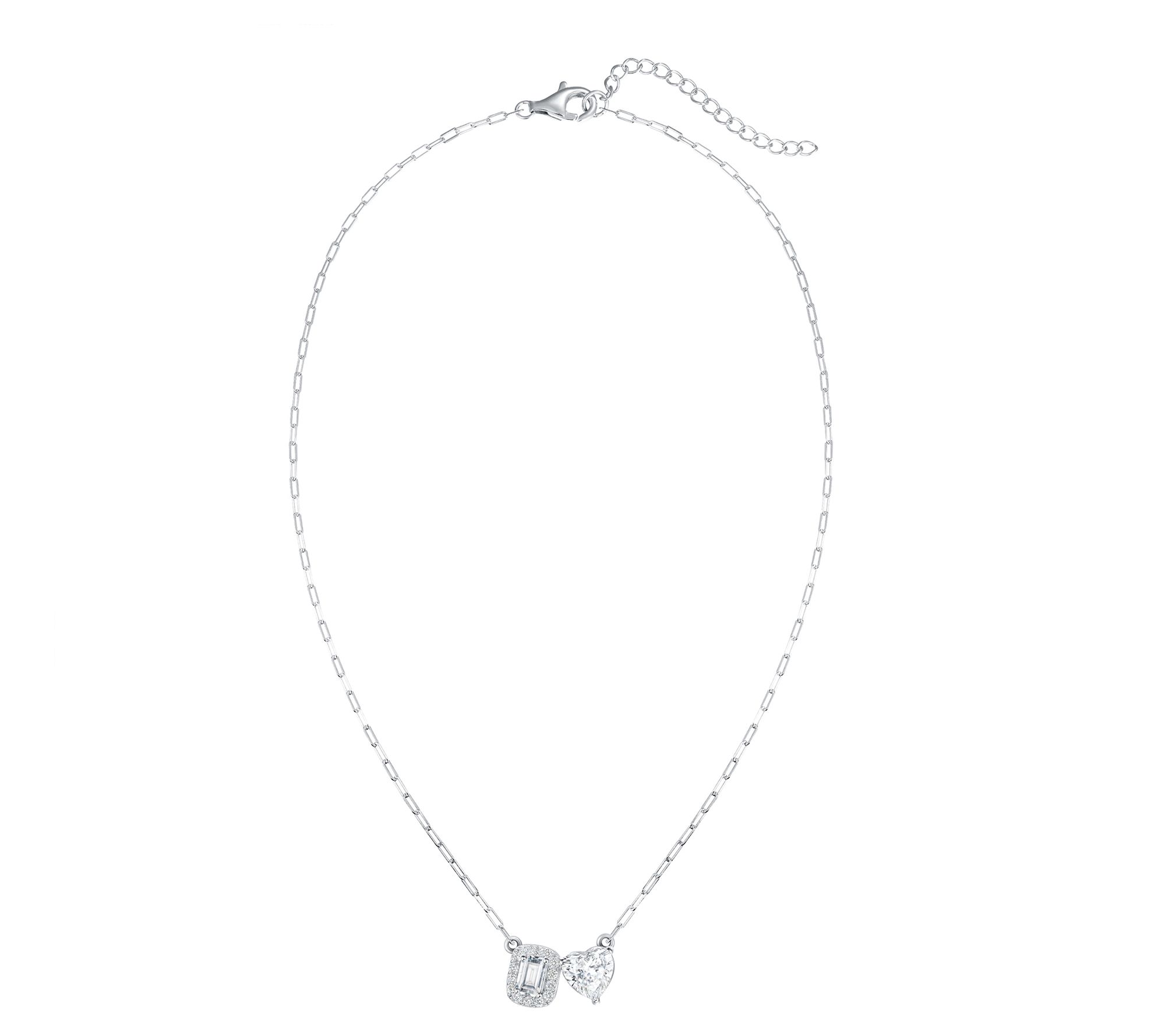 • Cushion and heart-cut, prong-set Diamonique simulated diamond center; round-cut Diamonique simulated diamonds outline; paperclip chain