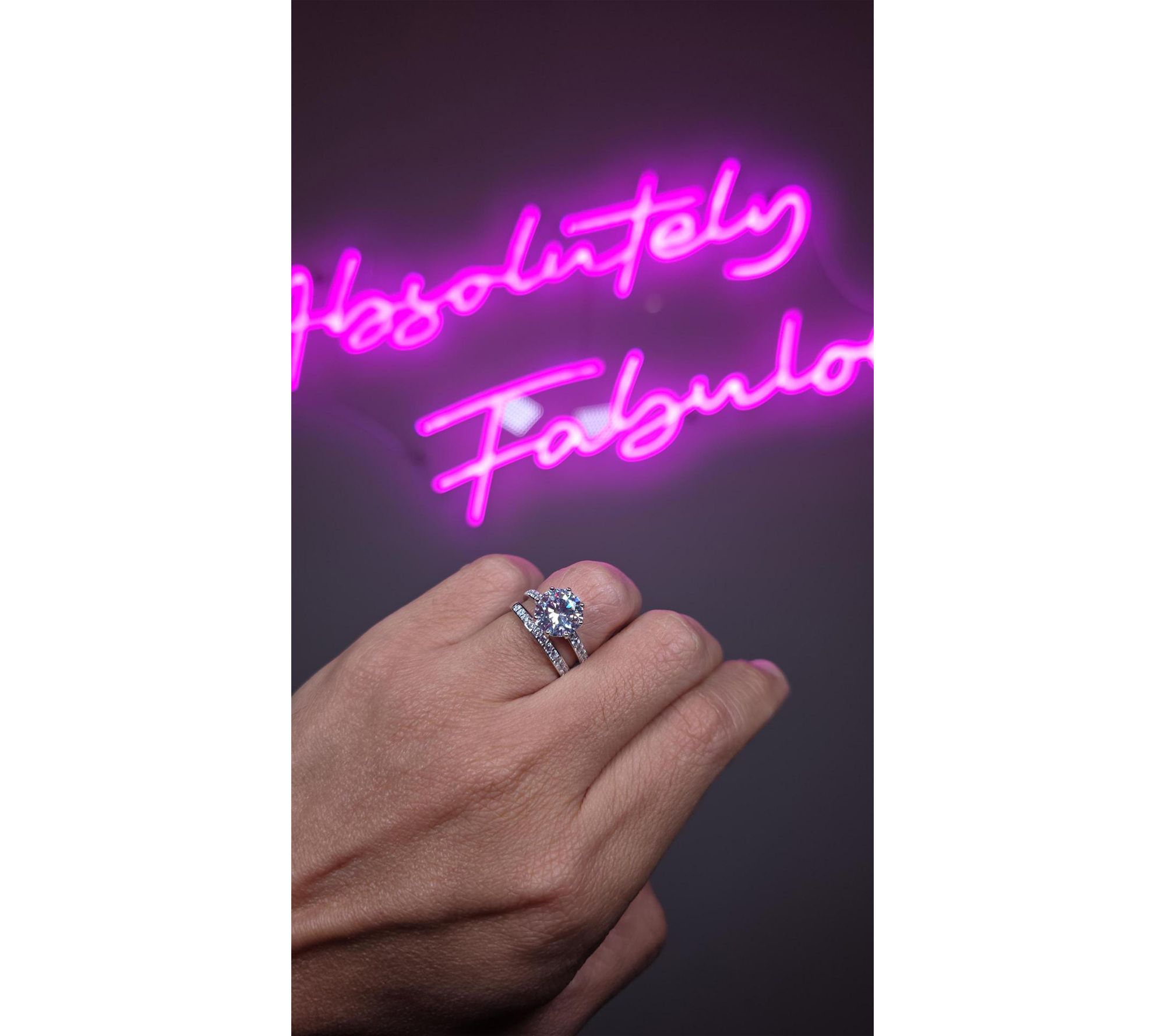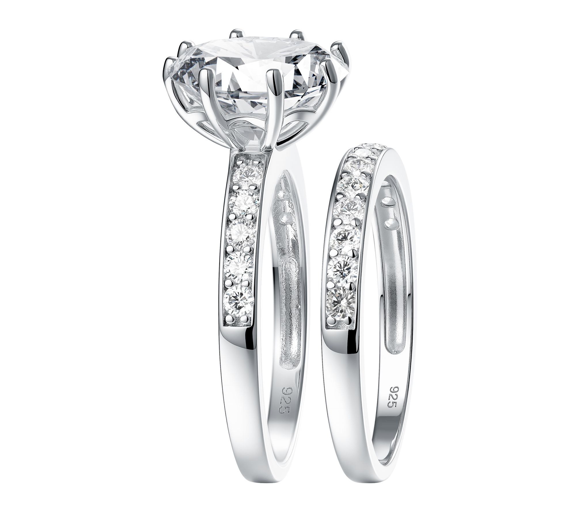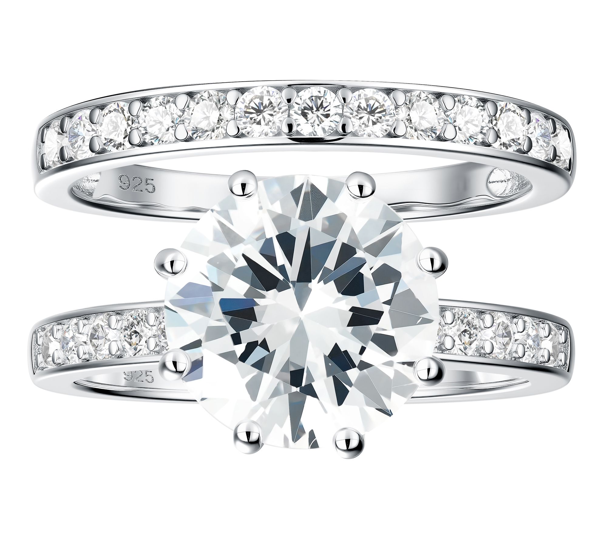 A sparkling symbol of love and commitment, this ring set catches the light beautifully with every gesture. A round-cut Diamonique simulated diamond solitaire sits atop a sleek band, while the coordinating eternity band adds extra brilliance -- making every moment feel special, from a romantic dinner to daily errands.
