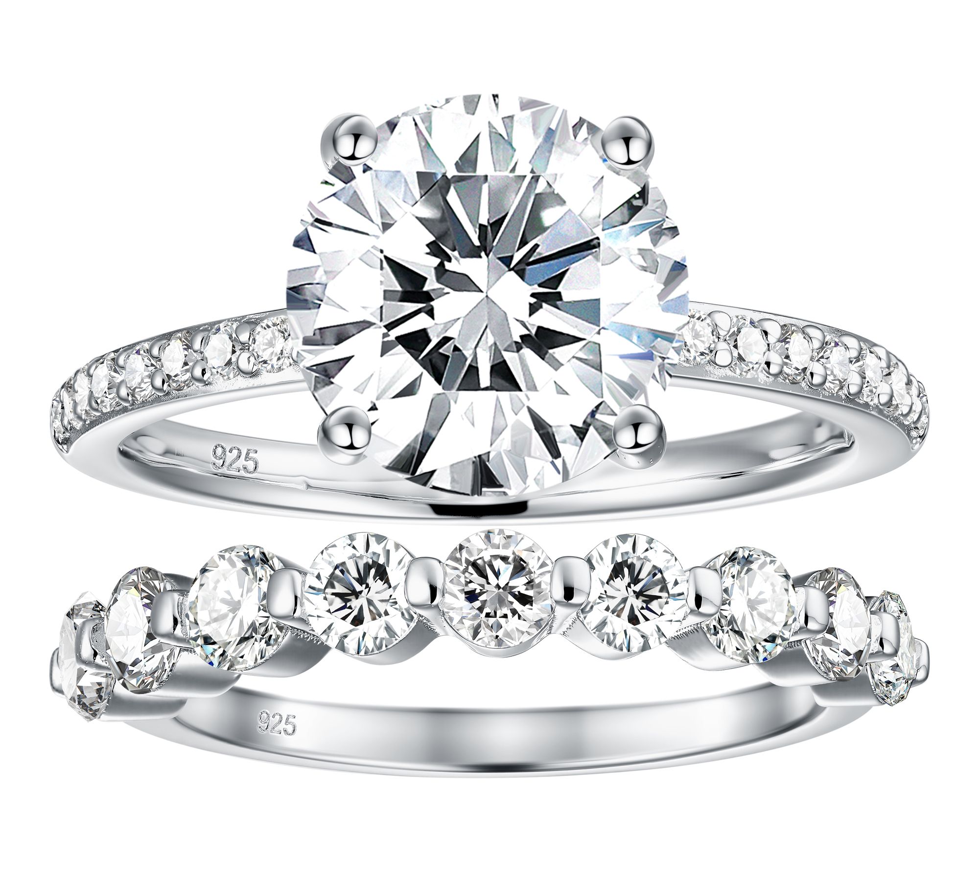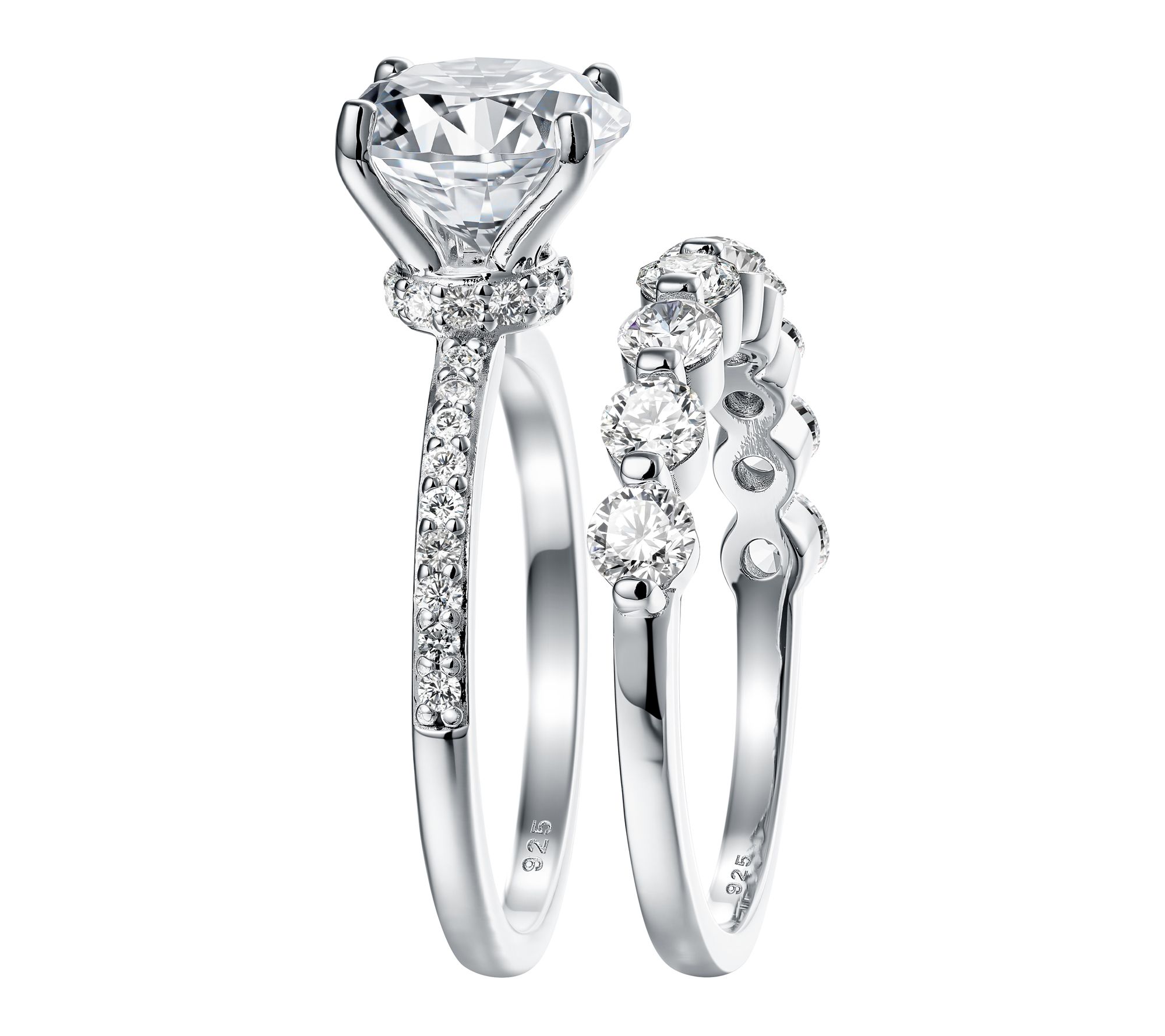 Bring eye-catching sparkle to your celebrations or everyday moments with this sterling silver bridal set. A solitaire engagement ring accented with cubic zirconia Diamonique simulated diamonds pairs beautifully with its coordinating bezel-set band -- making it easy to shine whether you're saying "I do" or dressing up a favorite look.
