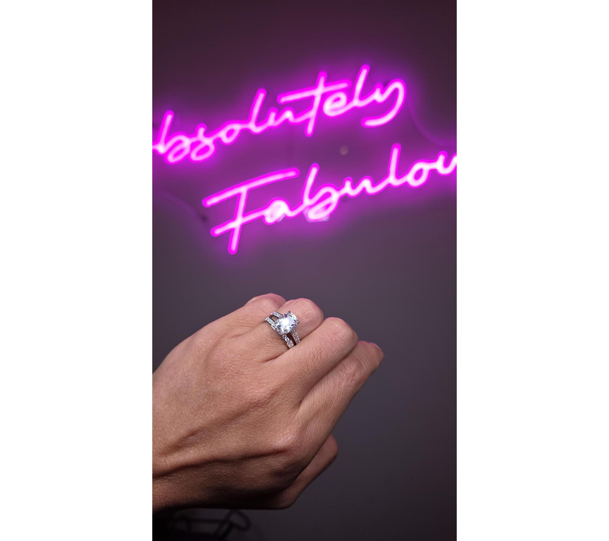 Celebrate your love story with this breathtaking ring set featuring a cushion-cut solitaire and a dazzling channel-set band. The classic styling and sparkling Diamonique simulated diamonds capture attention, making every gesture shimmer -- whether you're proposing, renewing your vows, or simply treating yourself.