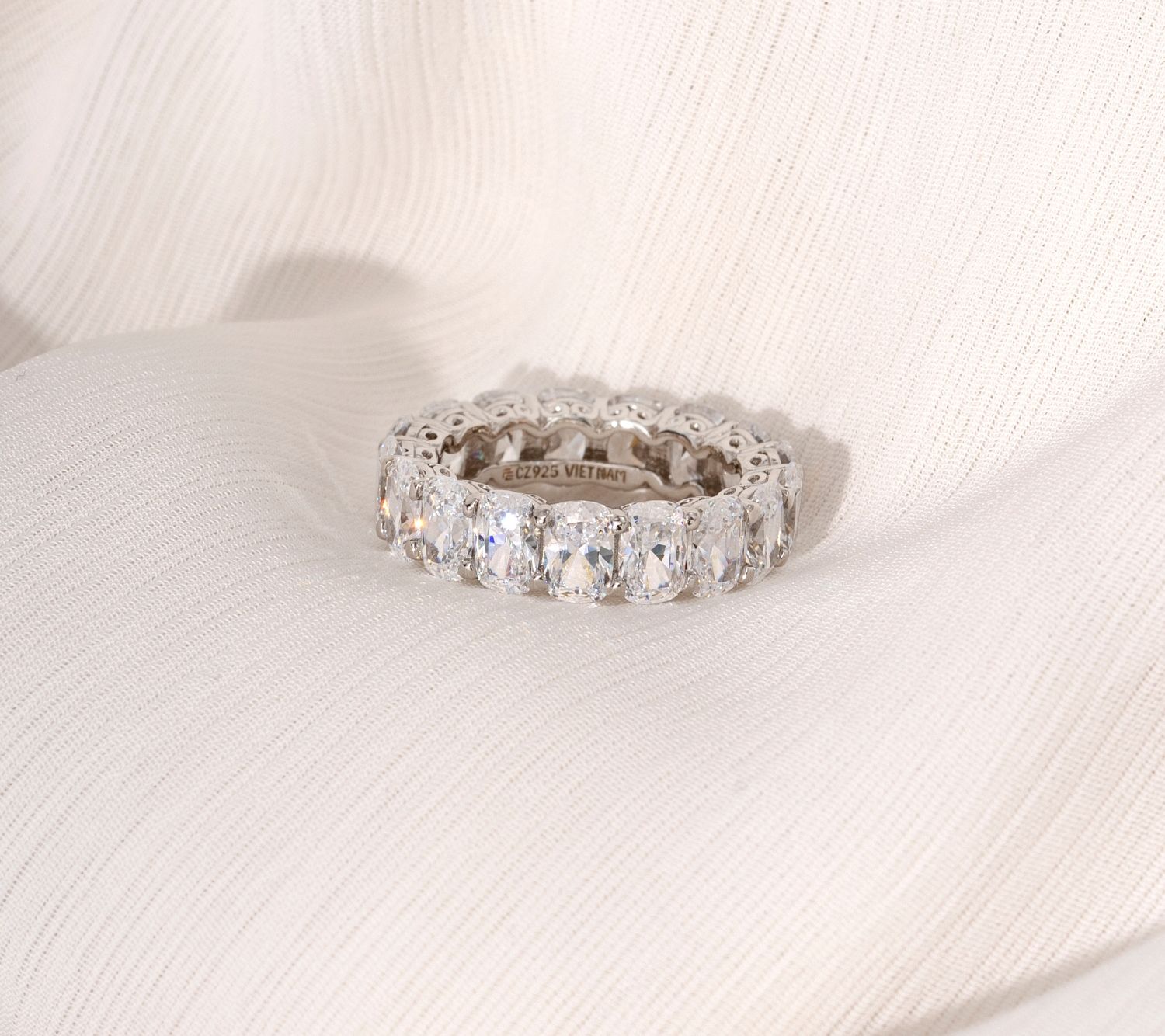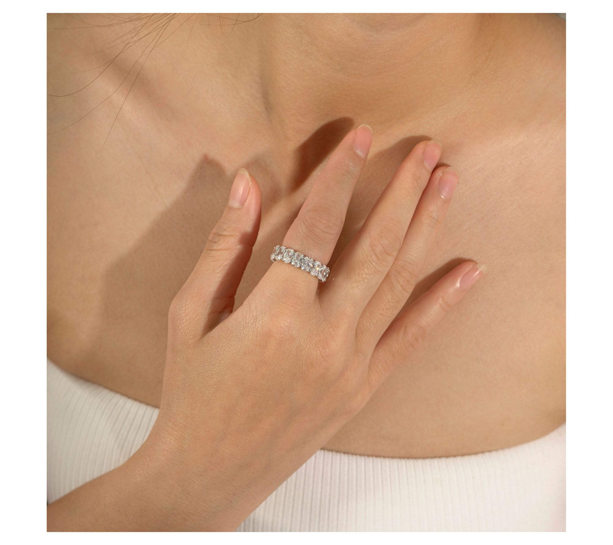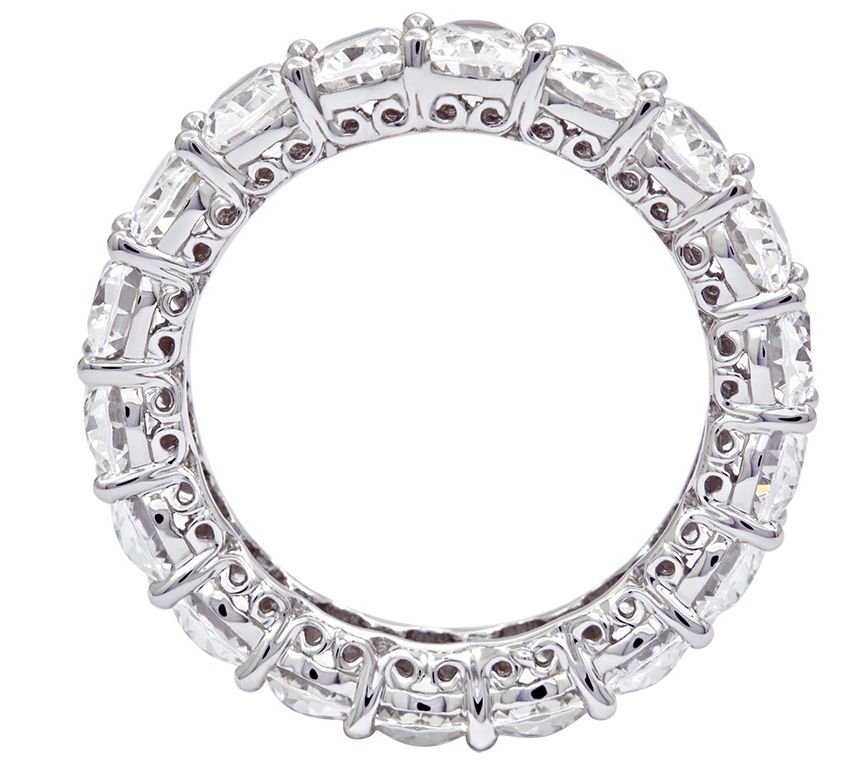 Eternally engaging. Prong-set, oval-cut cubic zirconia Diamonique simulated diamonds cover a brightly polished platinum-clad sterling silver band. A perfect circle of sparkle makes the statement you want.