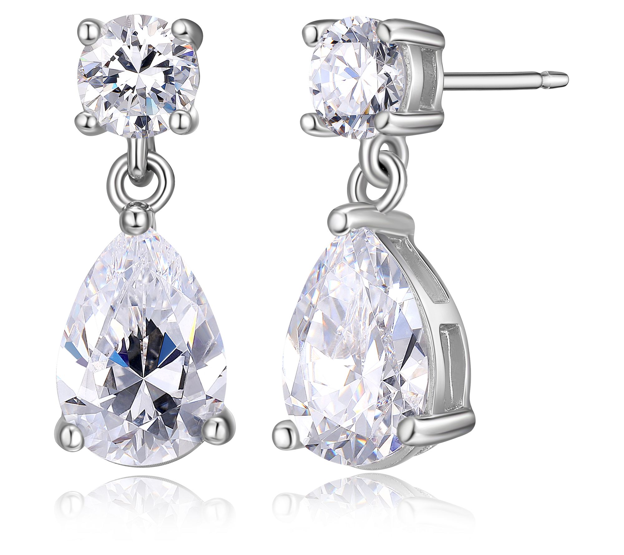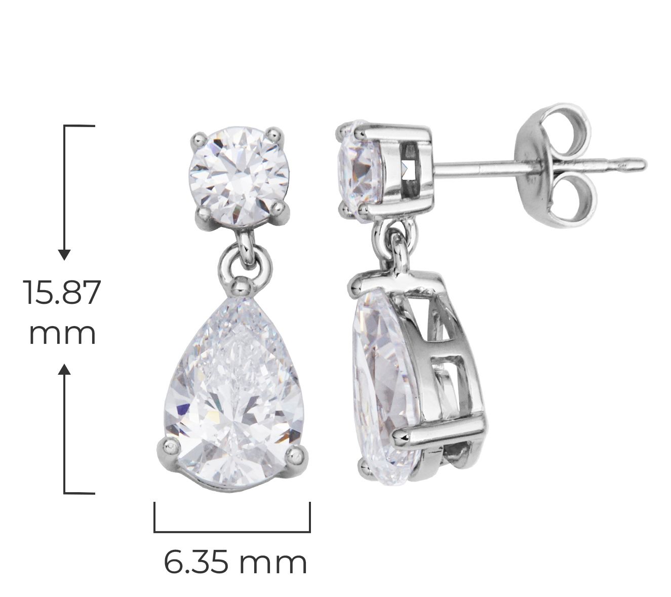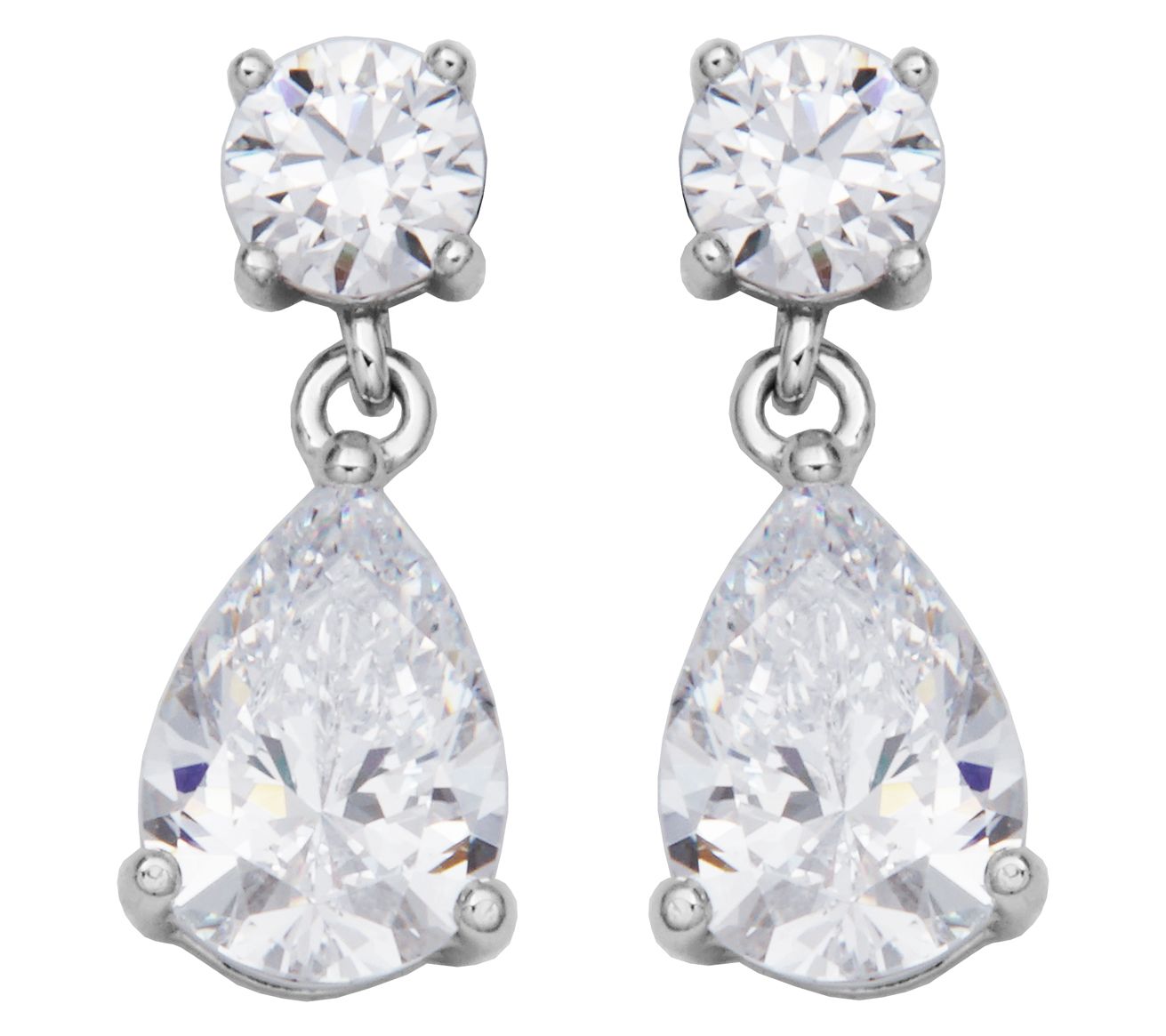 • Dangle earrings with pear- and round-cut Diamonique simulated diamonds