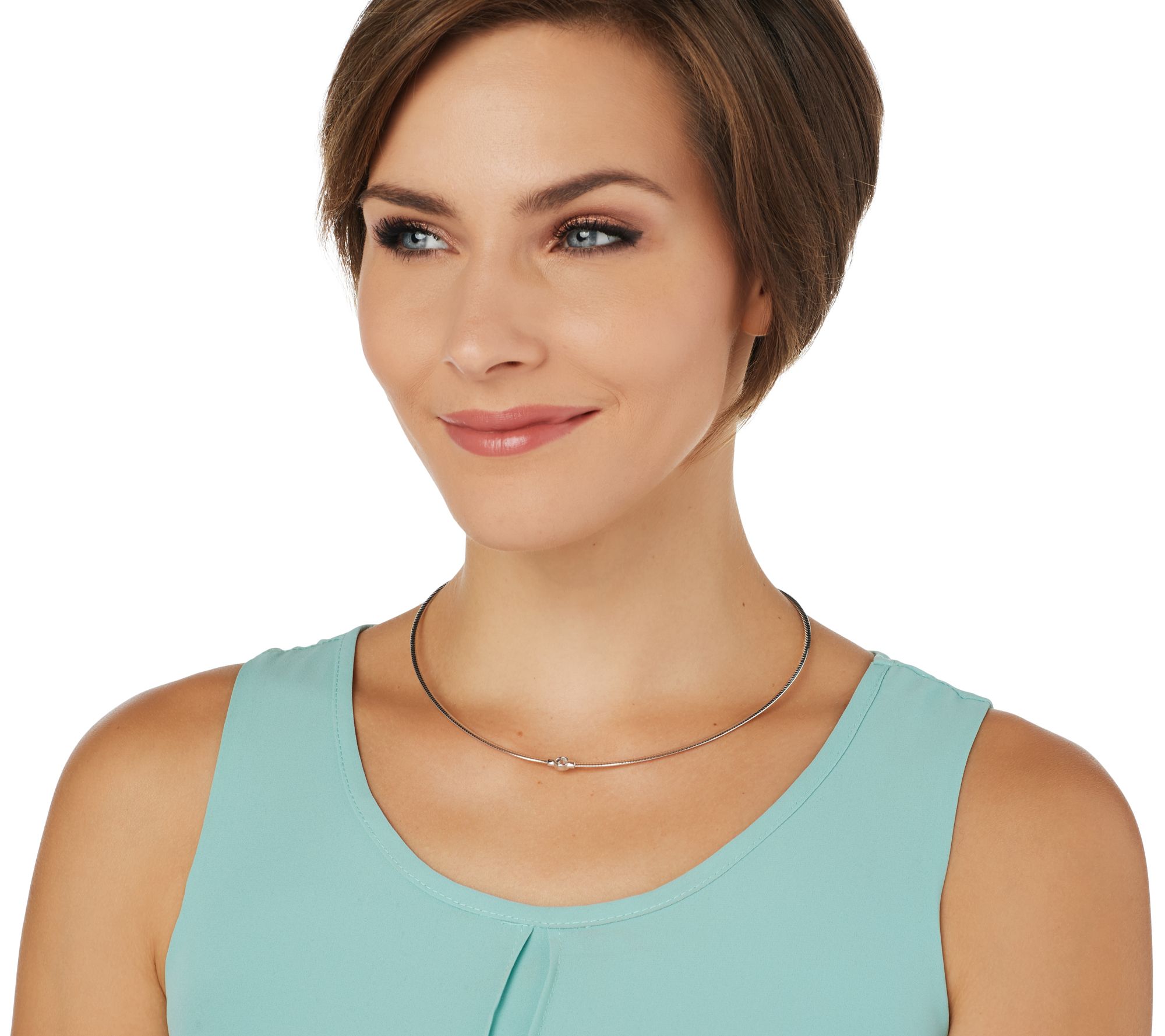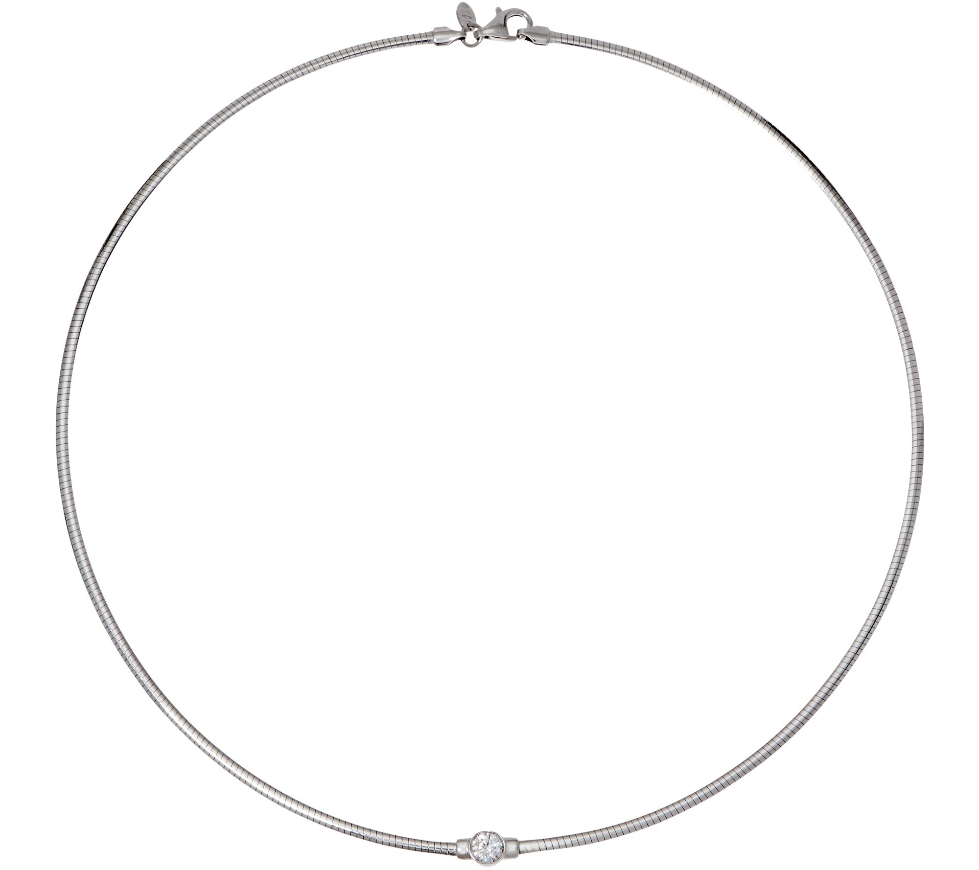 Diamonique Bezel Set Omega Necklace, Sterling or 14K Clad