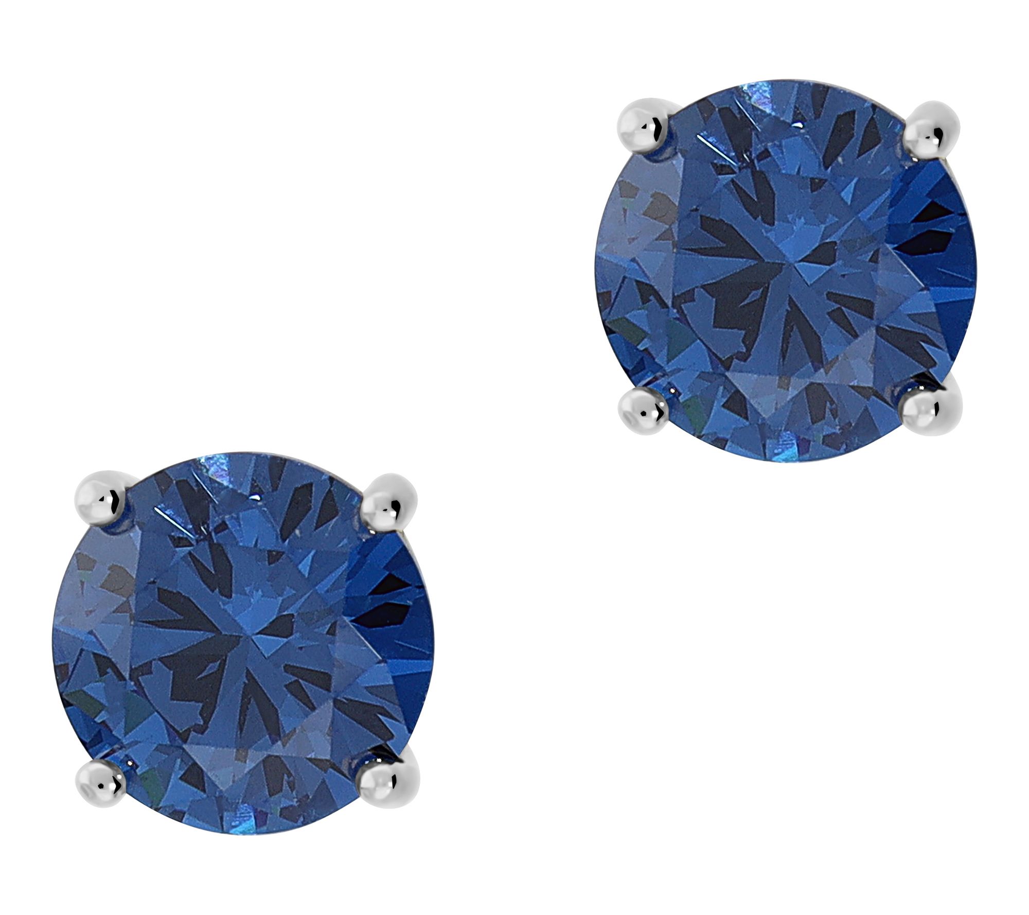 Diamonique Blue Solitaire Stud Earrings, Sterling Silver