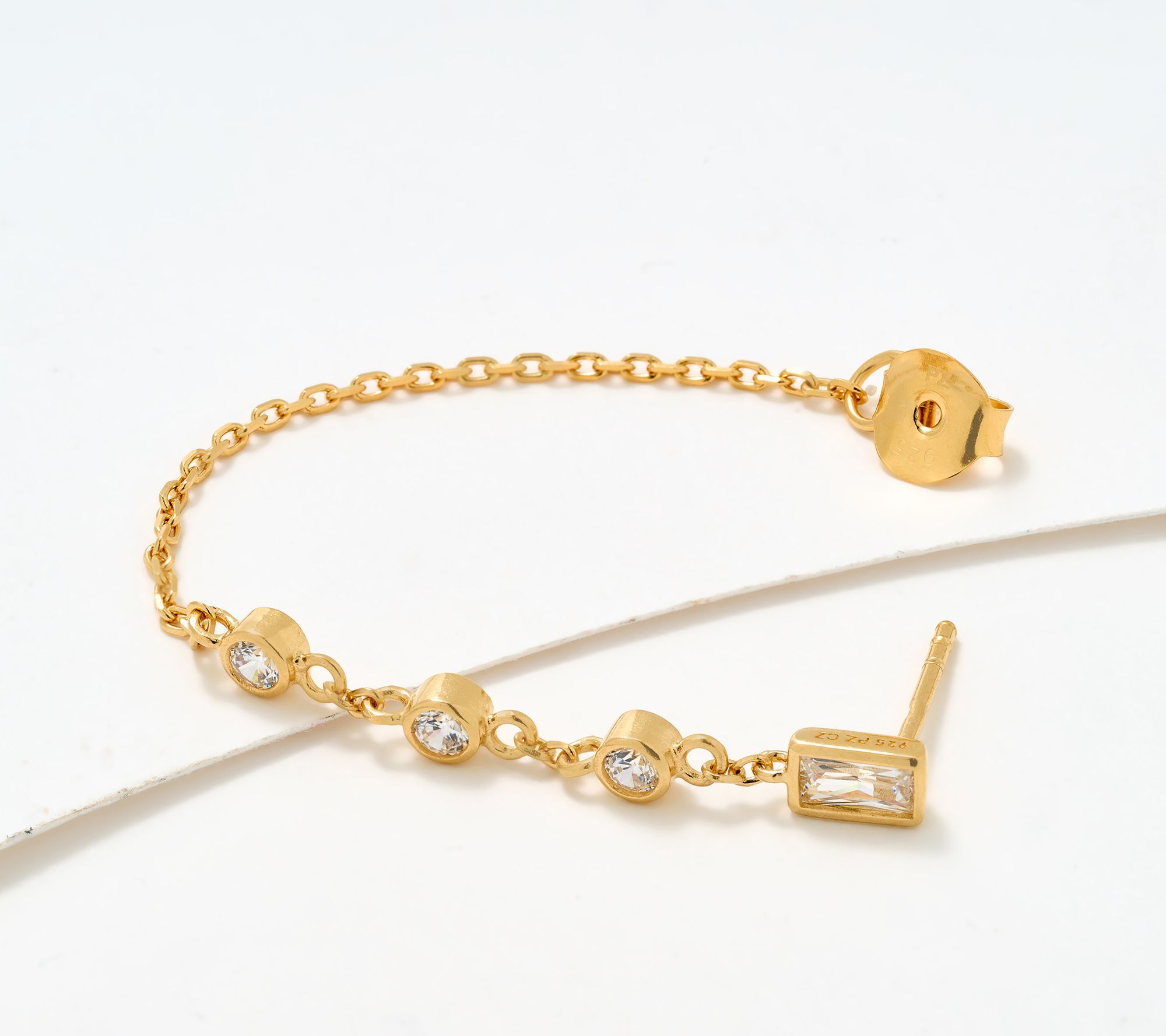 Your morning coffee run or evening plans both get brighter with these chain and station earrings crafted in sterling silver. Sparkly round Diamonique simulated diamonds punctuate the polished finish, catching the light and drawing attention. Let these earrings effortlessly dress up any moment!