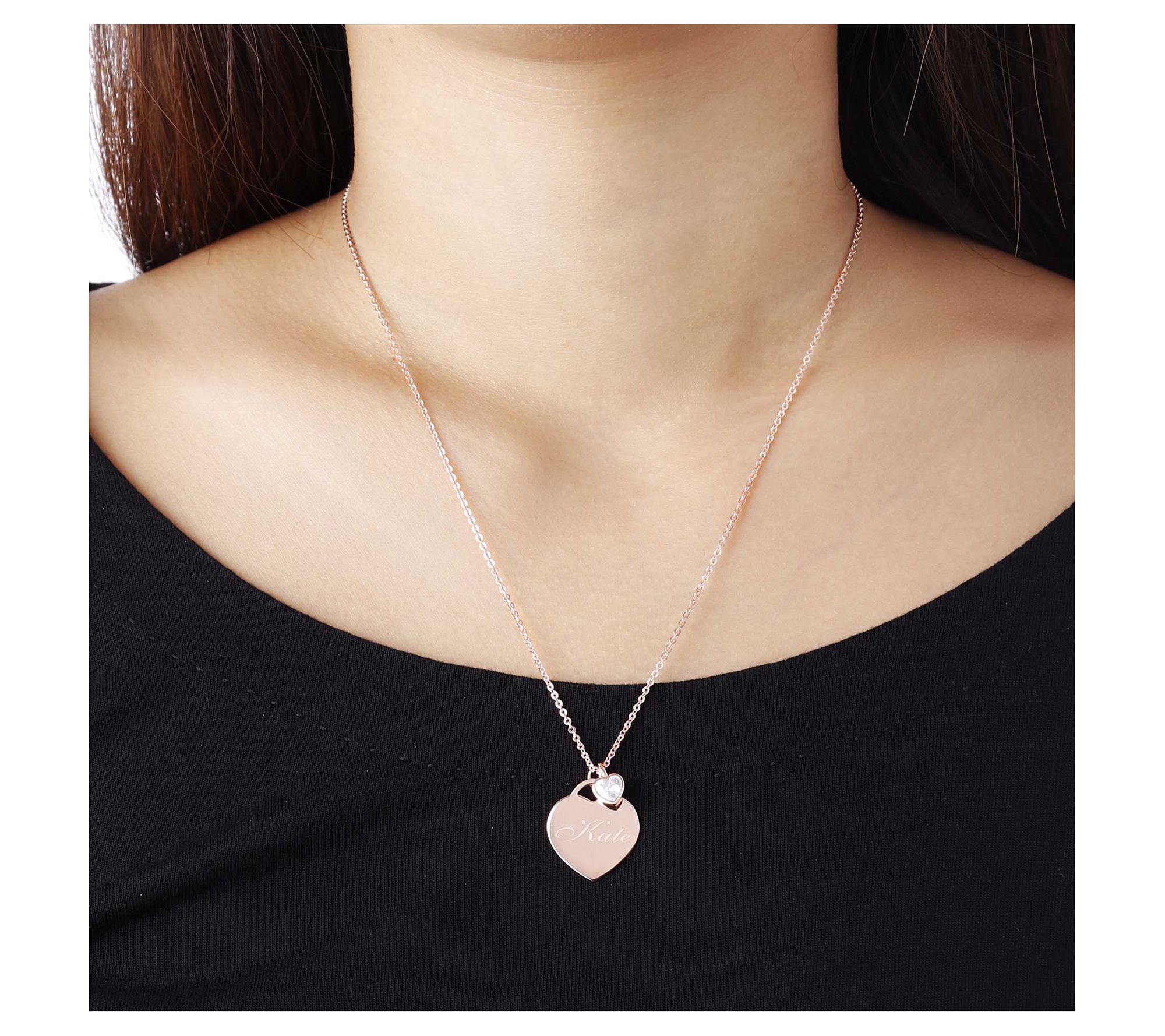 Personalize your look! This custom necklace sparkles with a cubic zirconia Diamonique simulated diamond charm and a pendant engraved with your name or message.