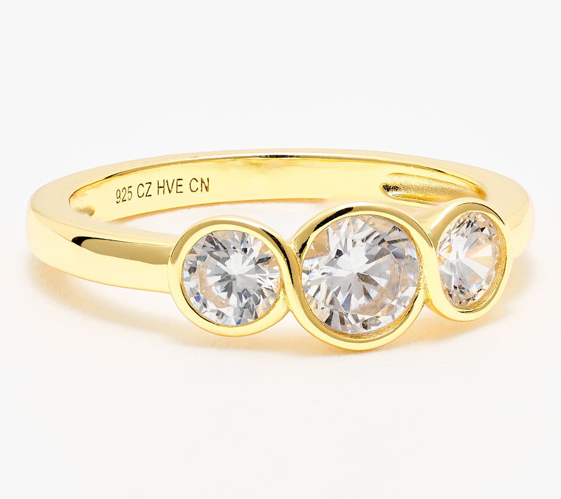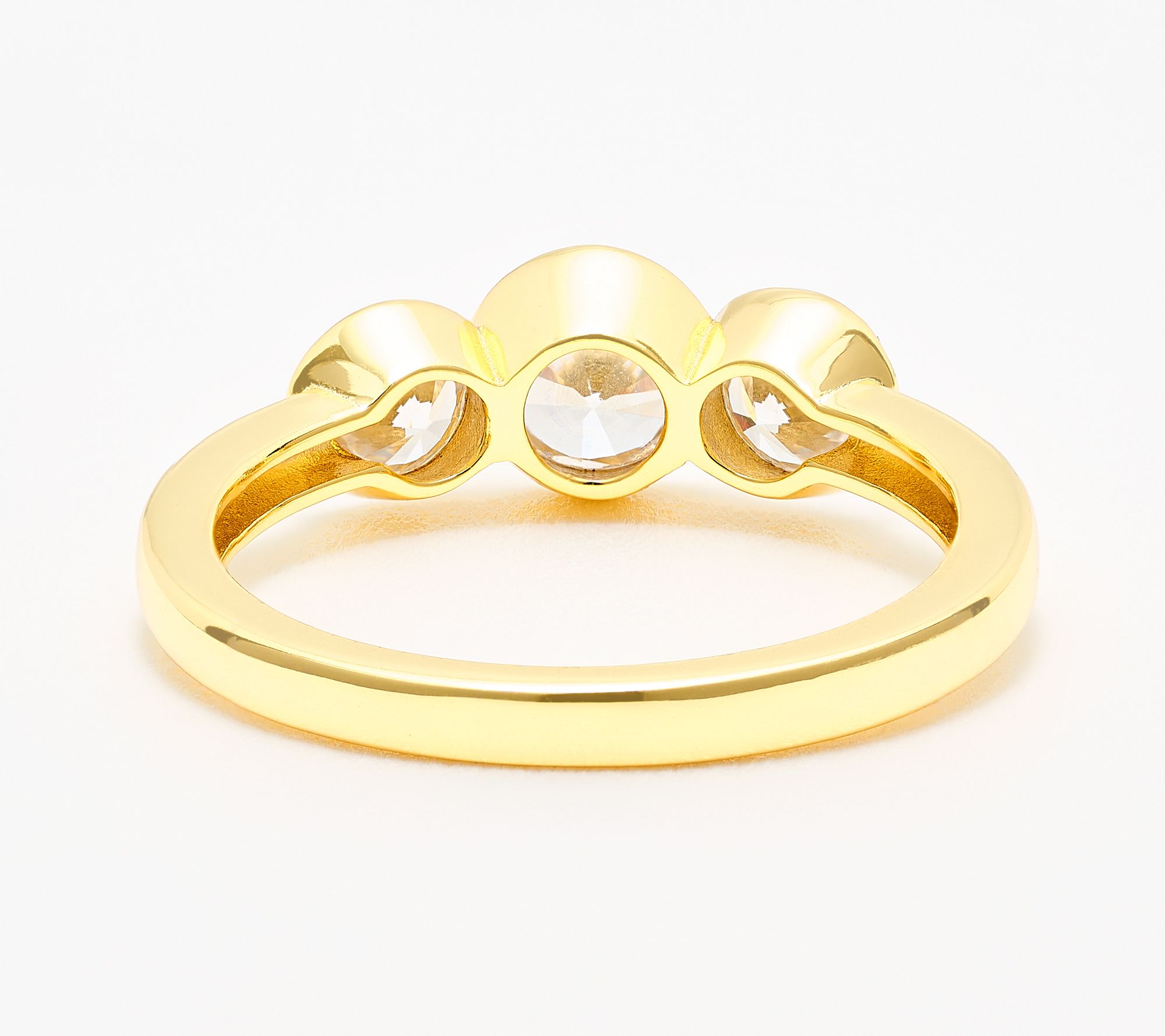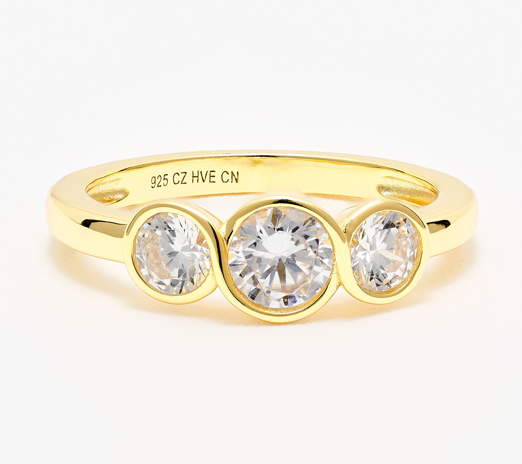Sparkle times three. This Diamonique simulated diamond ring brings refined elegance to your jewelry rotation -- whether you're dressing up for a dinner out or layering for a subtle everyday shine. The classic three-stone design gives timeless appeal while offering a hint of contemporary flair.
