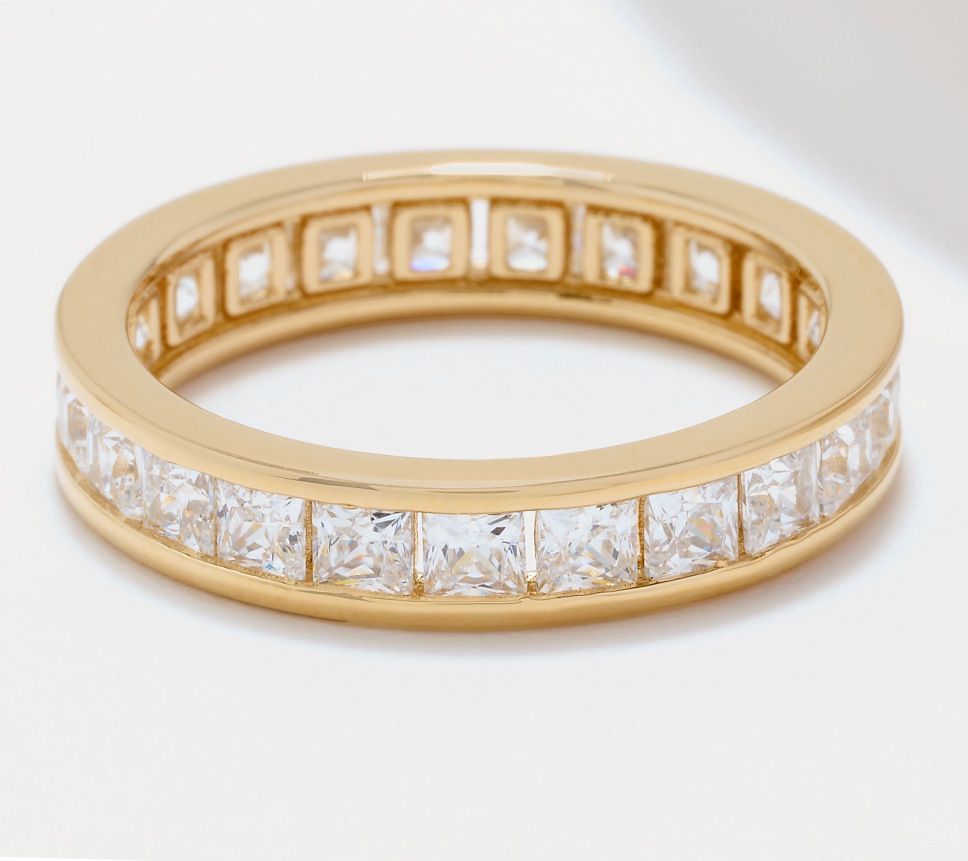 • Eternity design; princess-cut Diamonique simulated diamonds in a channel-style setting; polished finish
