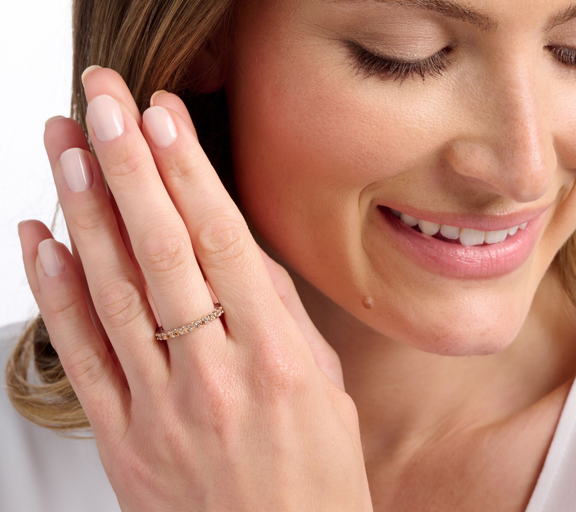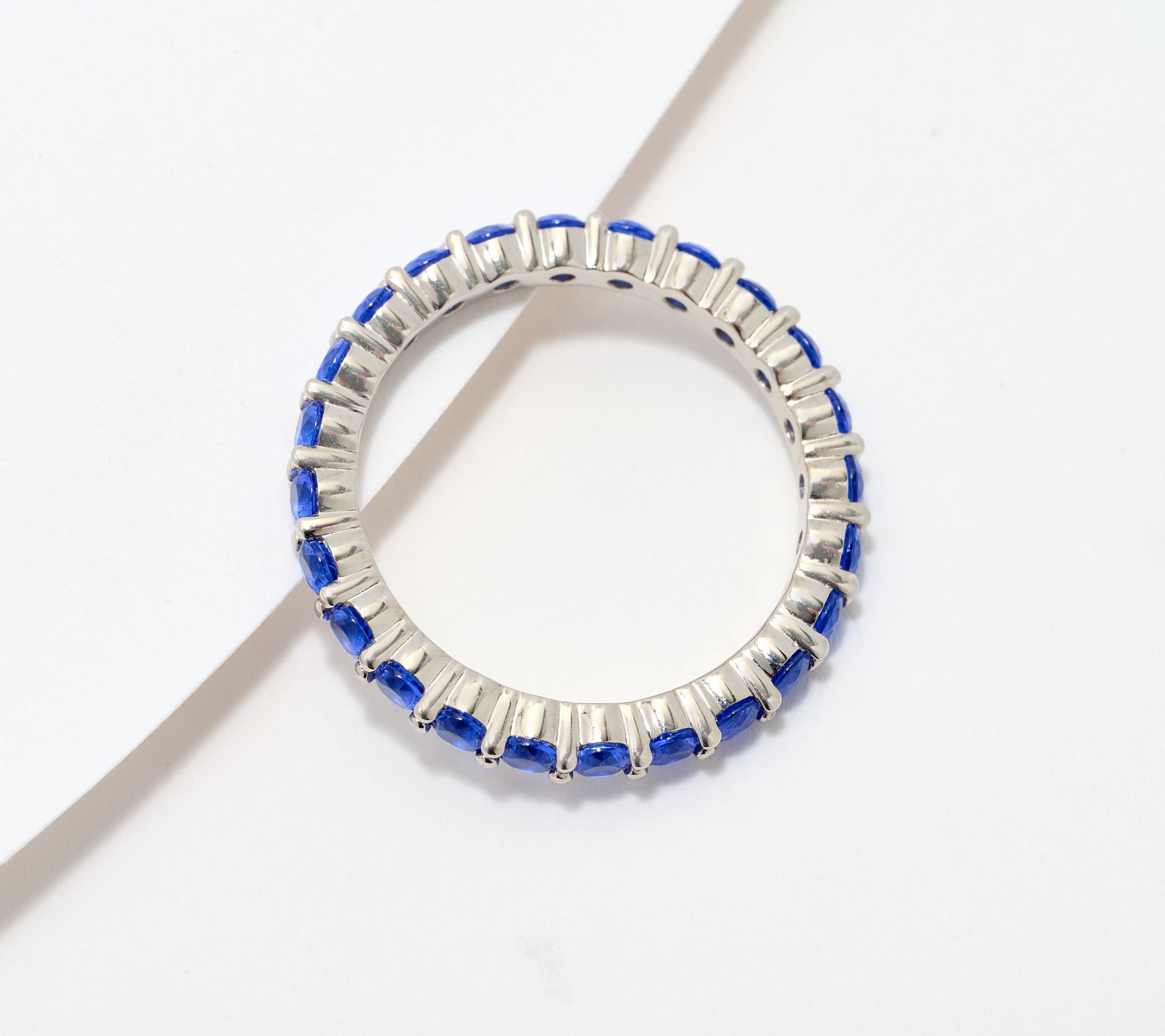 Combining classic style and irresistible color, this eternity band brings a vibrant radiance to routine days and special occasions alike. Sparkling Diamonique simulated diamonds go all around the band catching every glimmer of light and providing a pop of personality to any ensemble.