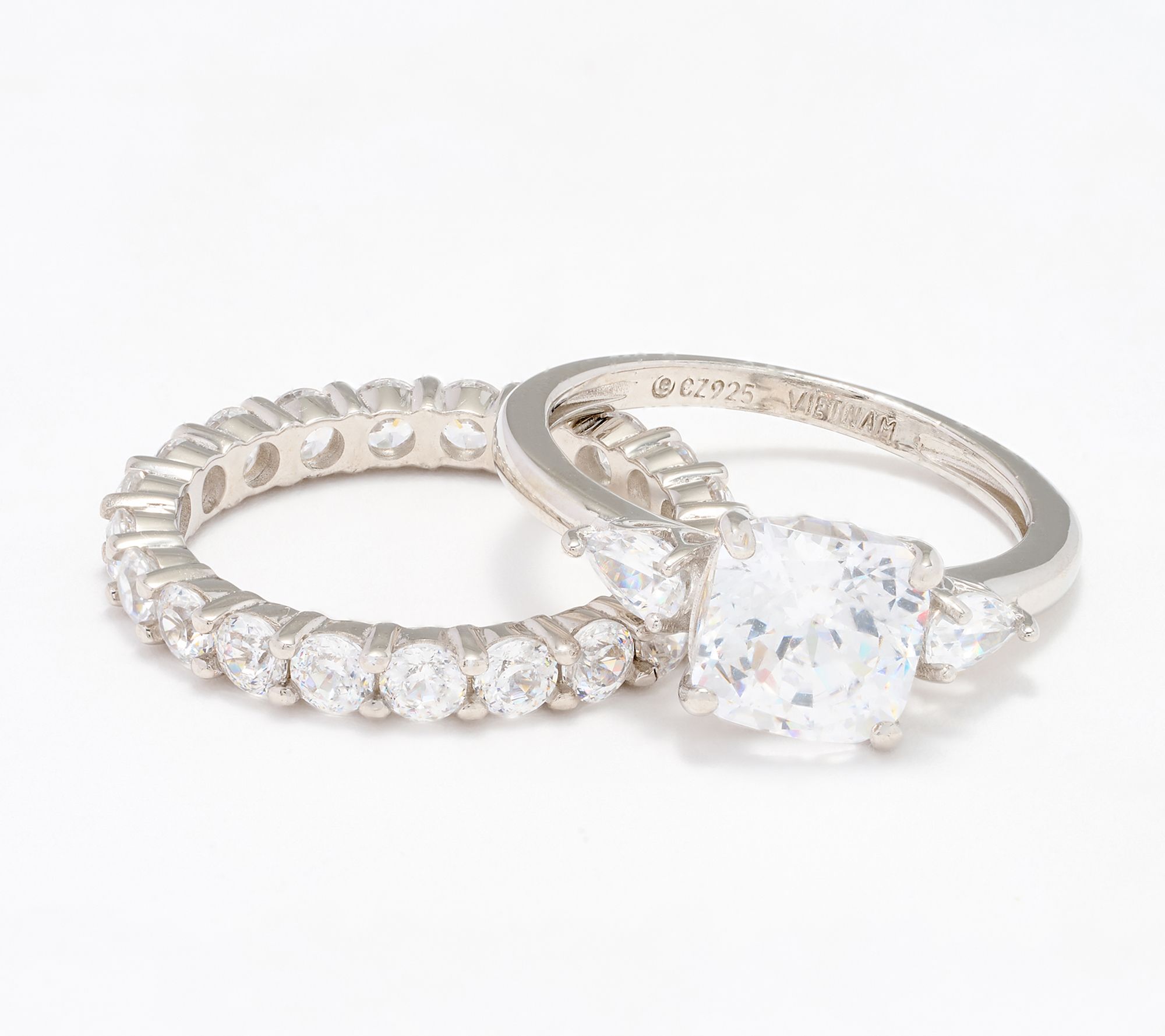 - Princess-cut and round-cut Diamonique simulated diamonds
