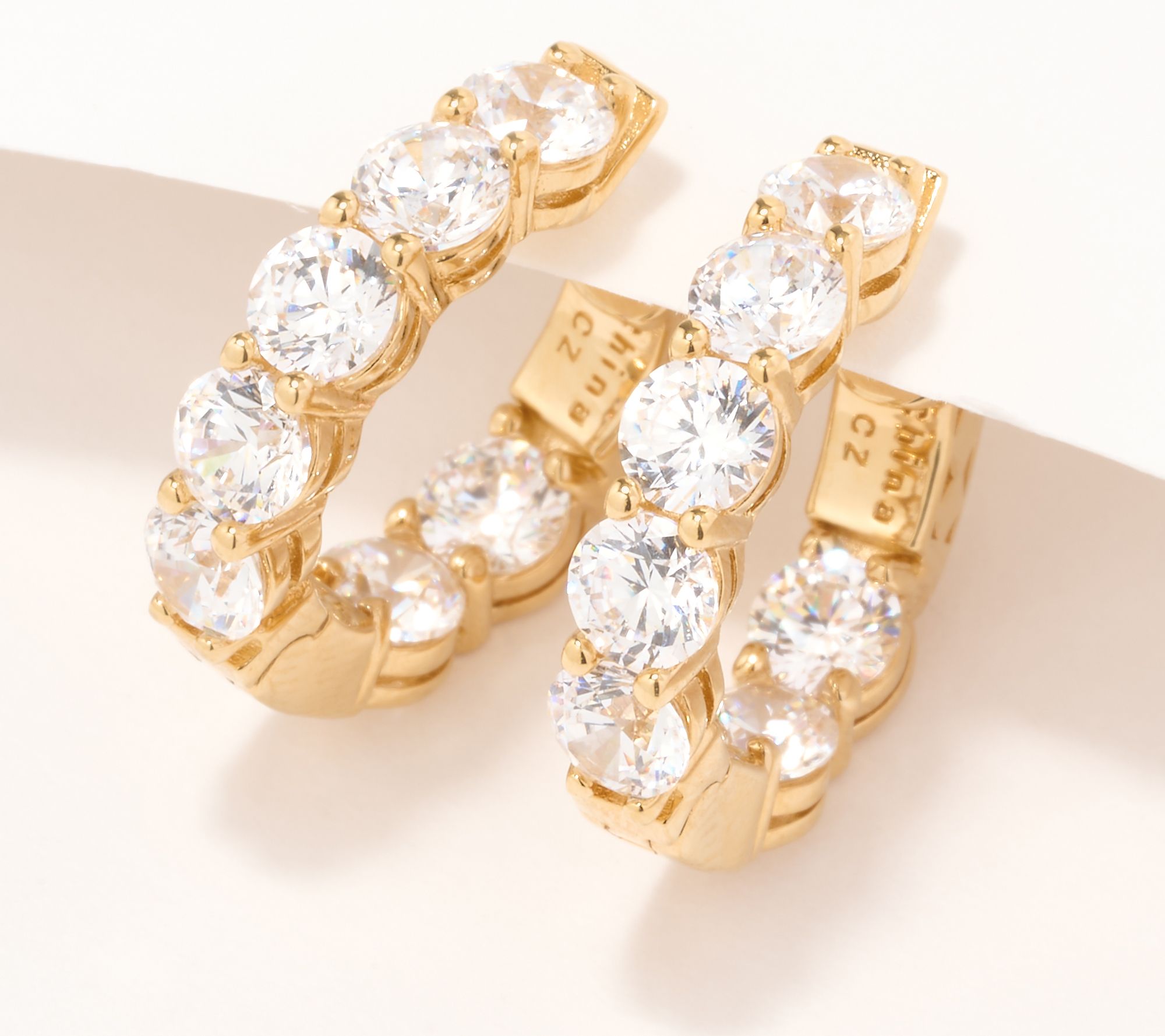 • Huggie hoop style with prong-set, round Diamonique simulated diamonds; polished