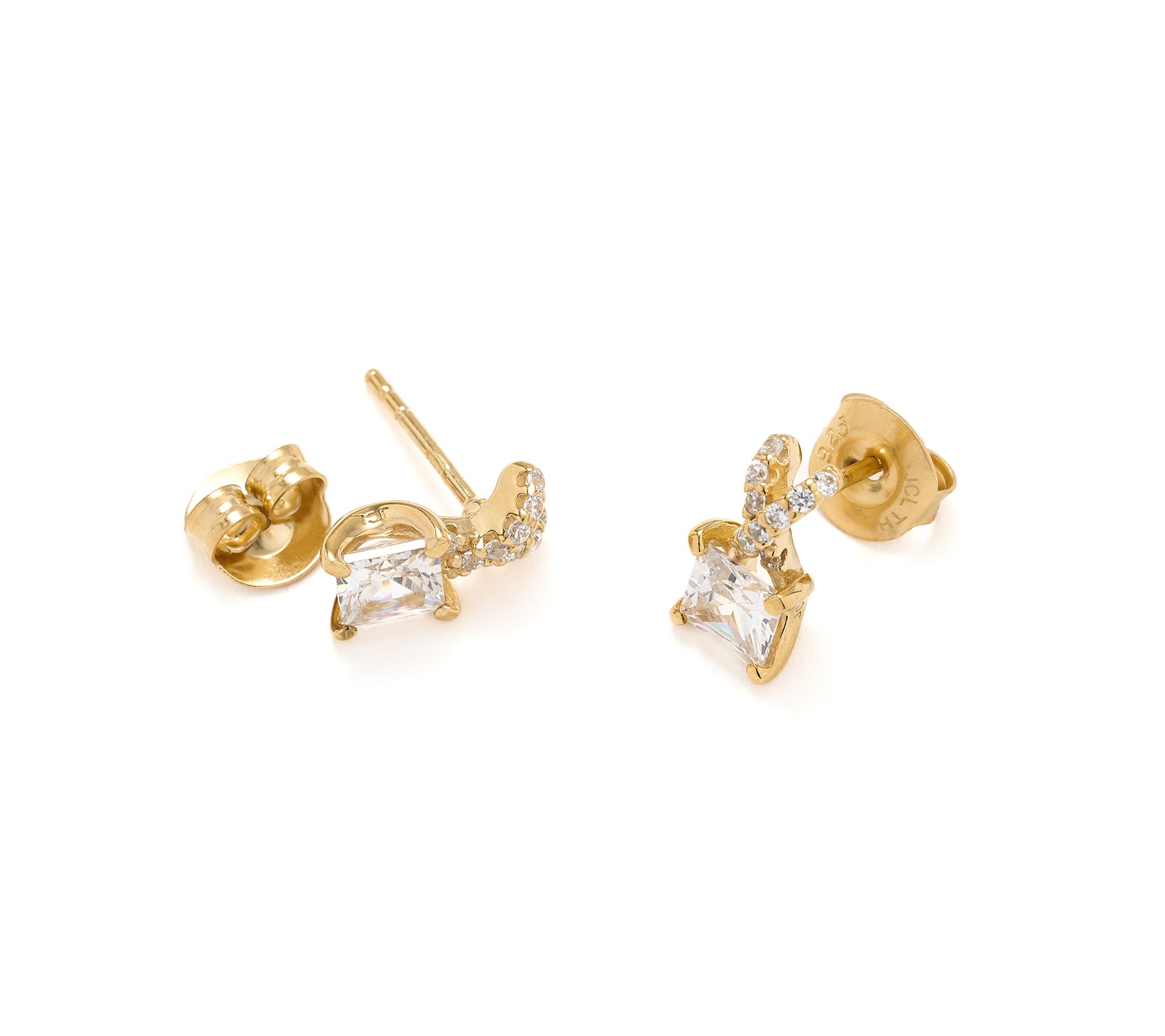 Celebrate your style with these crisscross stud earrings, designed with princess-cut and round Diamonique simulated diamonds for captivating sparkle. The contemporary crossover shape brings dimension to any outfit, easily transitioning from lunch with friends to evenings out.