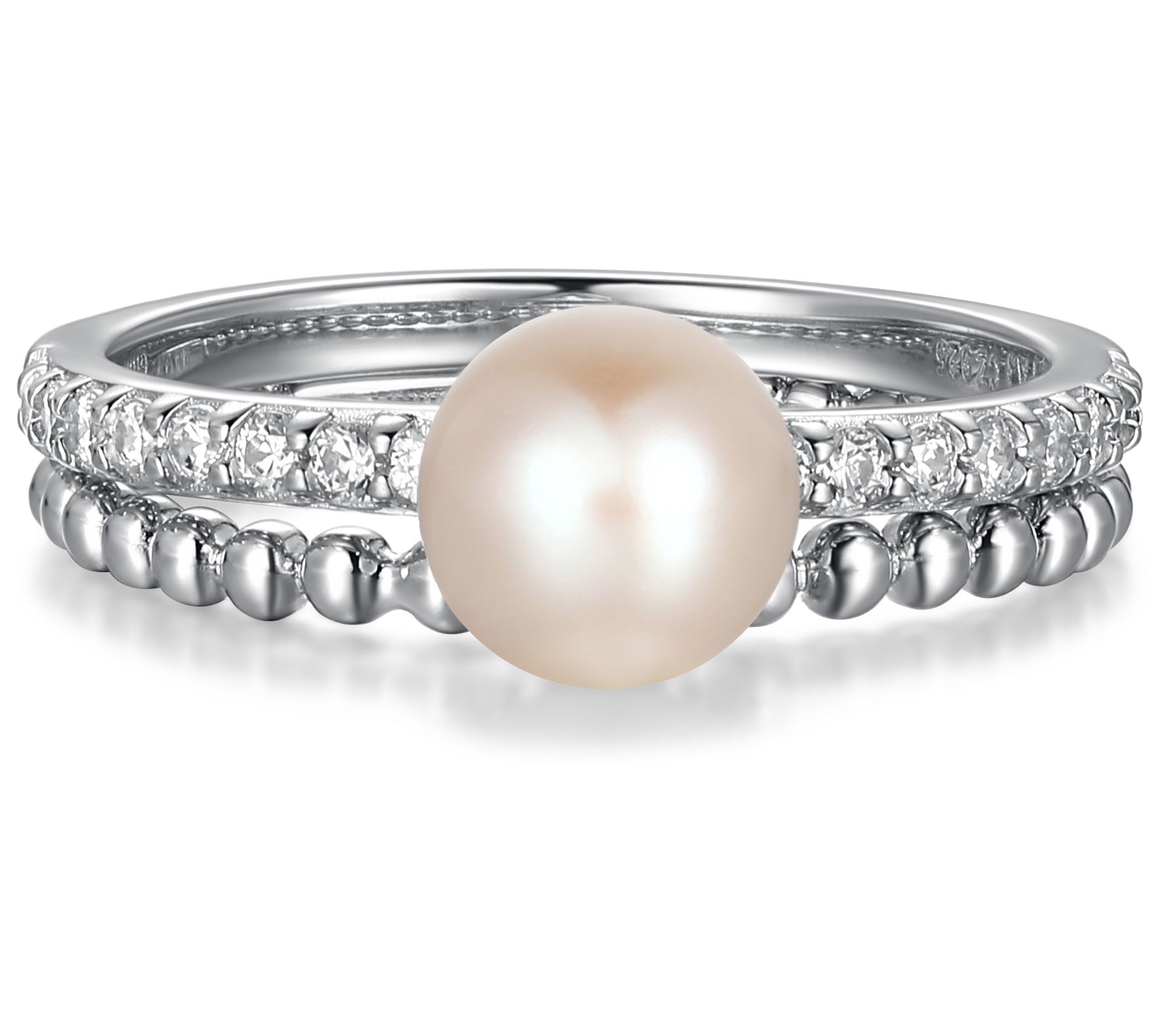 Showcasing a lustrous cultured freshwater pearl accented by shimmering stones and stacked together with a rhodium-plated band, this beautiful set elevates any look from office attire to your little black dress.