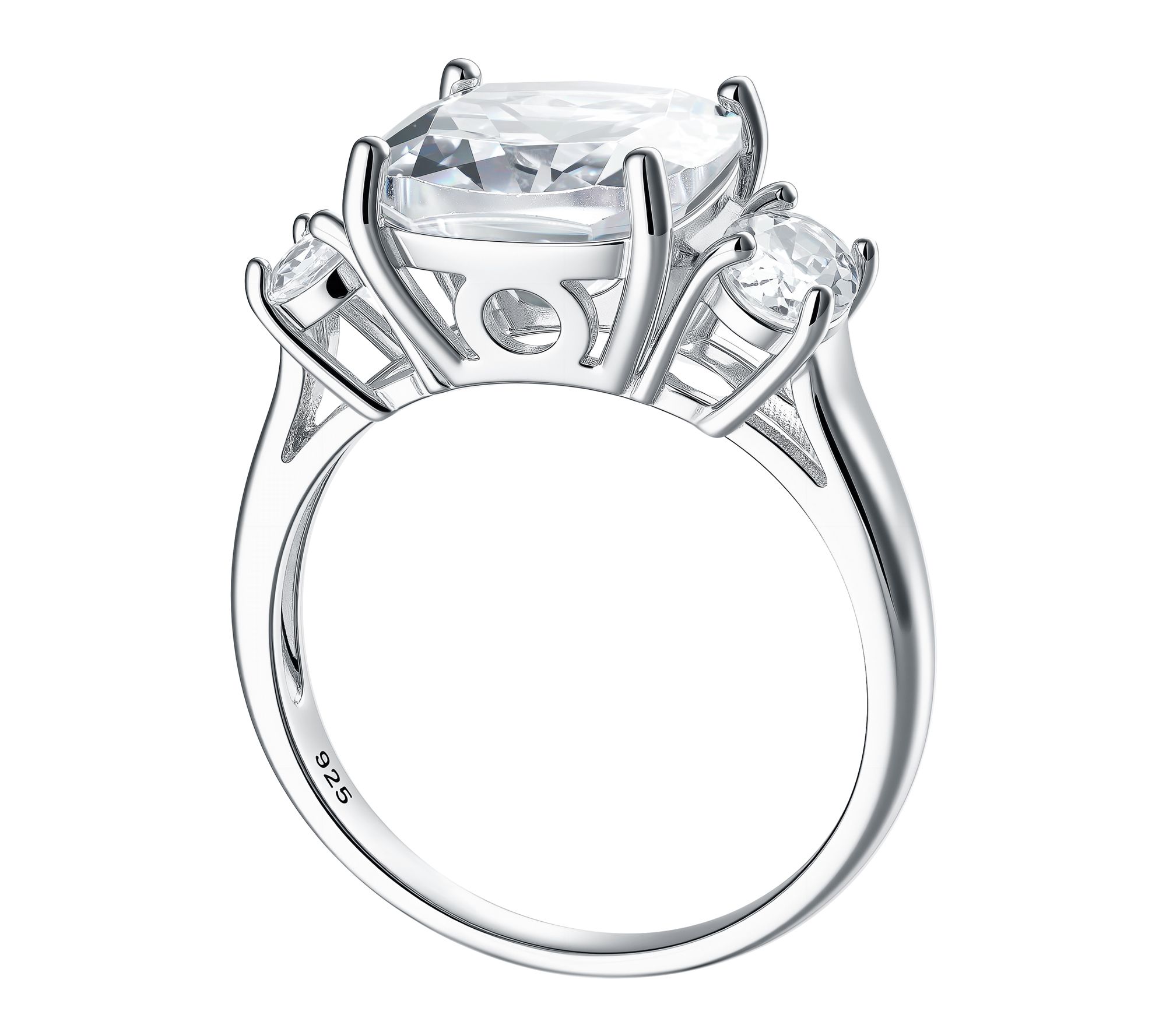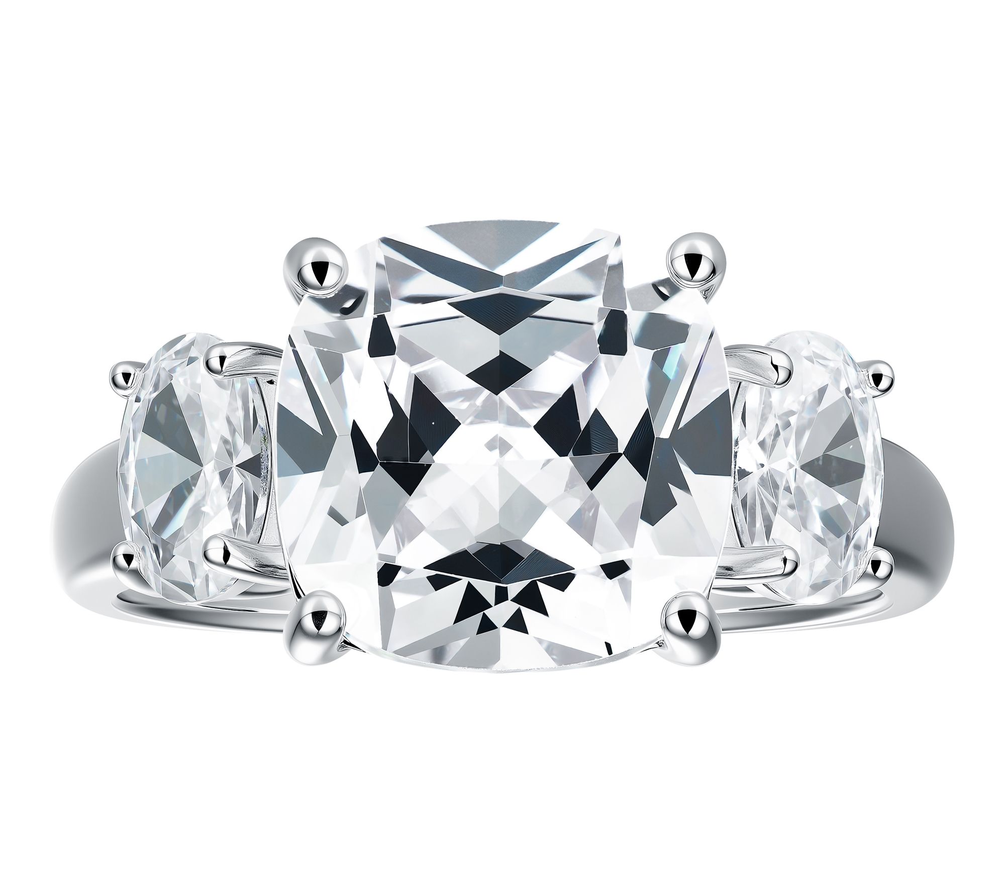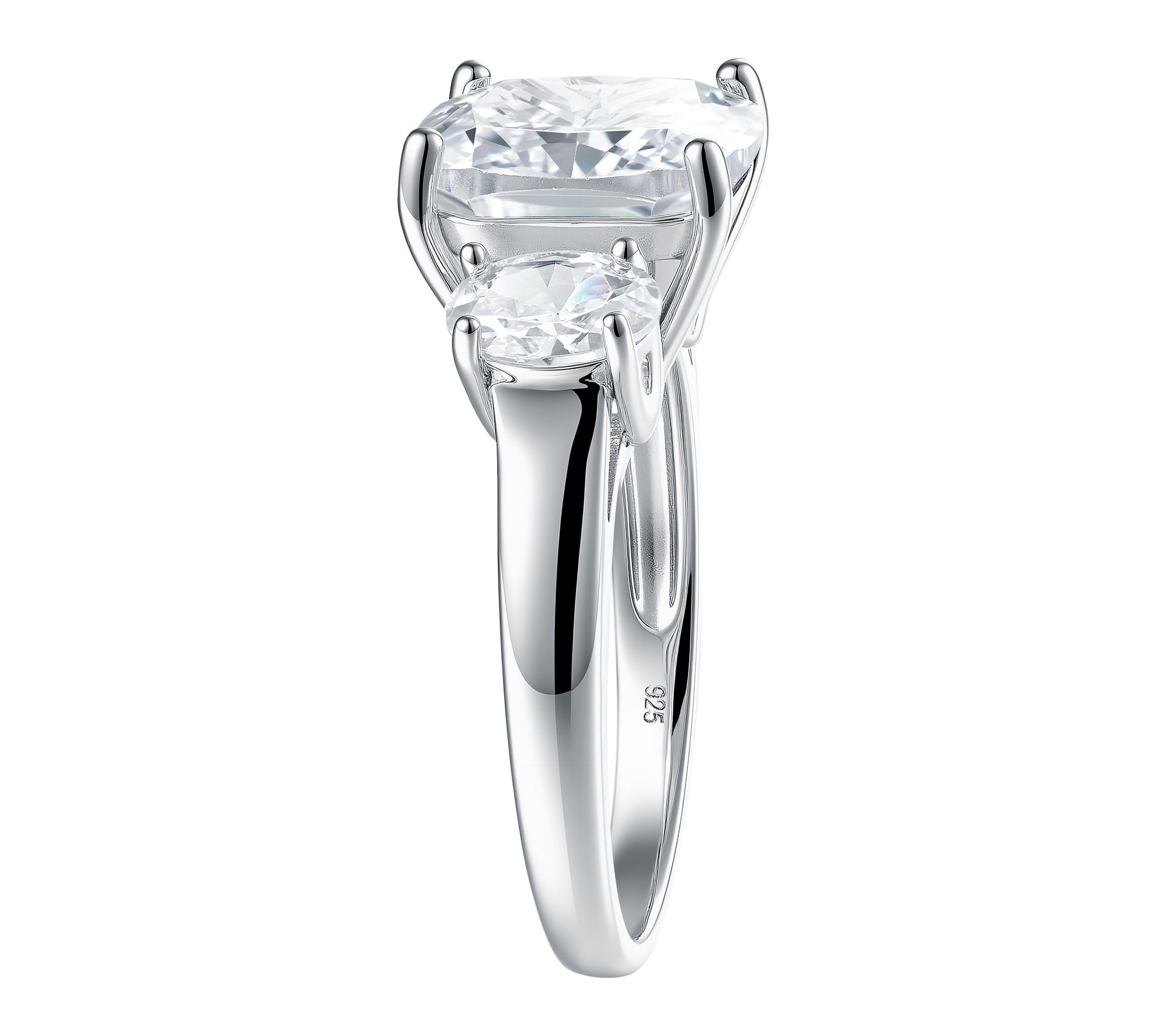 Diamonique Cushion & Oval Cut 3-Stone Ring, Sterling Silver