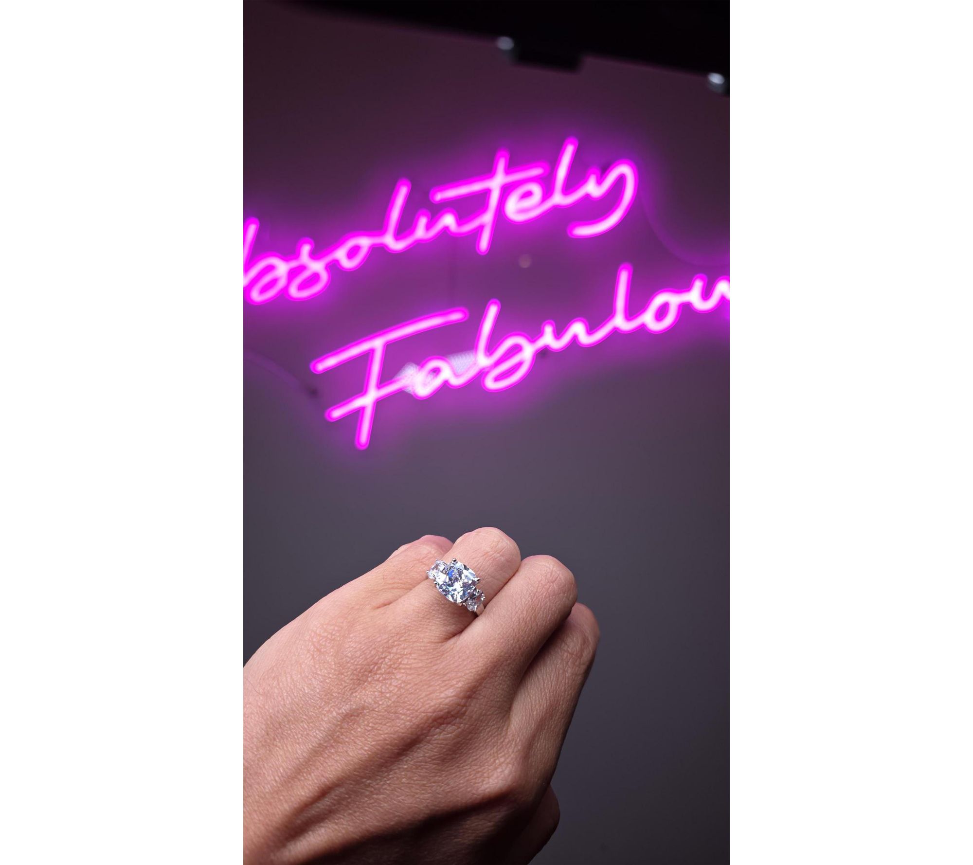 Whether you're headed to a dinner with friends or adding sparkle to your everyday look, this cushion and oval-cut three-stone ring brings a sophisticated glow to every moment. The design creates eye-catching dimension that catches the light beautifully, sure to draw admiration.