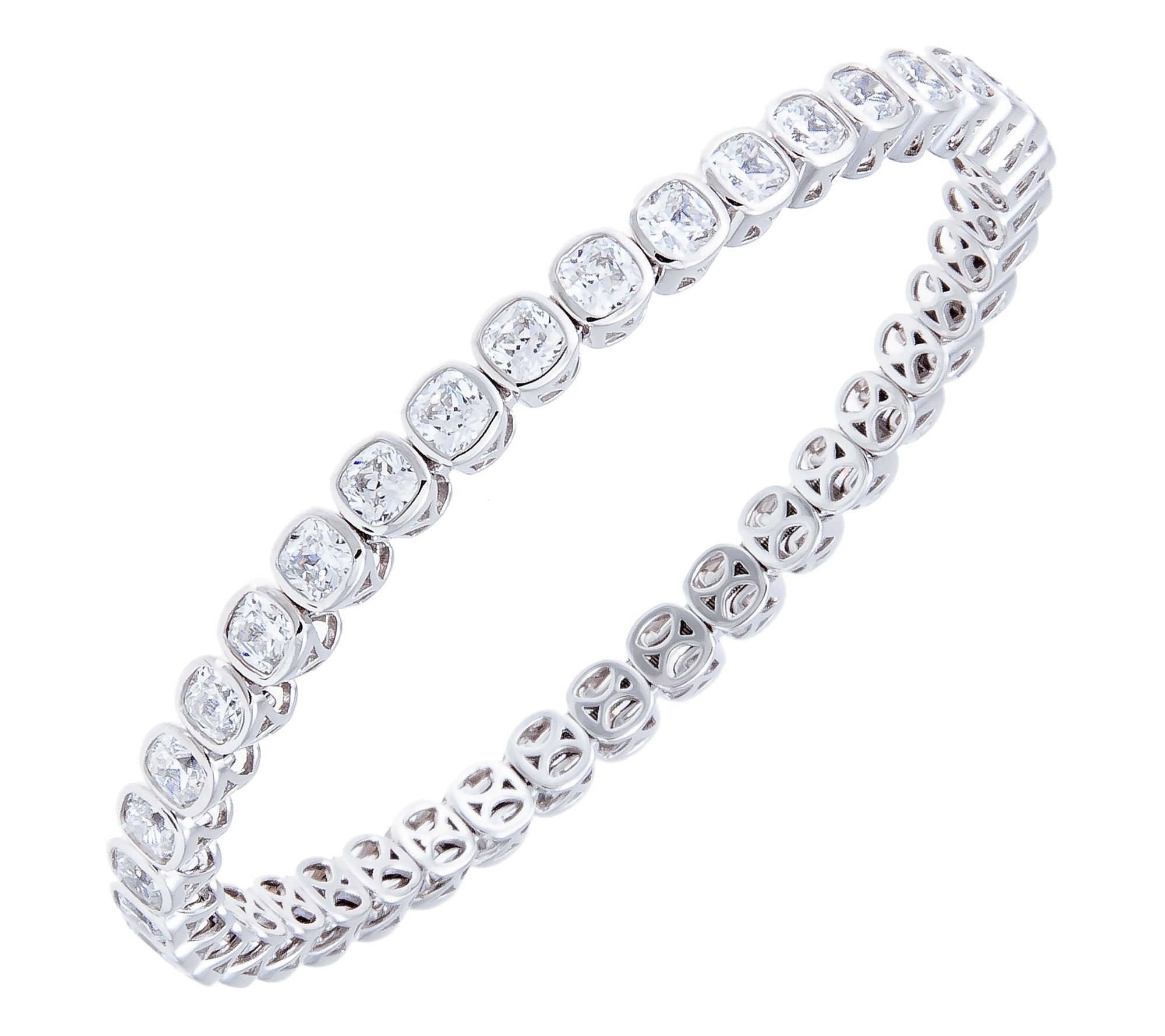 Crafted with elegance, this Diamonique® cushion-cut stretch tennis bracelet adds a brilliant touch to any outfit. Its classic design showcases a series of sparkling bezel-set Diamonique simulated diamonds, making it the ideal accessory for both casual and formal looks. Whether you’re heading to a special event or a casual brunch, this piece promises to dazzle.