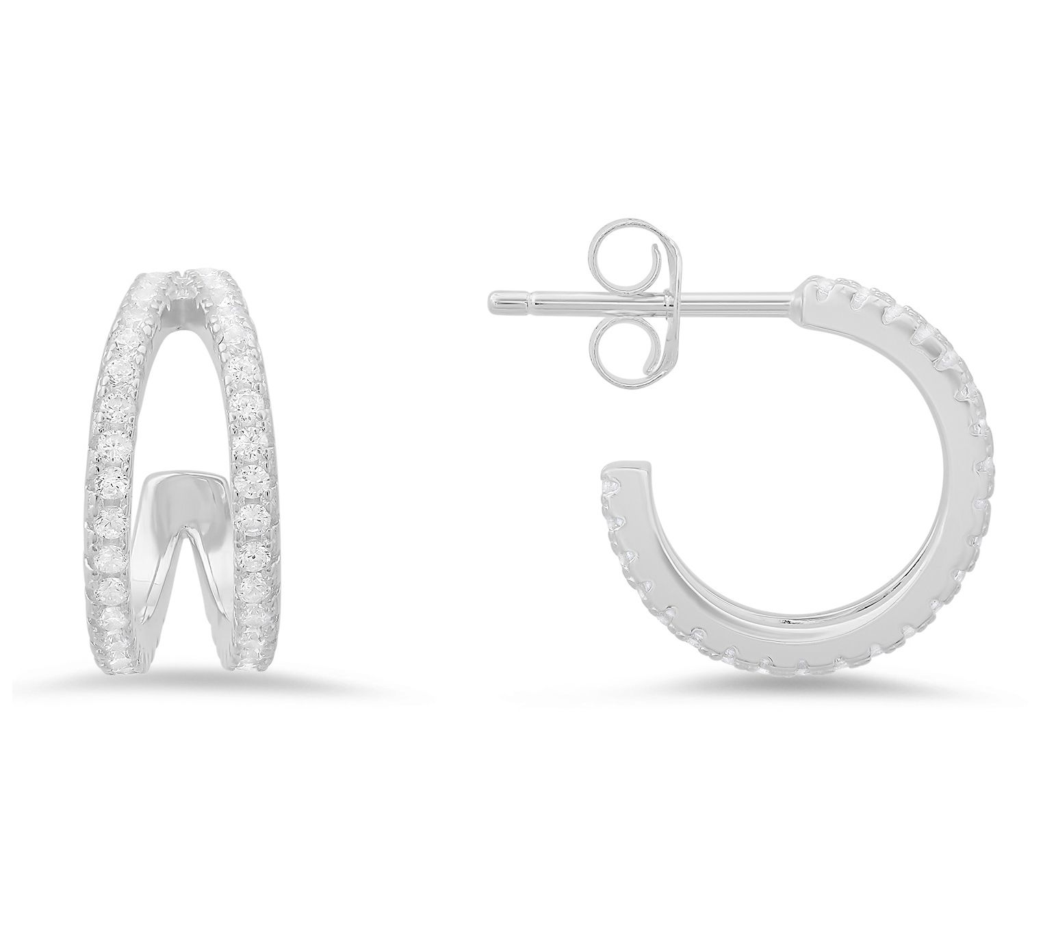 These double-curve hoop earrings feature a unique design adorned with sparkling Diamonique simulated diamonds that catch the light beautifully.