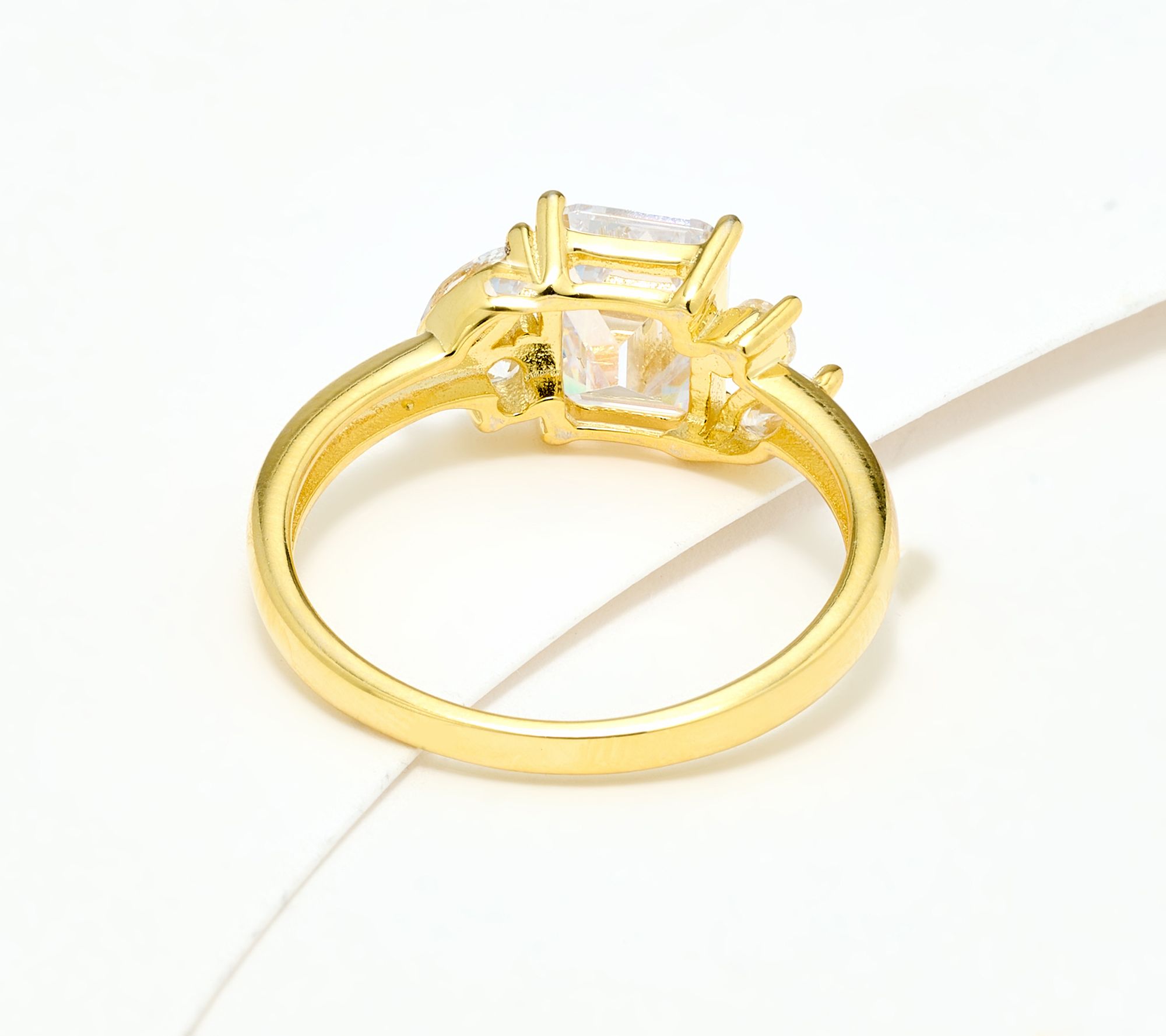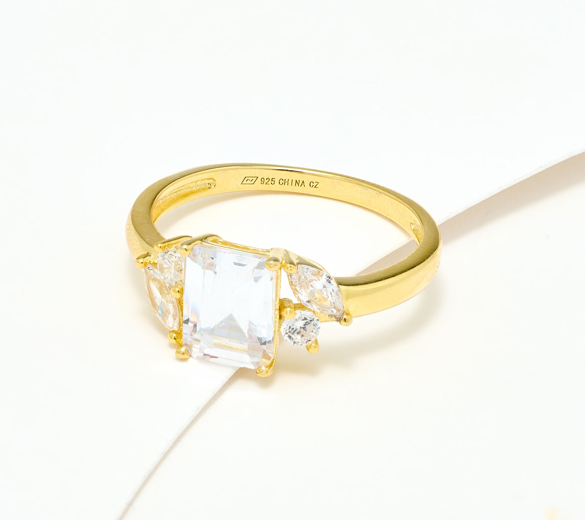 Center emerald-cut Diamonique simulated diamond; round and marquise-cut Diamonique simulated diamonds on both sides