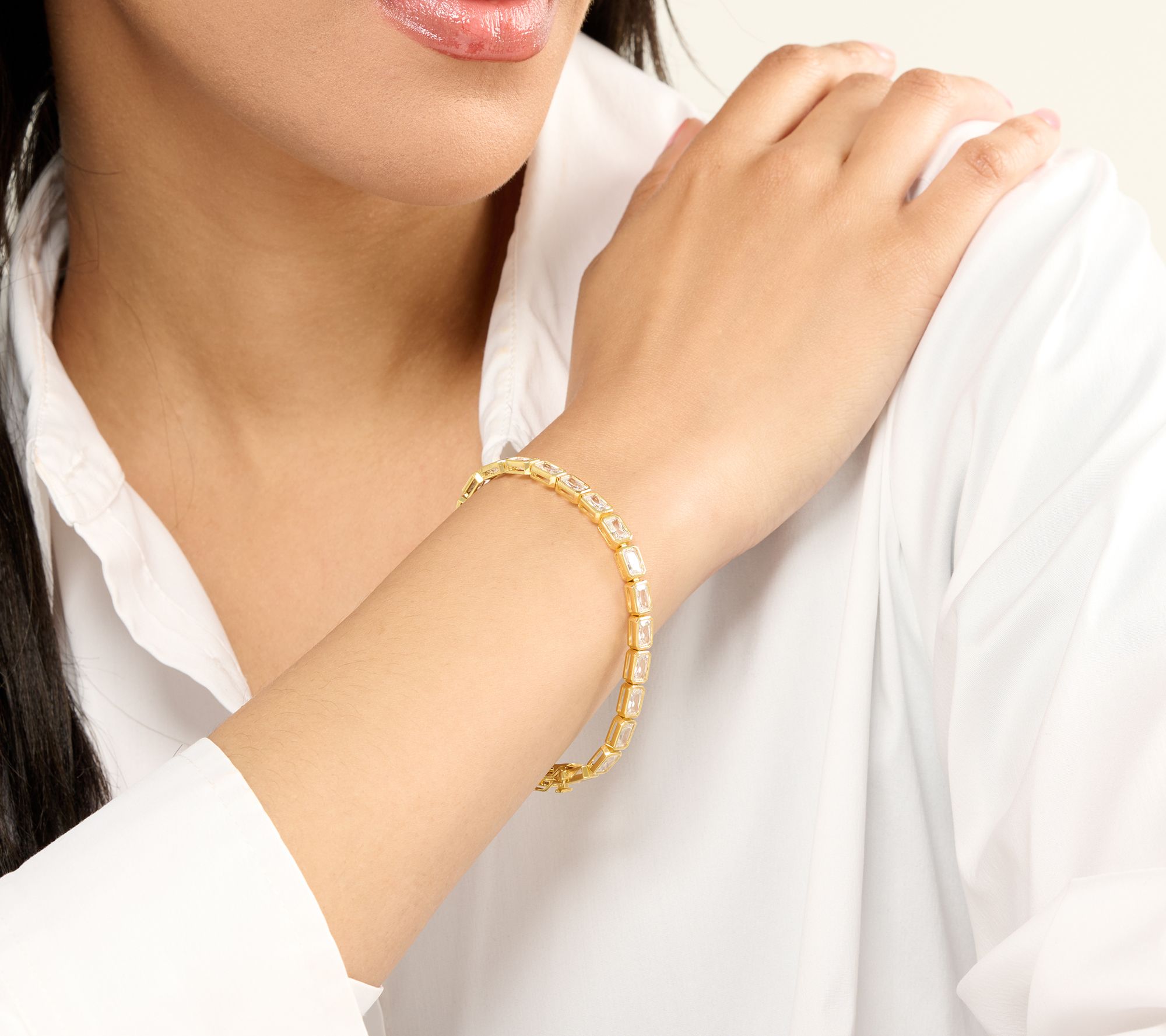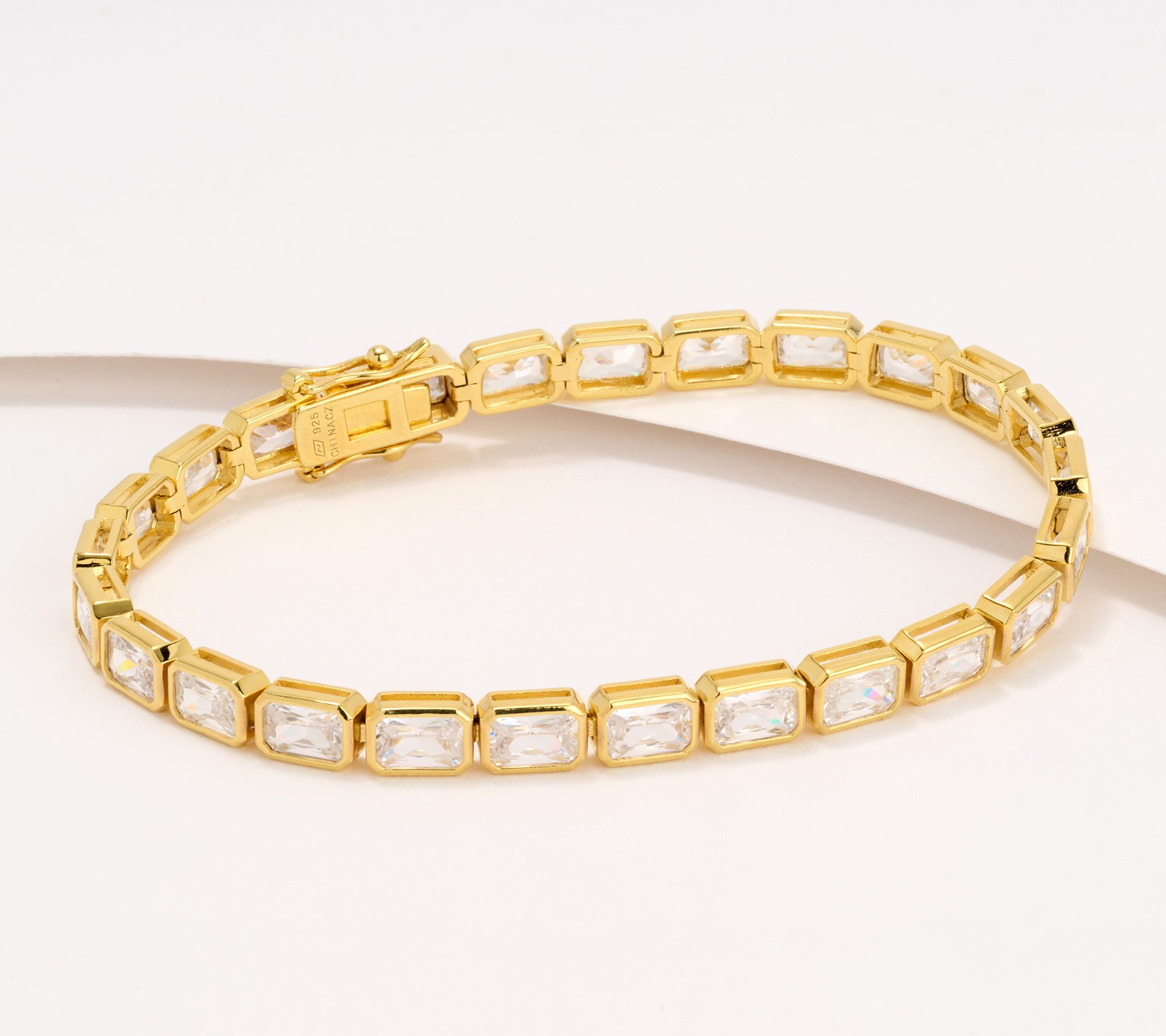 Go for a bolder tennis bracelet this time around. Boasting a more modern bezel-set design, this sought-after style showcases emerald-cut cubic zirconia Diamonique simulated diamonds for a definitely wow-worthy look.