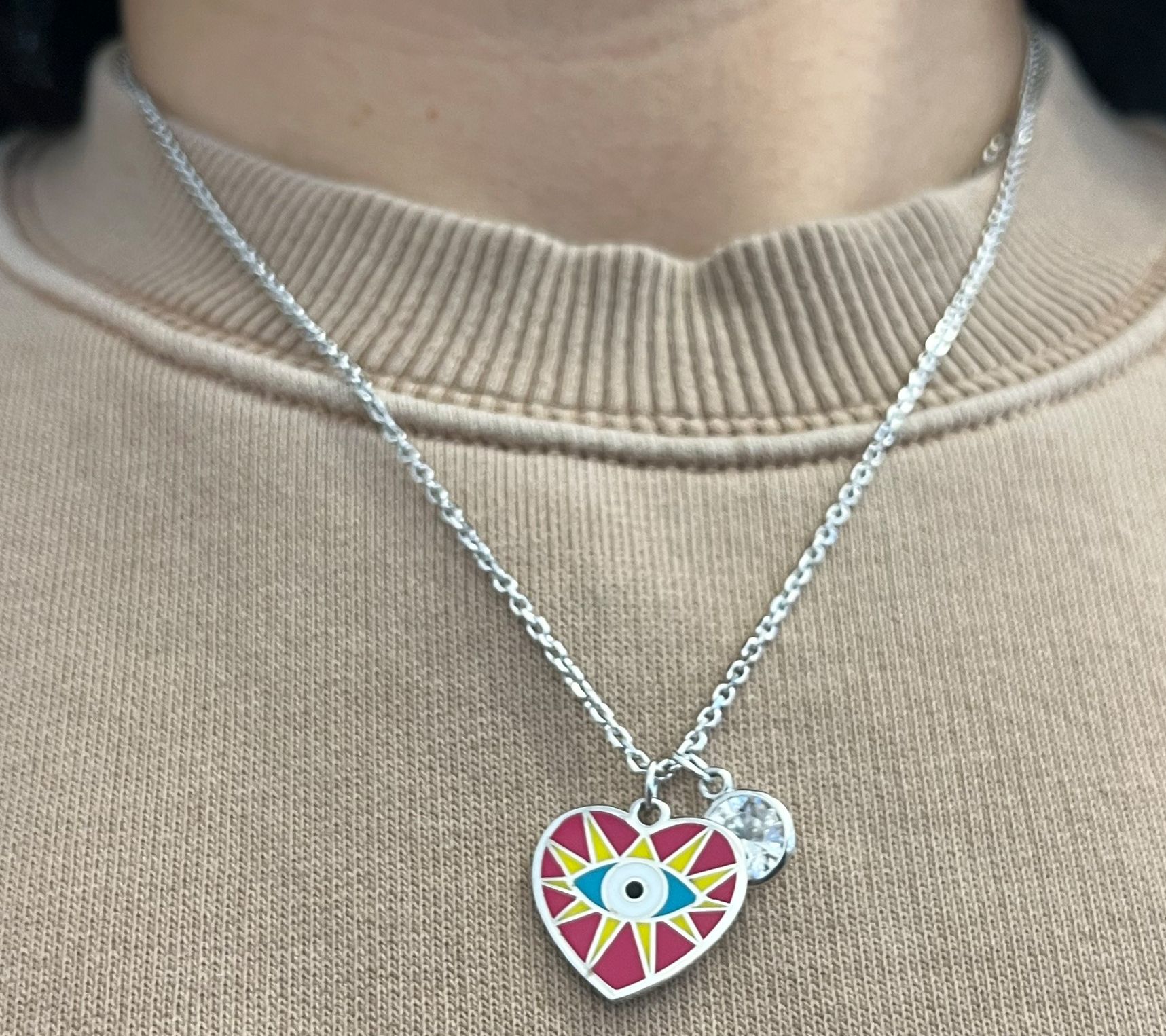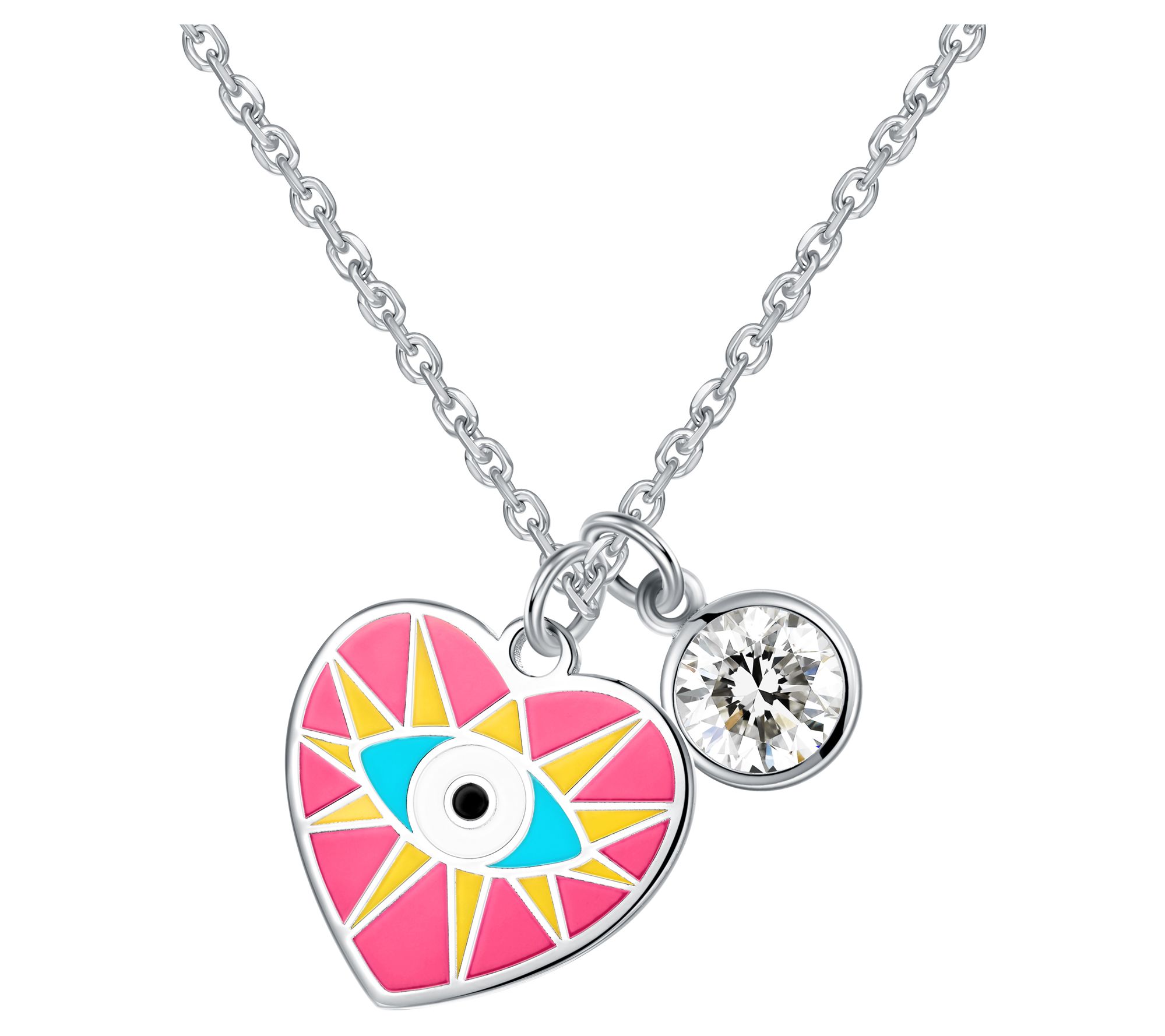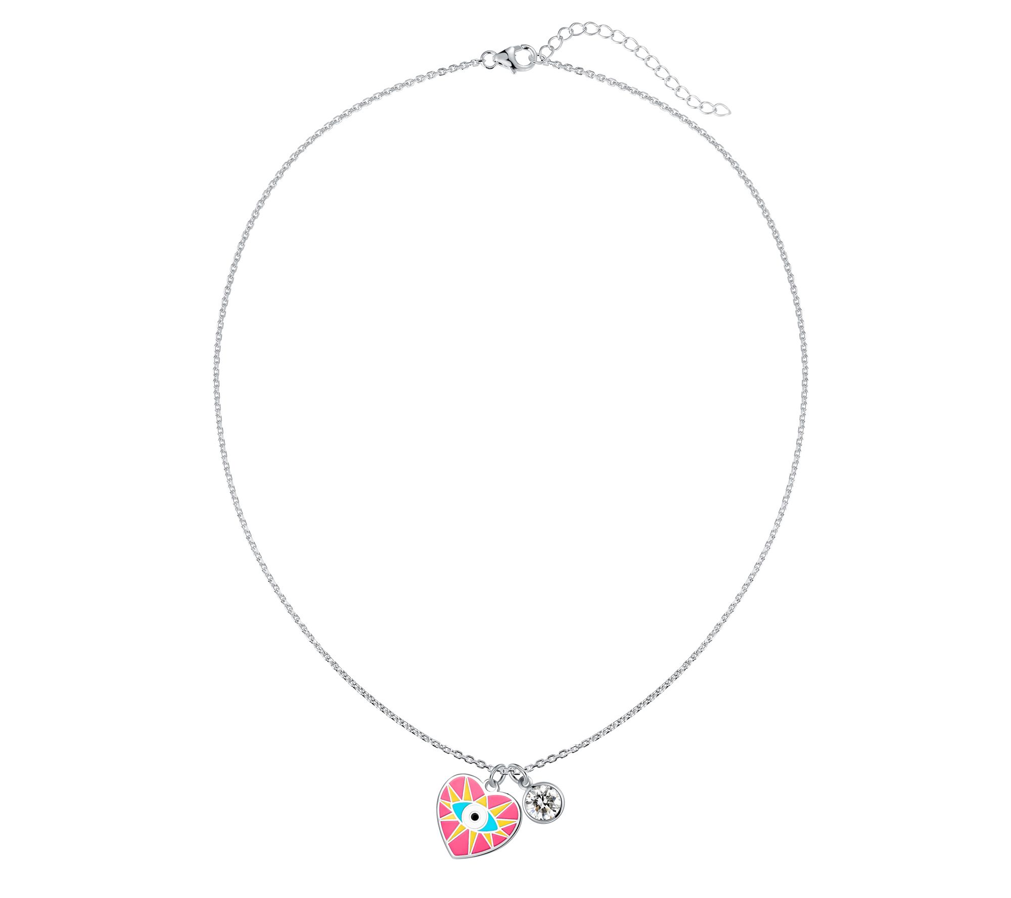 Everyday magic comes alive with this charming evil eye pendant, a symbol of protection and style. Crafted with exquisite detail, the enamel design is kissed by a round-cut, bezel-set Diamonique simulated diamond. Its sterling silver rolo chain fits perfectly with any outfit, thanks to its adjustable length. Perfect for layering or as a standalone piece, this necklace adds a meaningful touch to your collection.