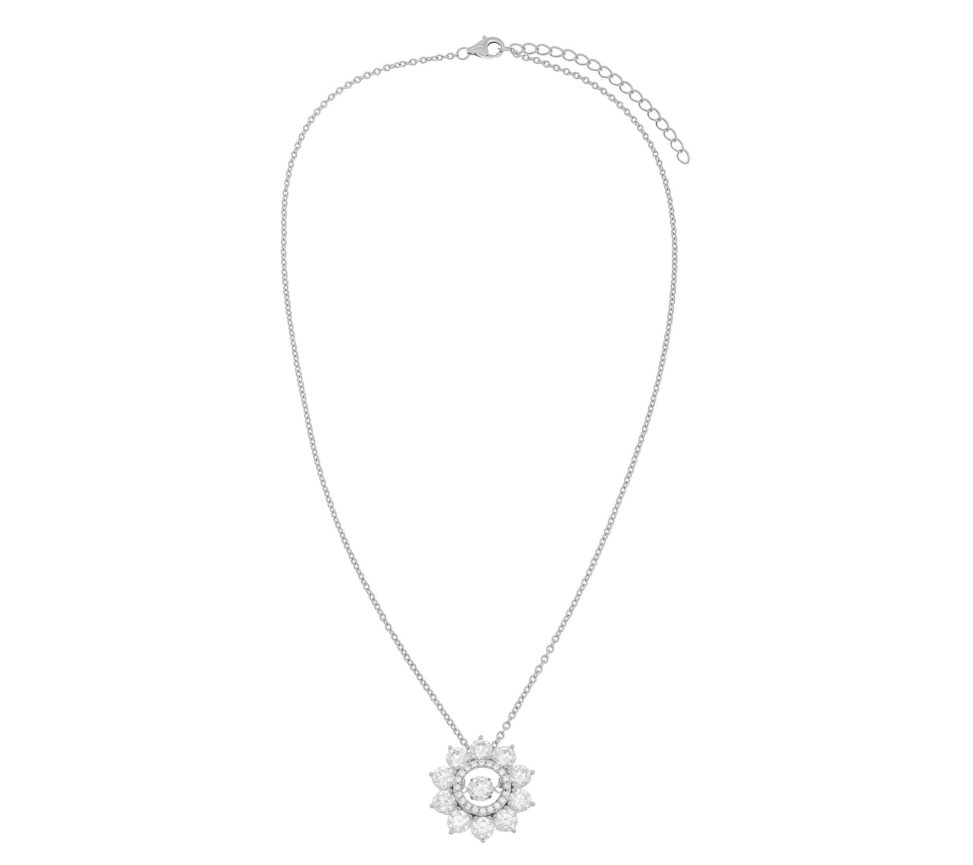 Diamonique Floral Dancing Pendant w/ Chain, Sterling Silver