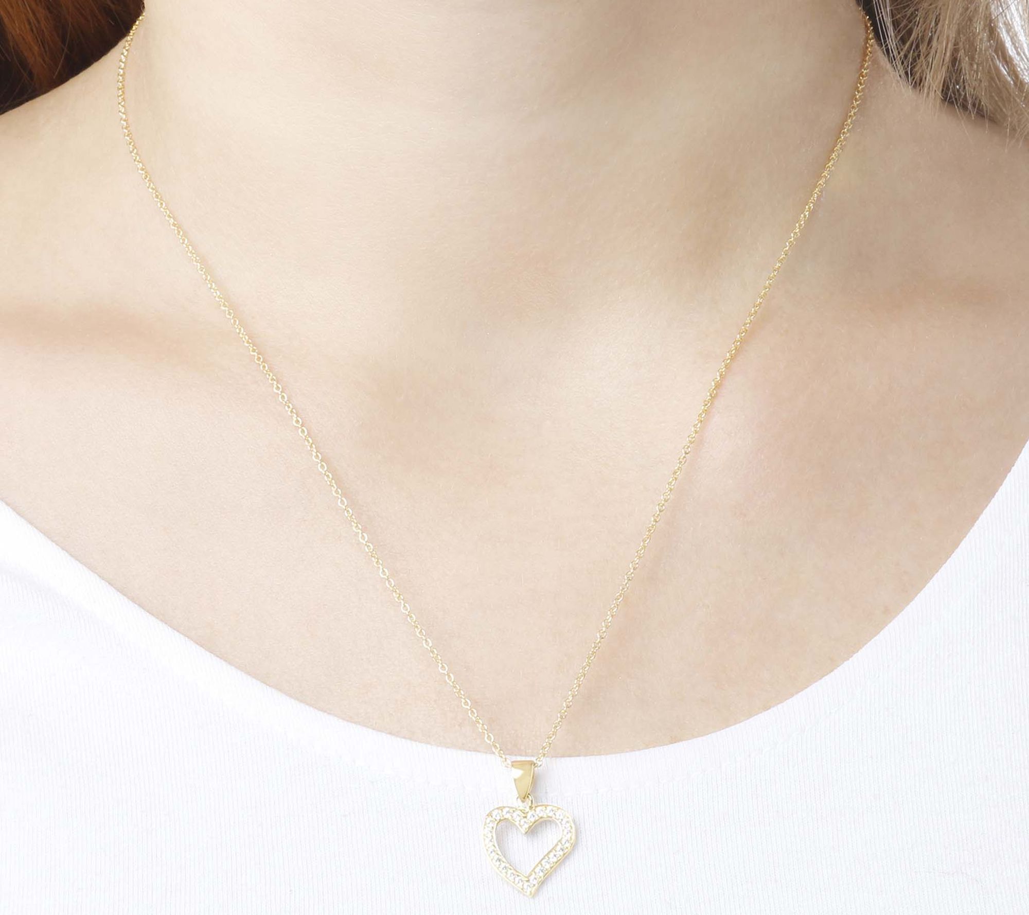 Classic romance meets modern flair in this pretty pendant and chain set. The open-heart pendant gleams with the brilliance of cubic zirconia Diamonique simulated diamonds and hangs beautifully from a rolo-link chain.