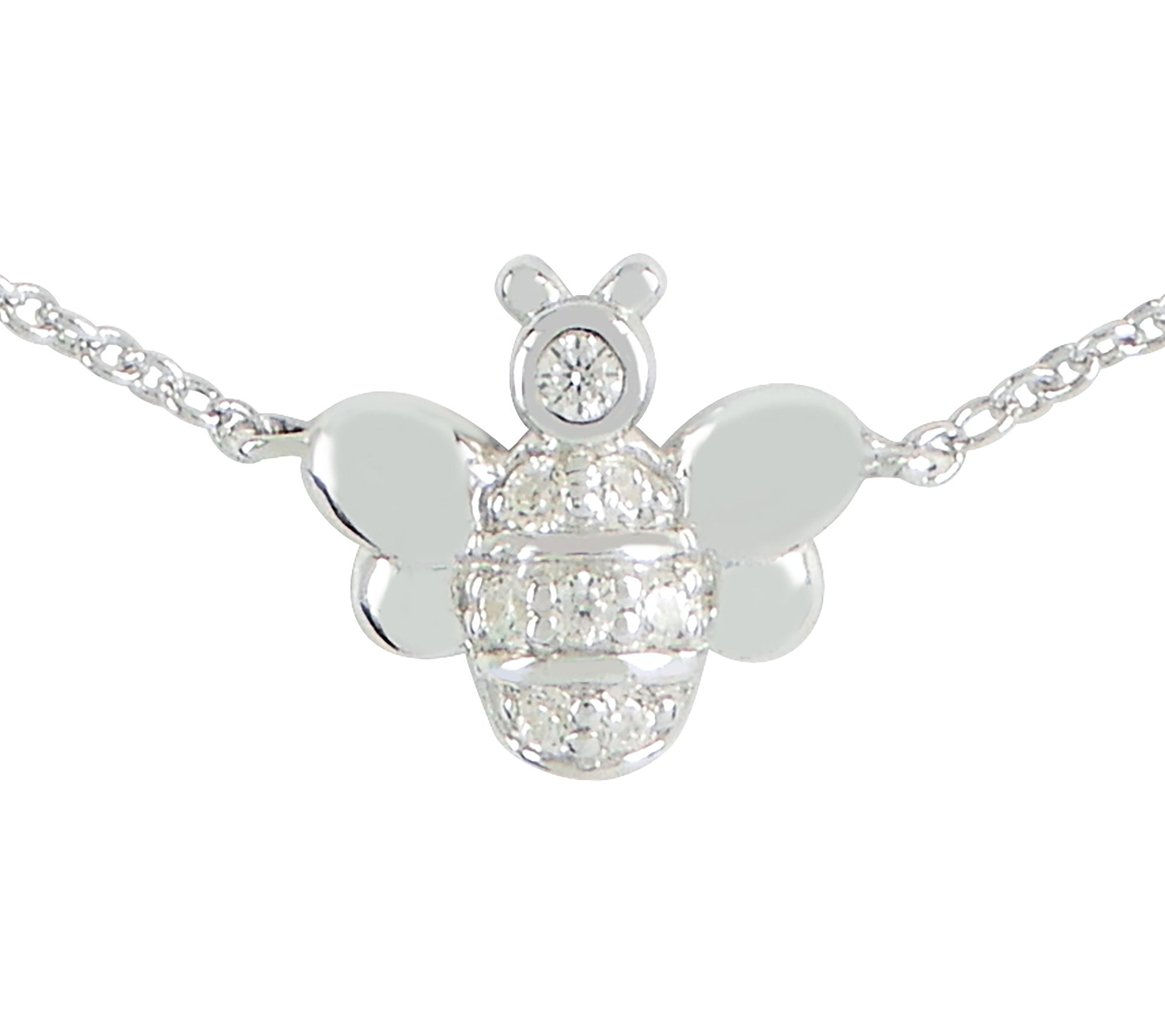 • Honey bee design with pave-set and bezel-set, round Diamonique simulated diamonds; rhodium plating; polished finish