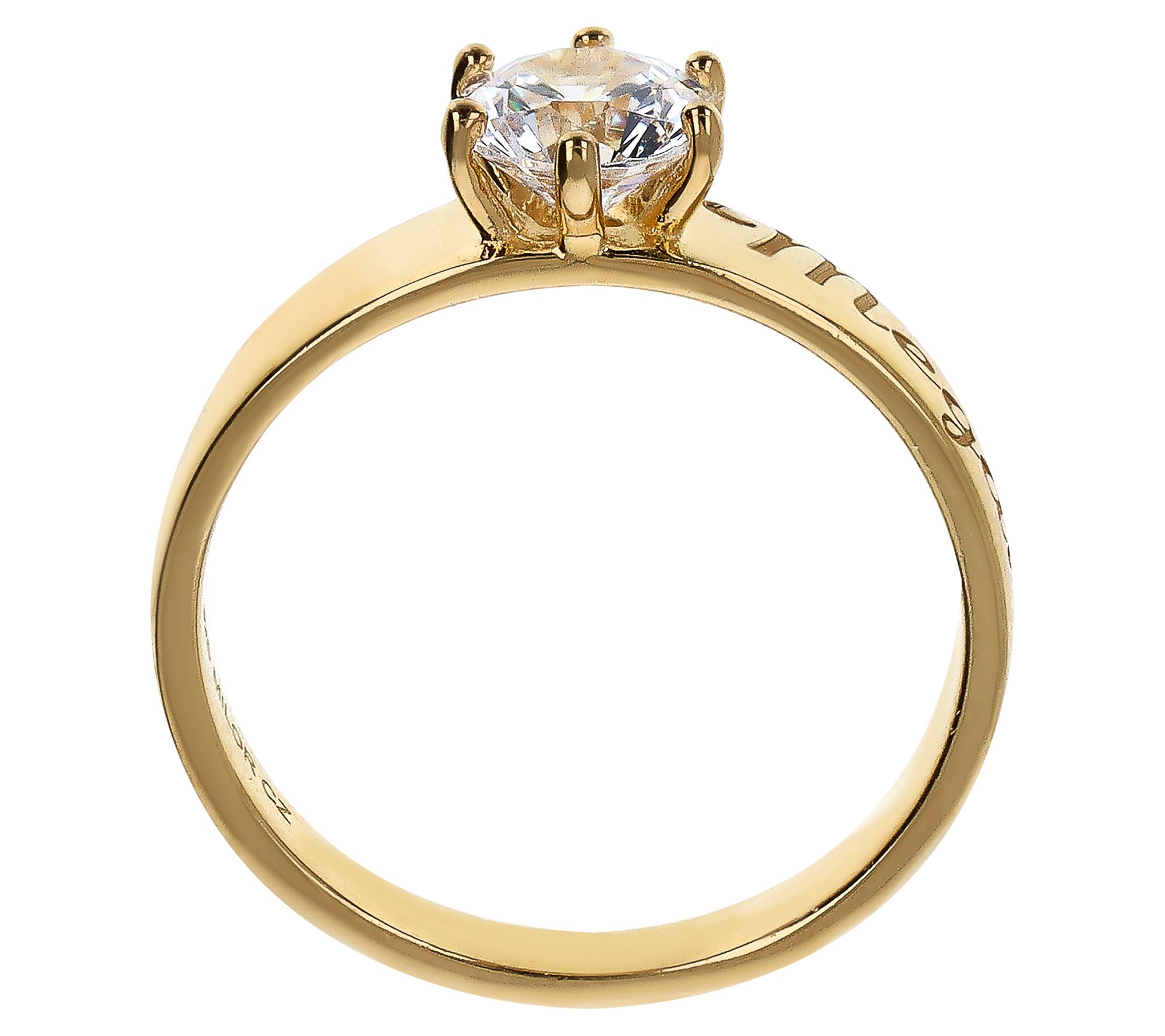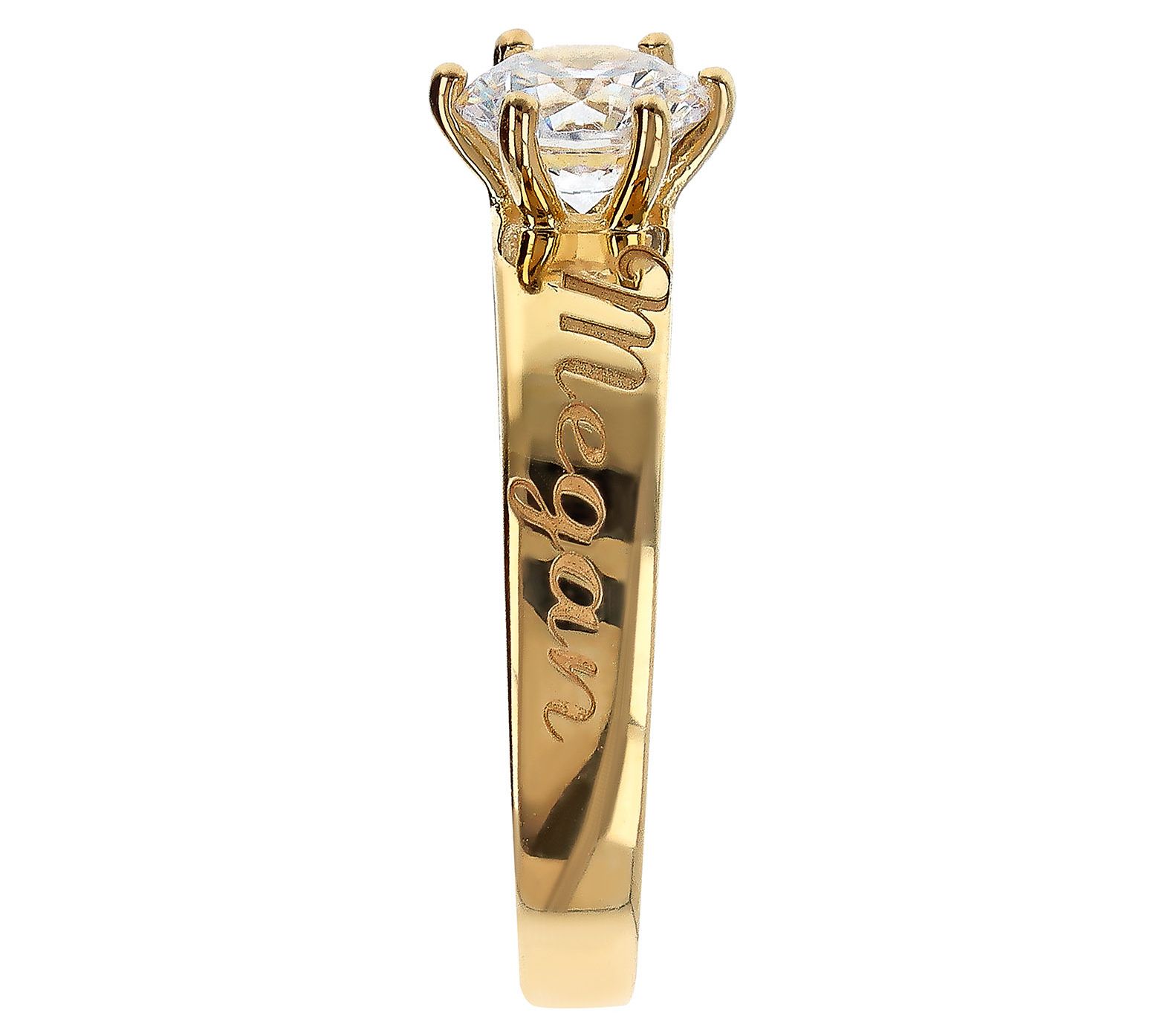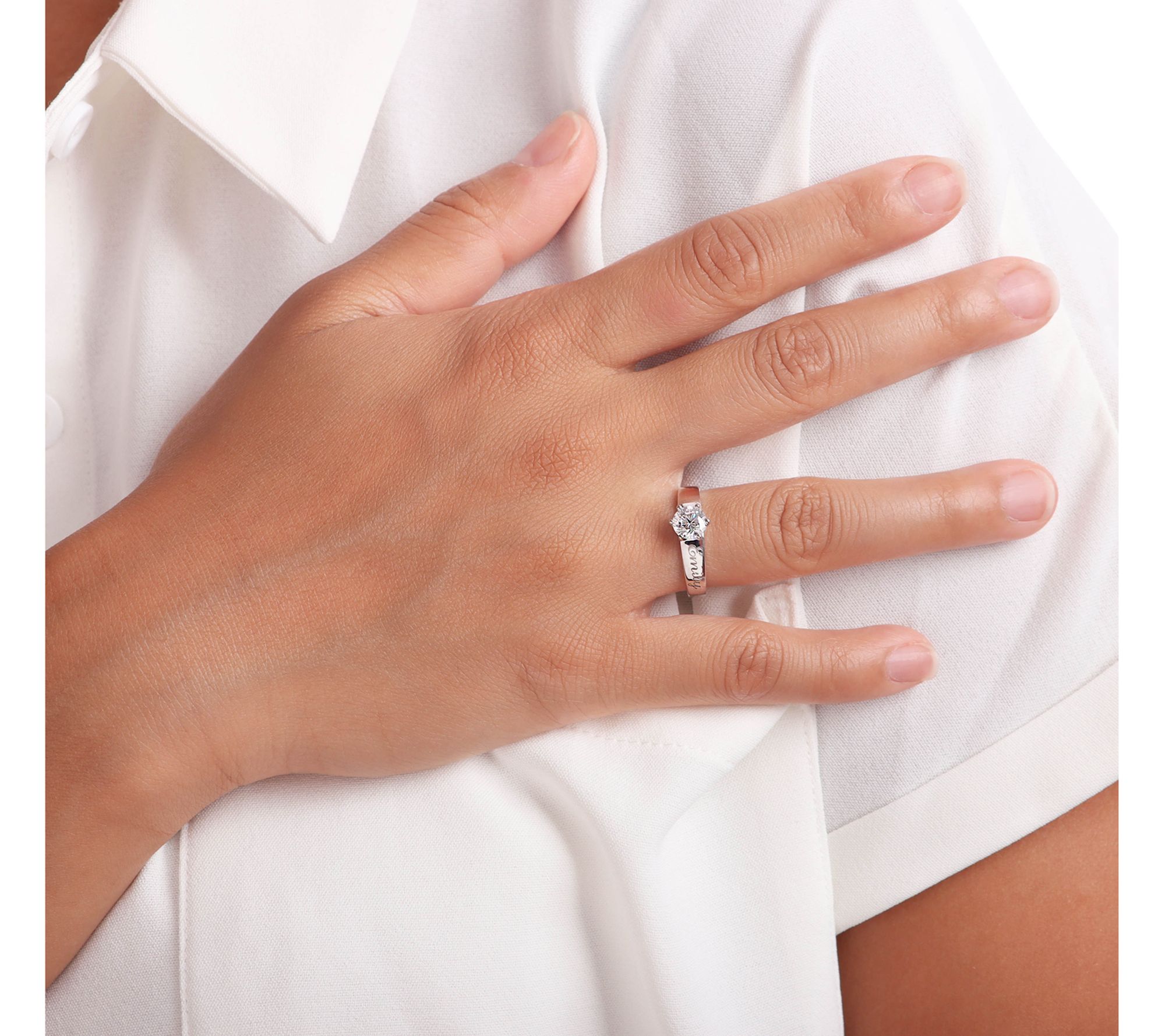 Show that special someone you care with this solitaire ring. A round Diamonique simulated diamond sits in the center adding a touch of elegance to any ensemble. Personalize this stunner with a name or word up to 12 letters long and make this gift into a memorable keepsake.