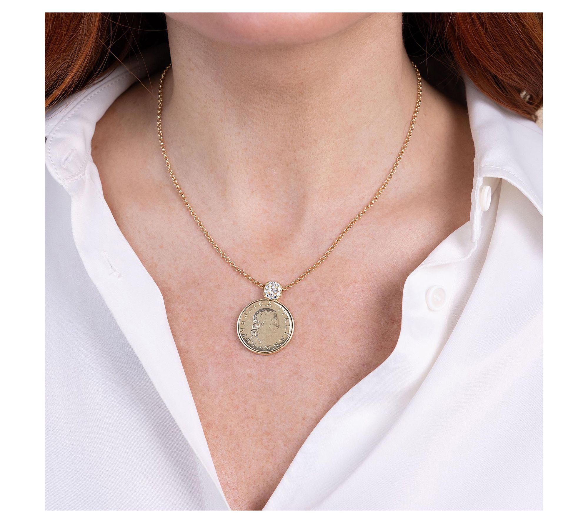 • 200 lire coin pendant; round Diamonique simulated diamonds on top design at the center top of coin holder
