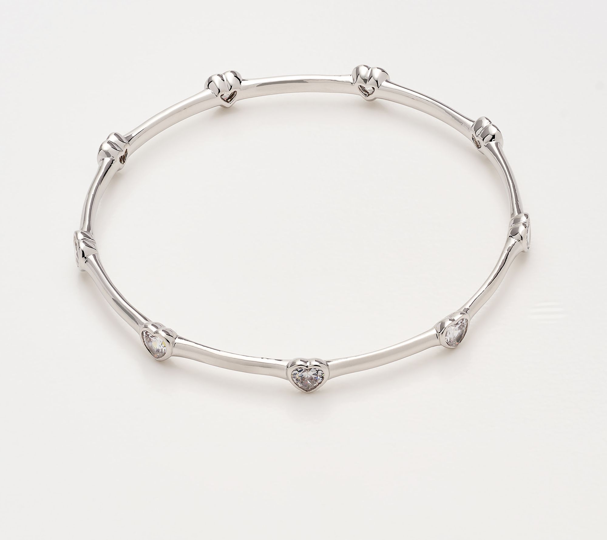 Shimmering with heart-shaped Diamonique simulated diamonds, this emotional bangle bracelet adds an expressive accent to your jewelry collection. Radiant on its own or stacked with your favorites, its polished finish and slip-on style make it an easy go-to for adding sparkle to your every day or brightening up special occasions.