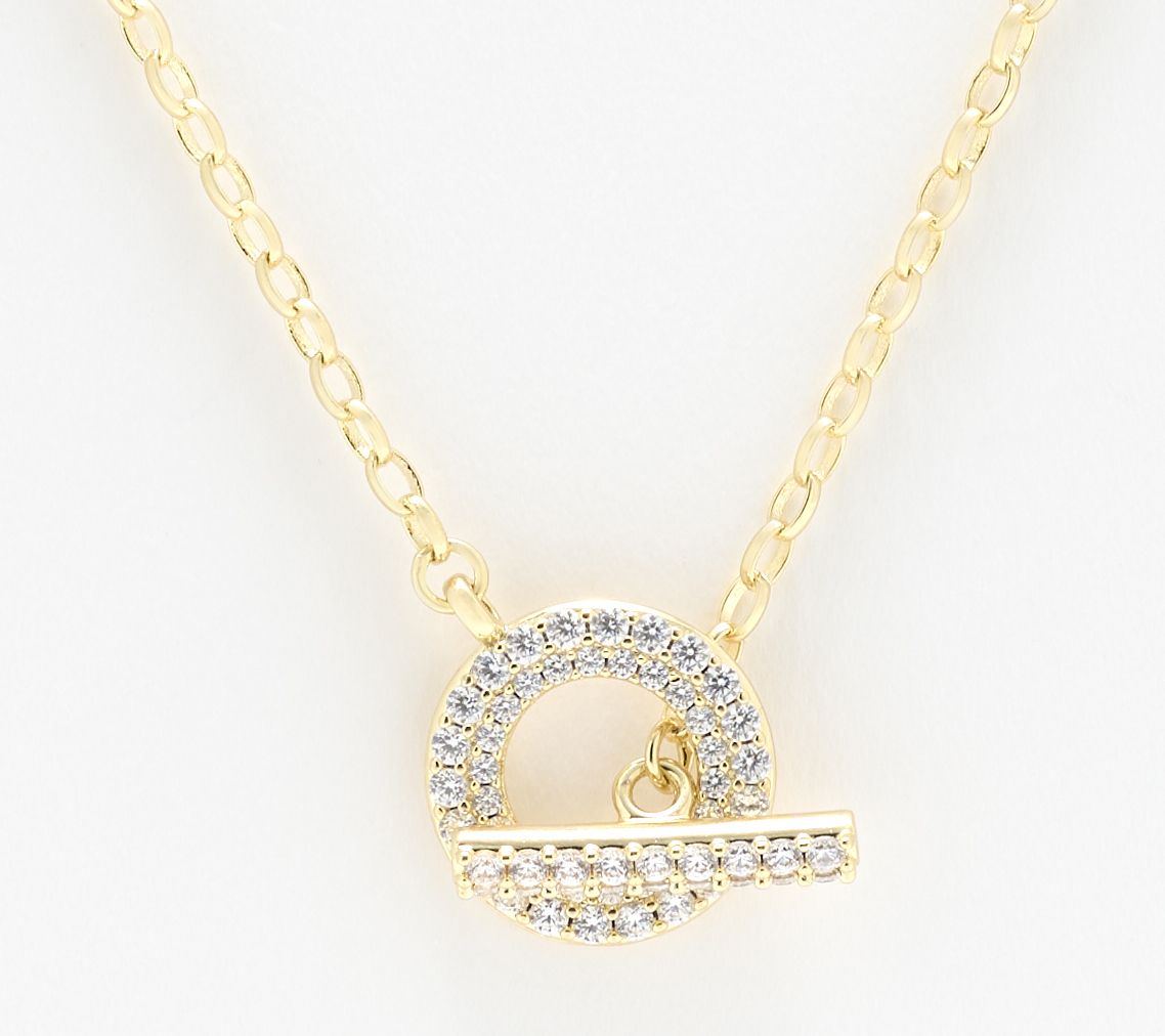 From the Diamonique Italia Bronze Collection comes this polished finish, oval rol chain necklace featuring a toggle clasp closure that boasts round, clear, Diamonique simulated diamonds in a prong setting. Choice of colorways: Rhodium or 18KT Yellow Gold plated Bronze. Measures approximately 18"L x 1/8"W. Total Actual Weight is 1.75 carats; Total Diamond Equivalent Weight is 1.53 carats. Comes Boxed with Pouch and Romance Card. Made in Italy.