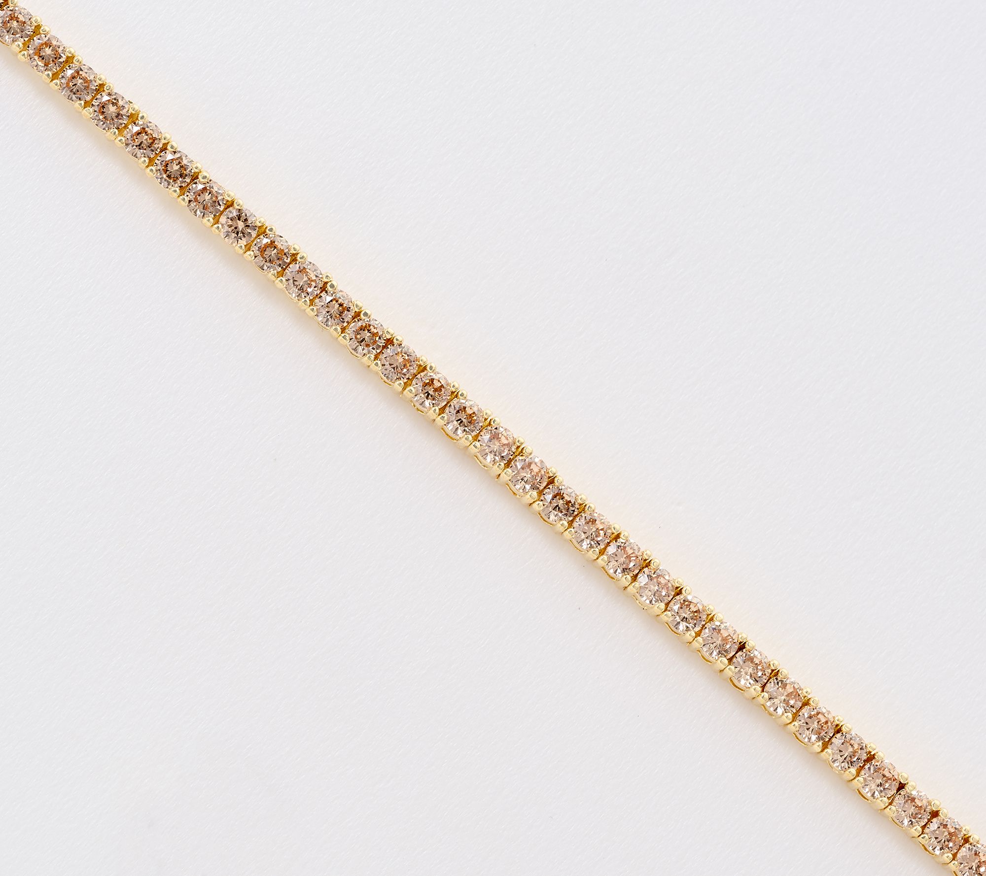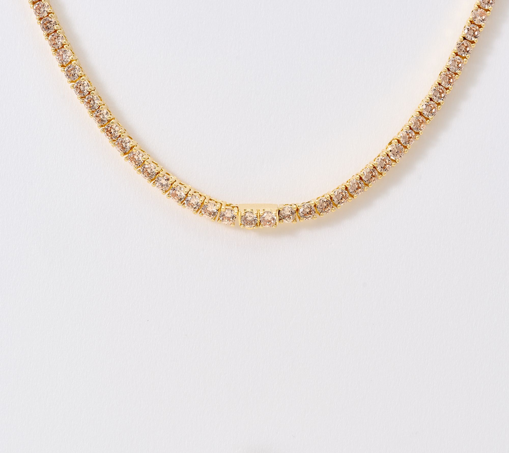 Major wow. Every eye is drawn to the sparkling elegance of this tennis necklace, where champagne Diamonique simulated diamonds create a fresh, sophisticated statement -- ideal for adding color and shimmer to both daytime and evening looks.