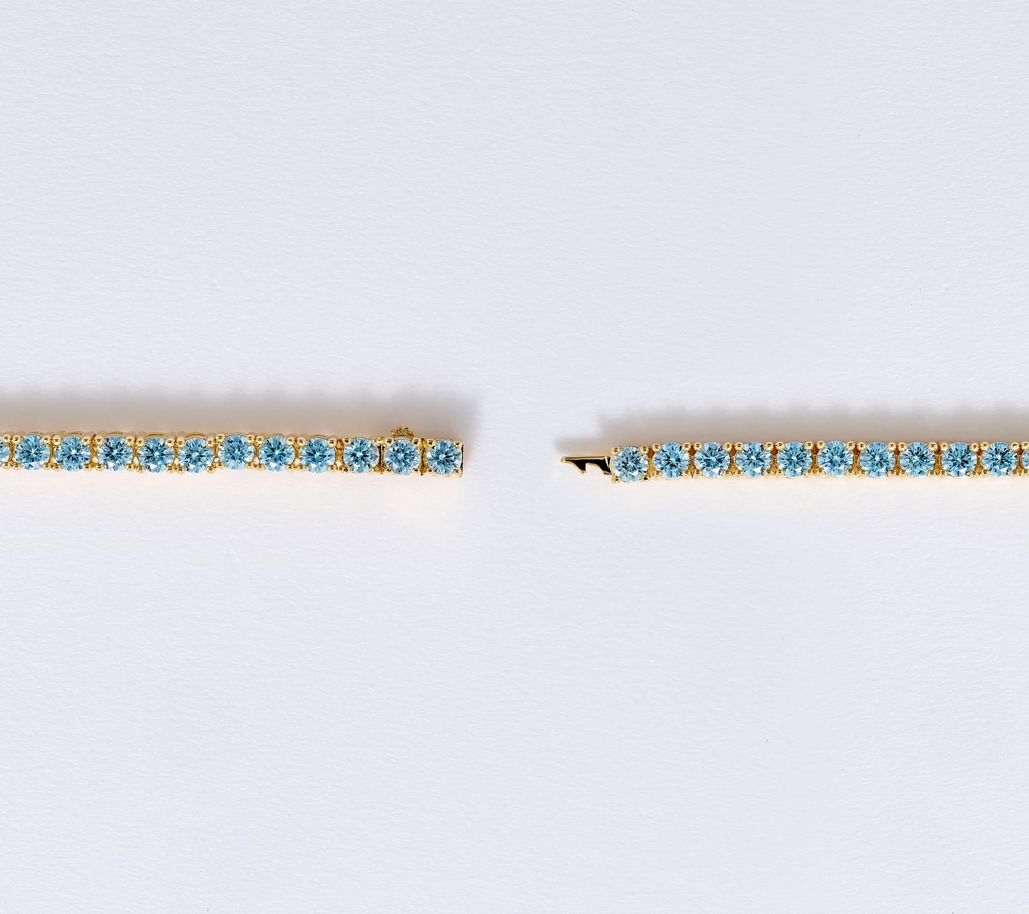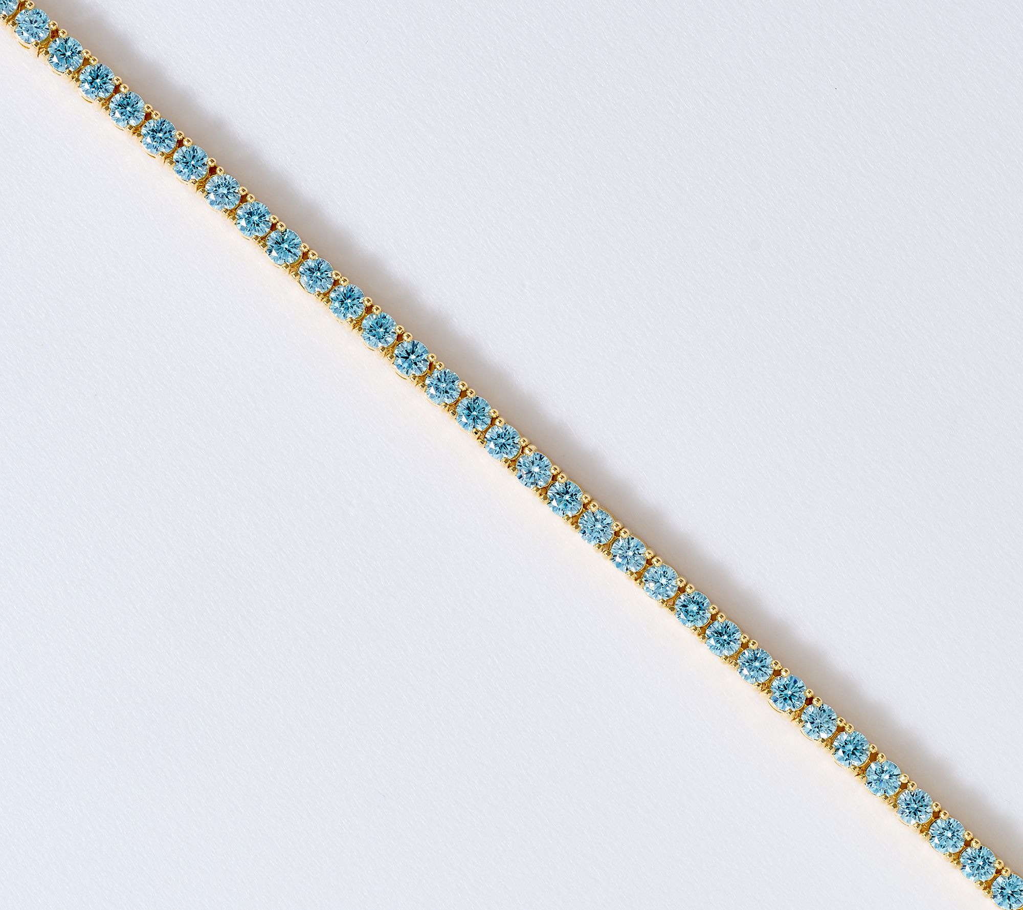 Tennis bracelet design; prong-set, round light blue color Diamonique simulated diamonds; polished finish