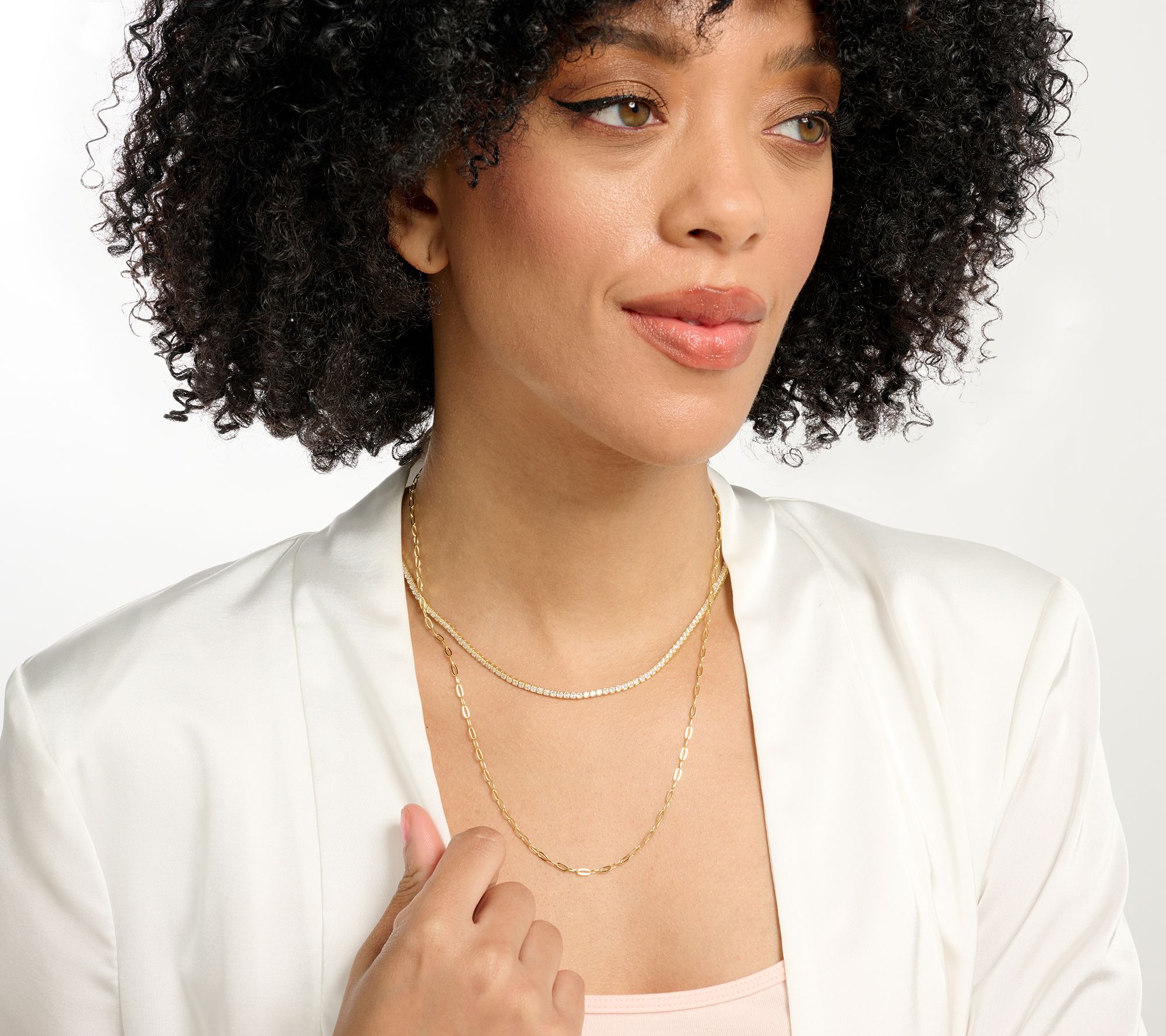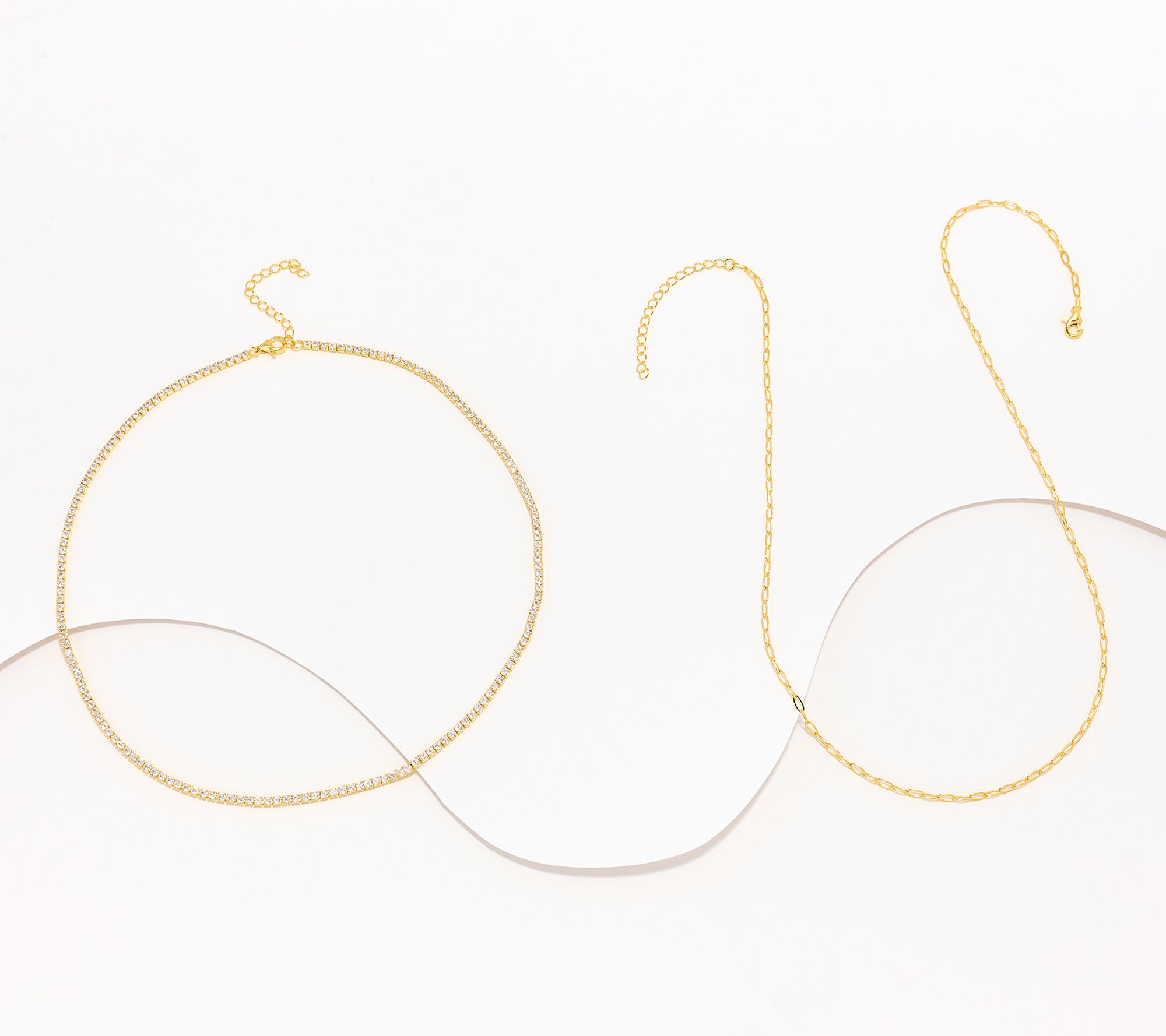 Layered together or styled separately, this tennis necklace and paperclip chain set adds stunning sparkle to any outfit.