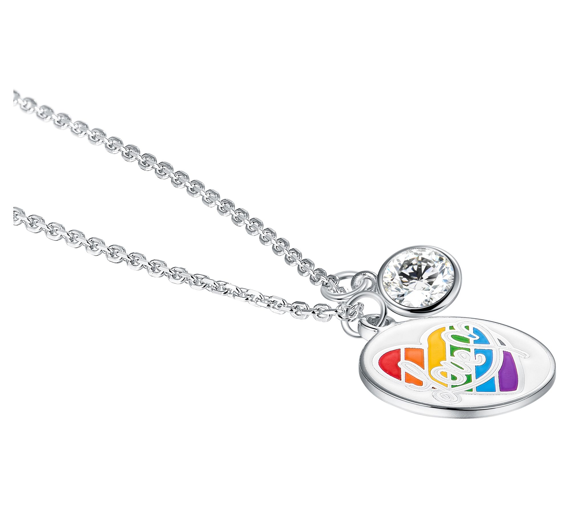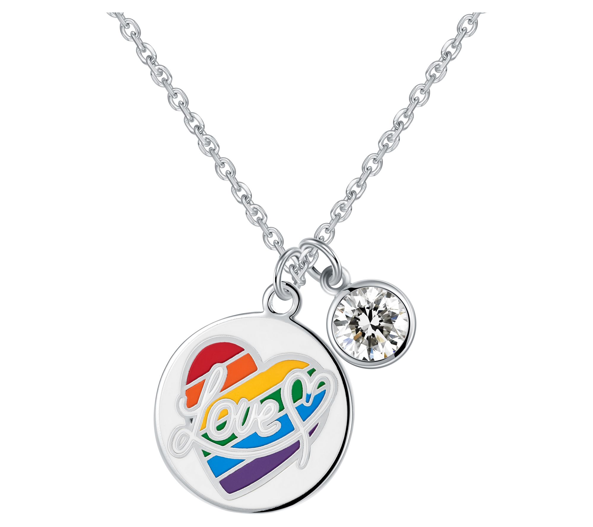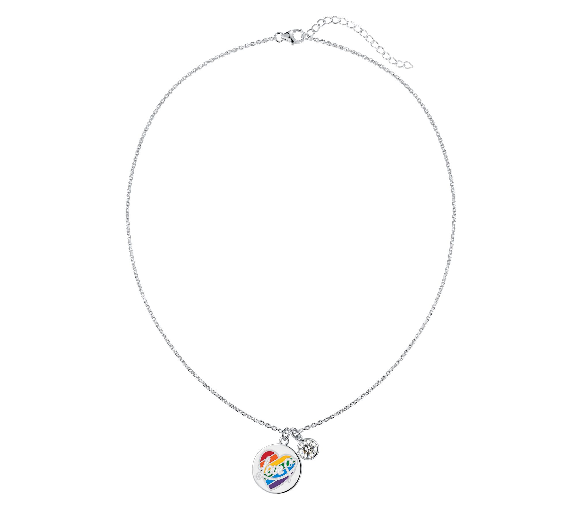• Round enamel Love charm; bezel-set round-cut Diamonique simulated diamond pendants; rolo chain